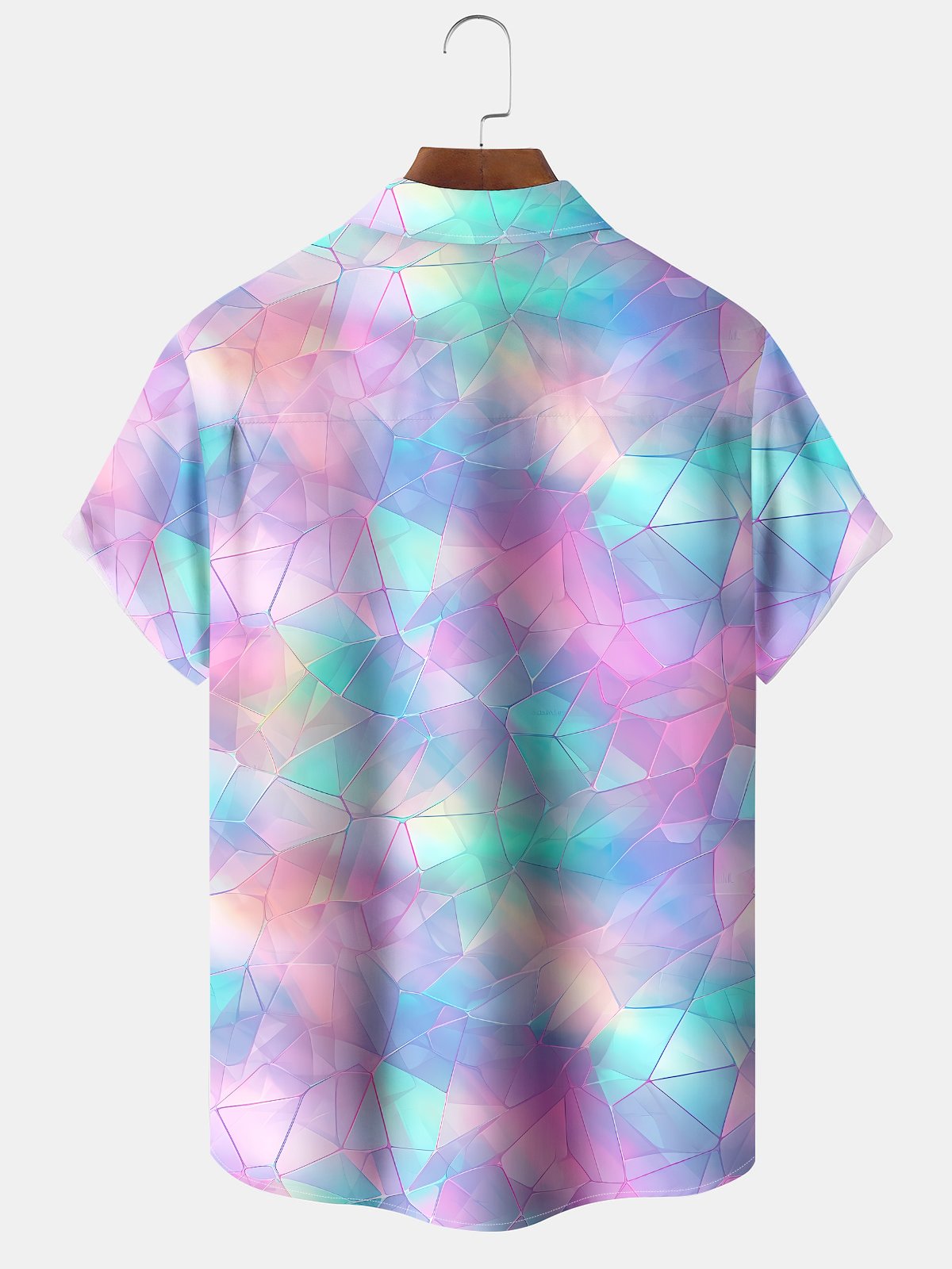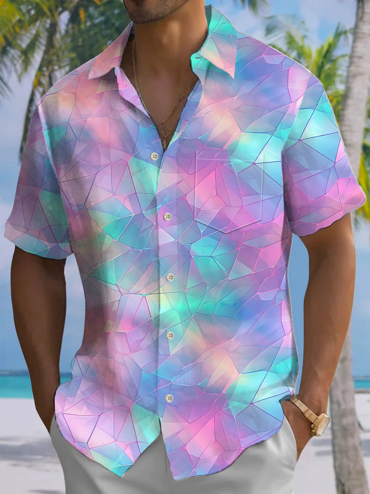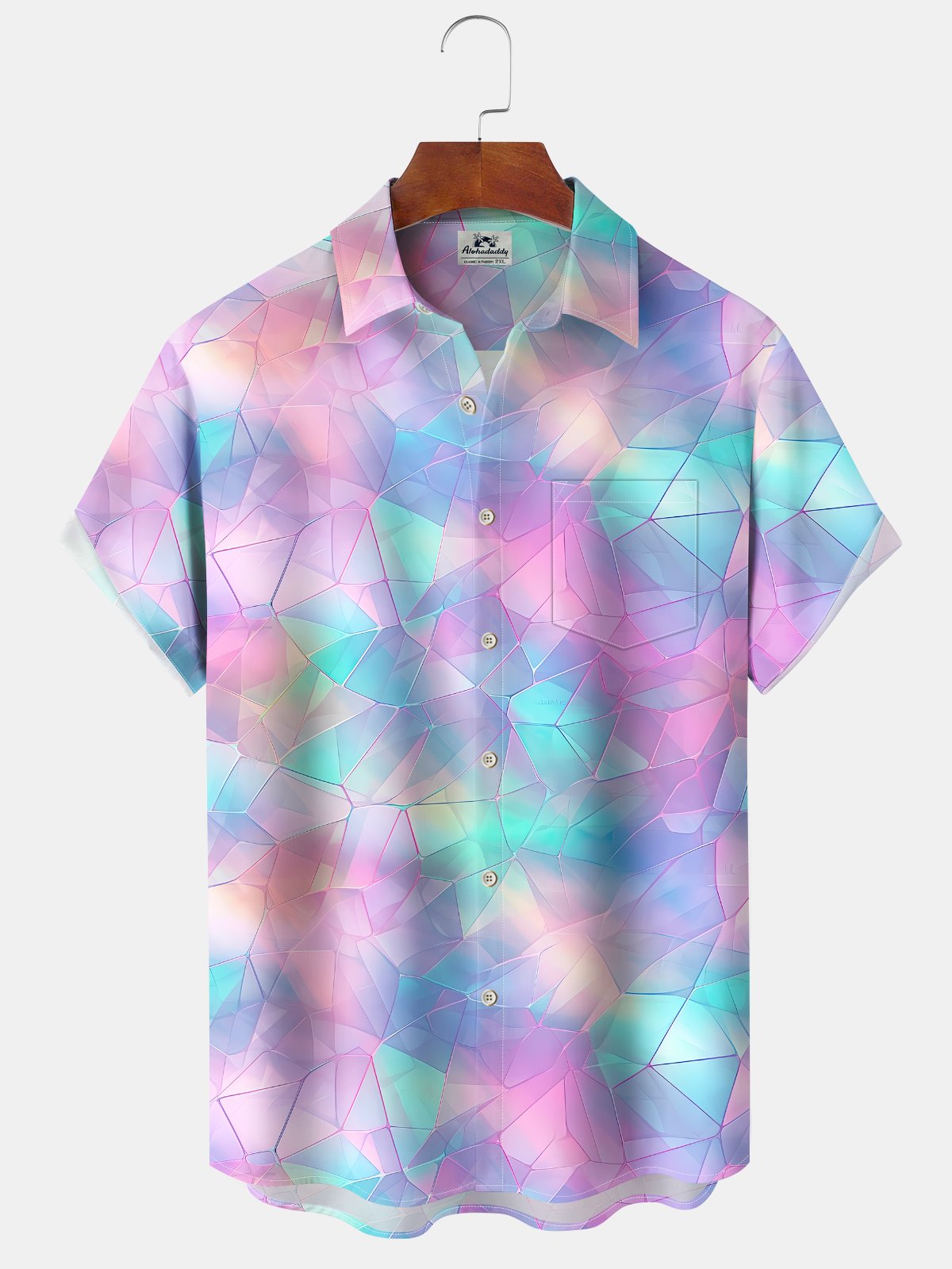 Alohadaddy® Casual Geometric Chest Pocket Stretch Large Size Men's Short Sleeve Shirt