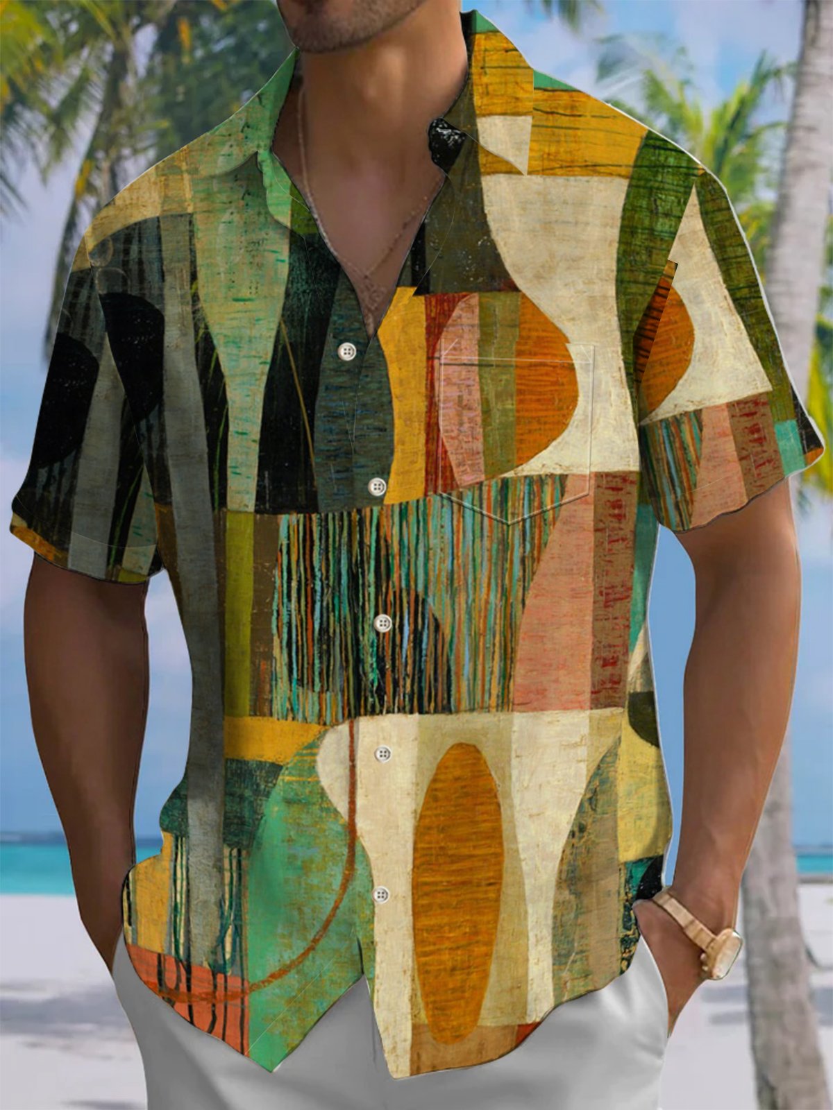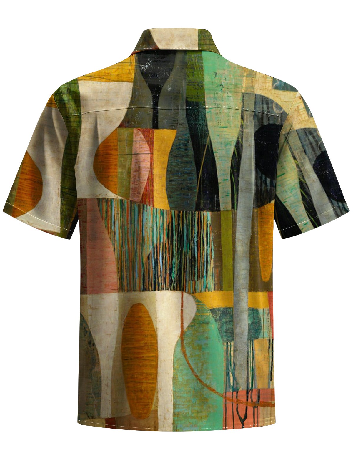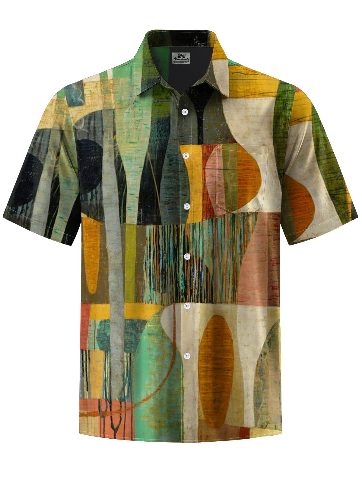 Alohadaddy® Casual Geometric Contrast Art Print Chest Pocket Men's Short Sleeve Shirt Big & Tall