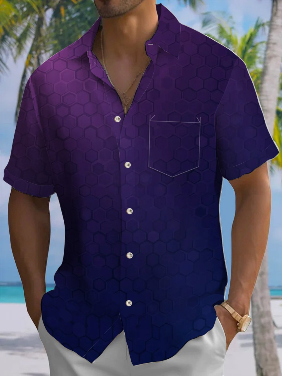 Alohadaddy® Casual Geometric Gradient Art Print Moisture Wicking Men's Short Sleeve Shirt Big & Tall