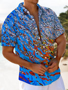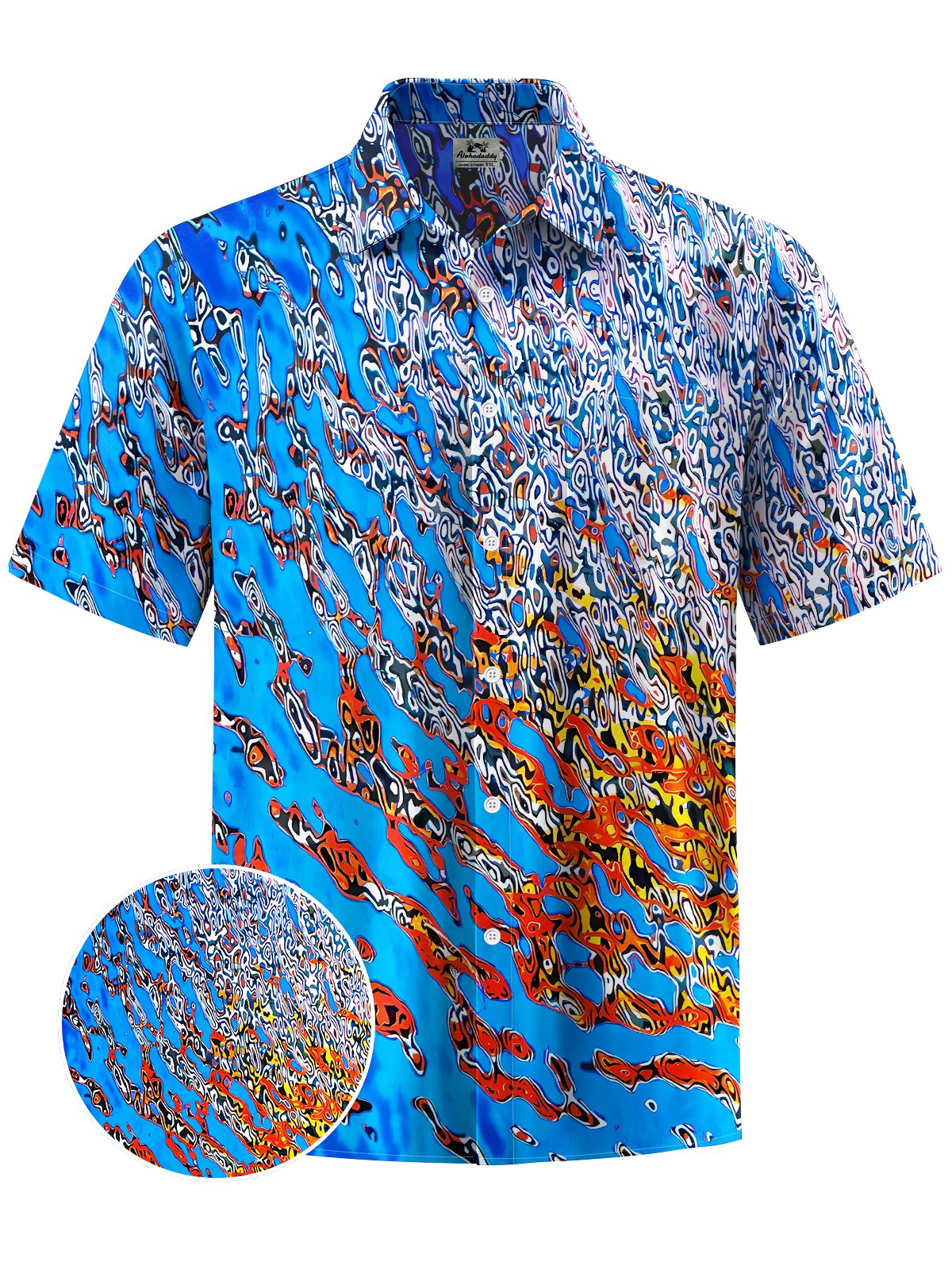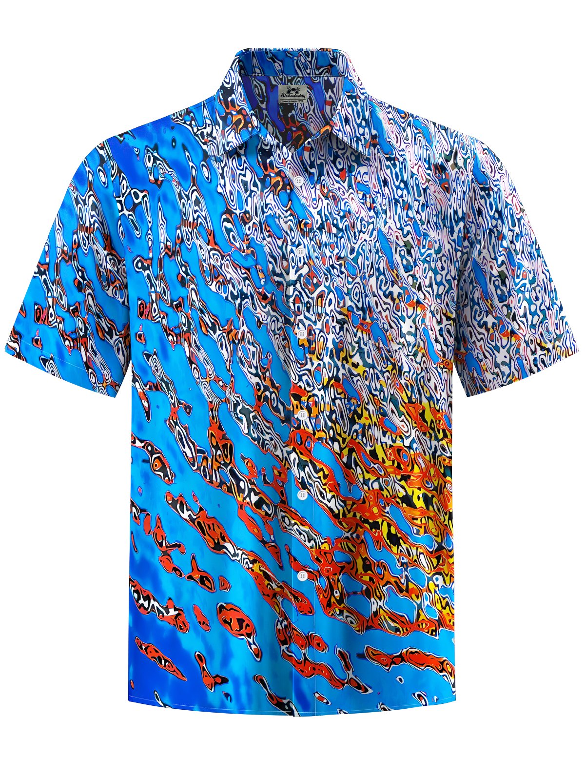 Alohadaddy® Casual Gradient Abstract Art Print Chest Pocket Men's Short Sleeve Shirt Big & Tall