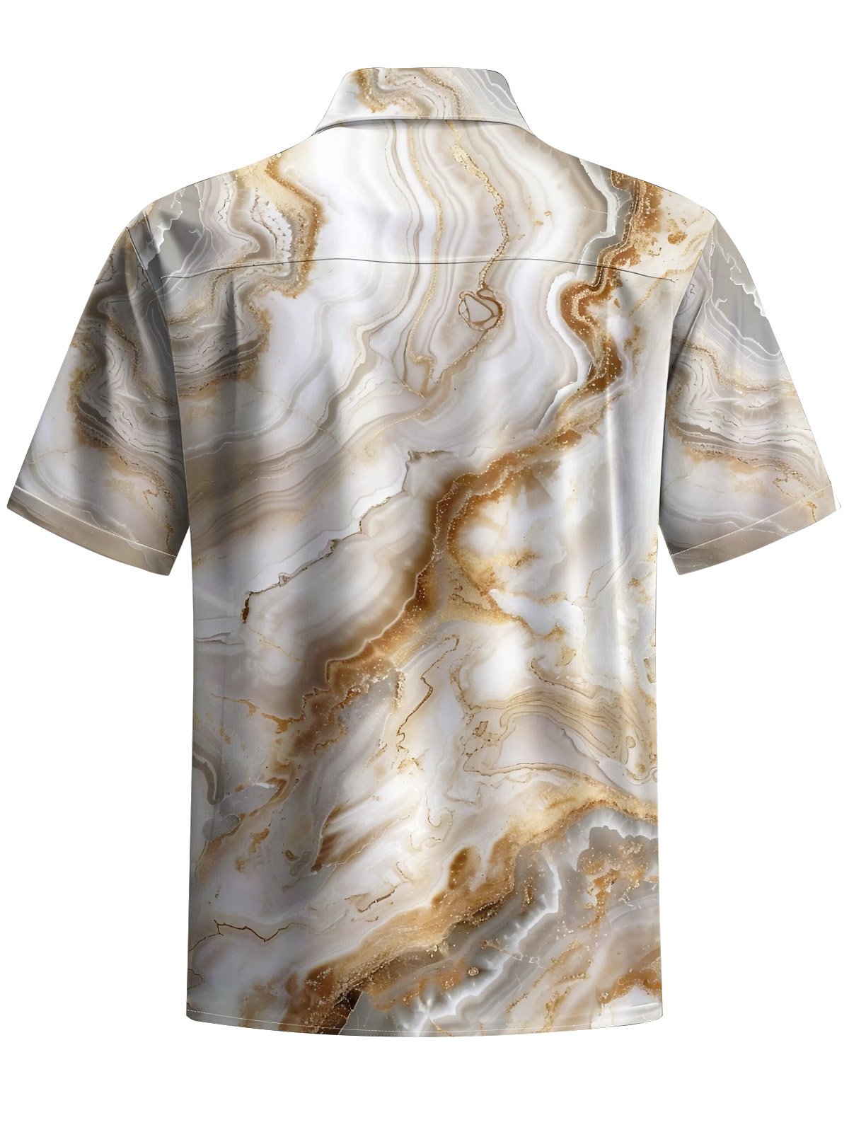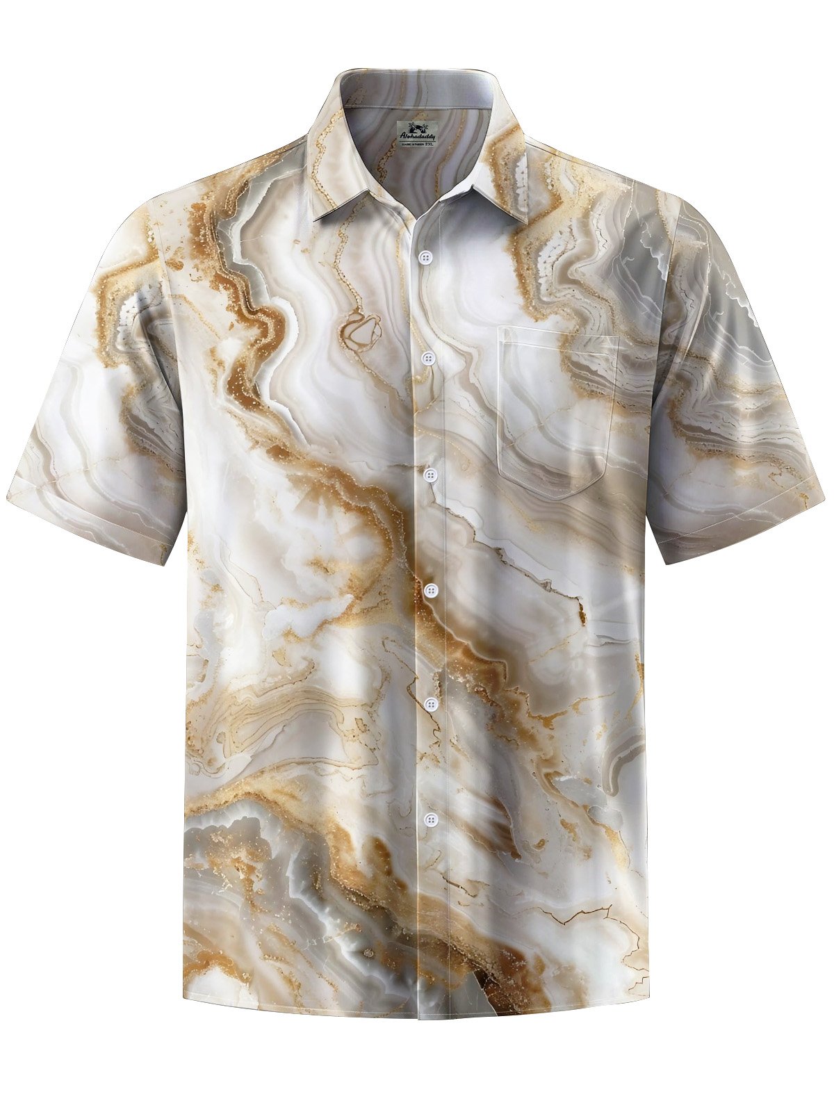Alohadaddy® Casual Marble Art Print Chest Pocket Mens Short Sleeve Shirt Big & Tall