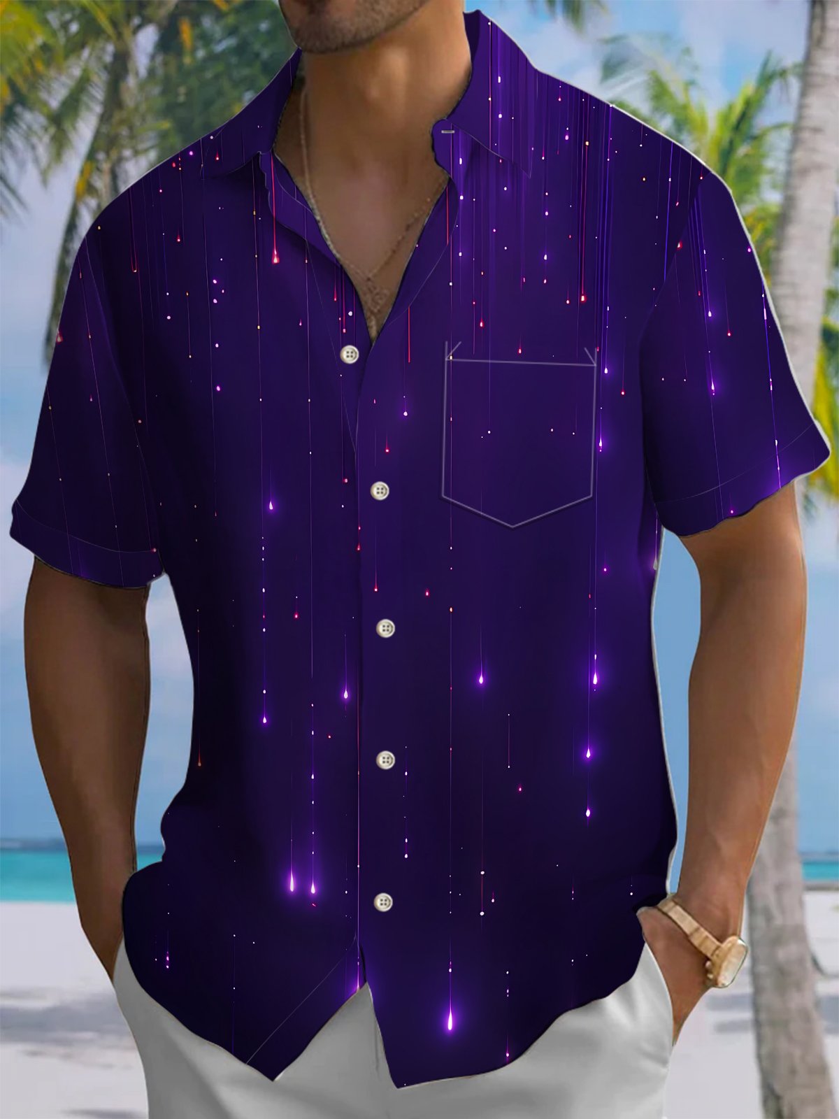 Alohadaddy® Casual Starry Pockets Moisture Wicking Large Size Stretch Men's Short Sleeve Shirt