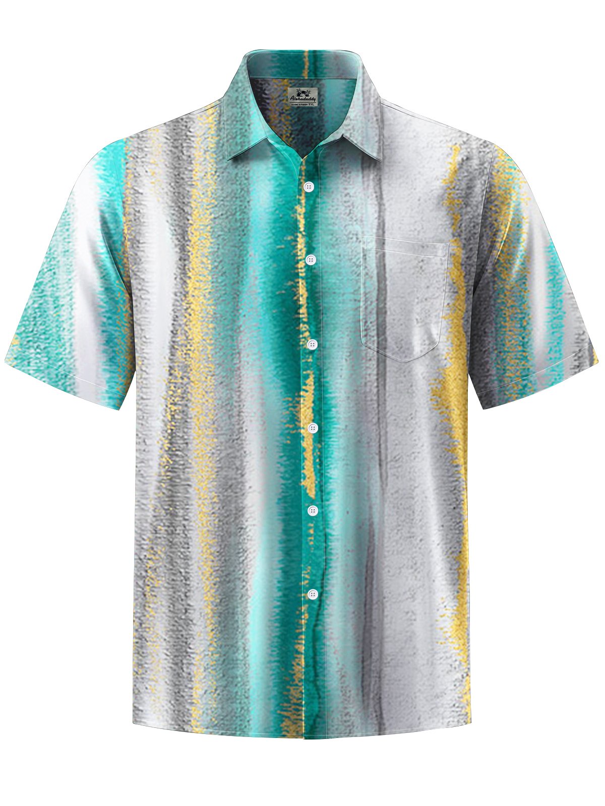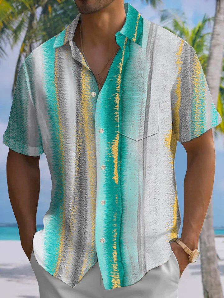 Alohadaddy® Casual Stripe Art Print Chest Pocket Stretch Men's Short Sleeve Shirt Big & Tall