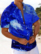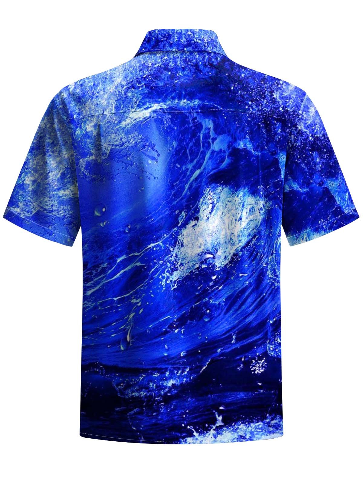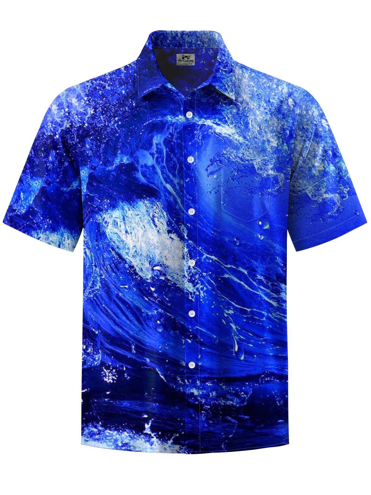 Alohadaddy® Casual Wave Art Print Chest Pocket Stretch Men's Short Sleeve Shirt Big & Tall