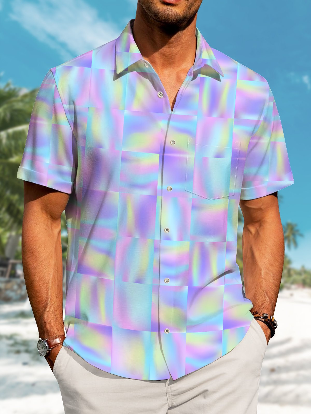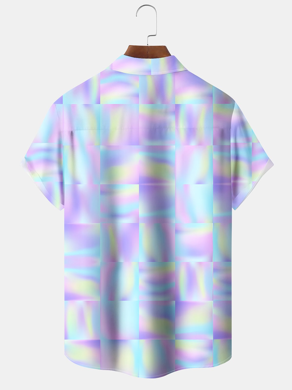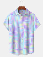 Alohadaddy Hawaiian Geometric Squares Print Art Buttons Cardigan Pockets Stretch Large Size Short Sleeve Shirt
