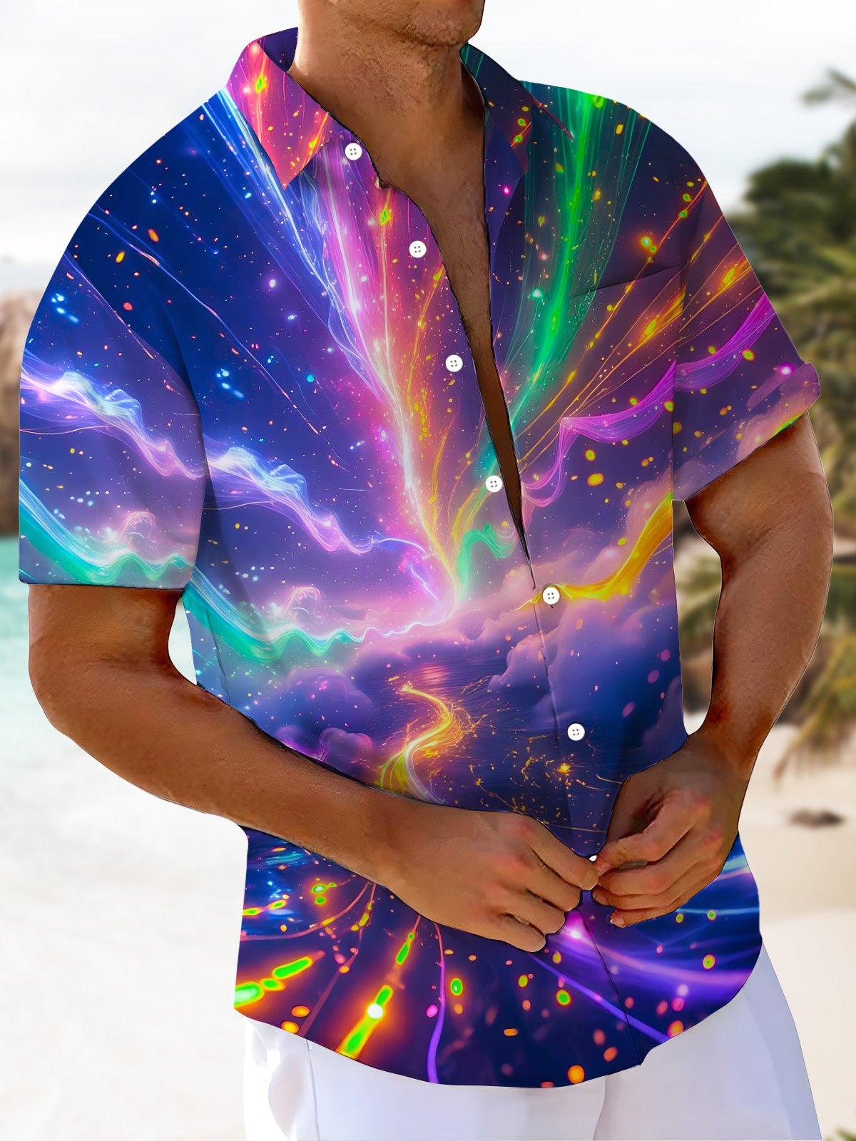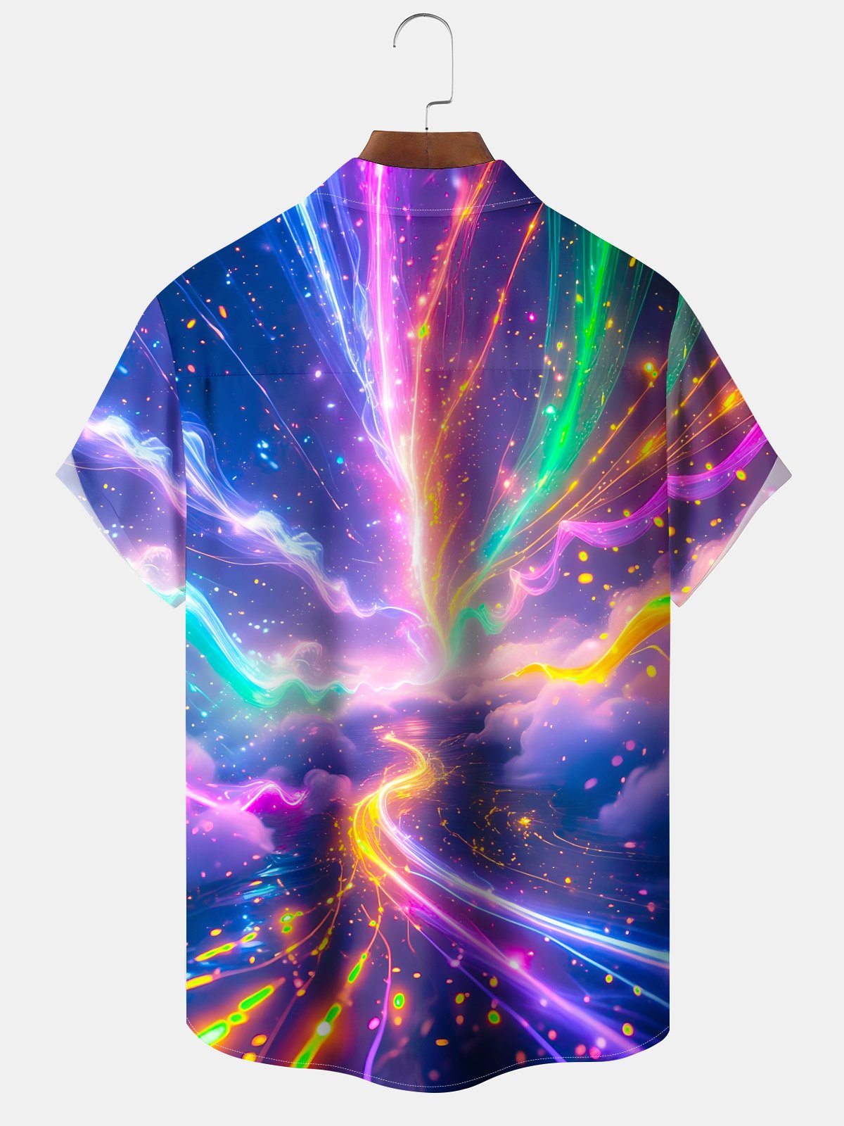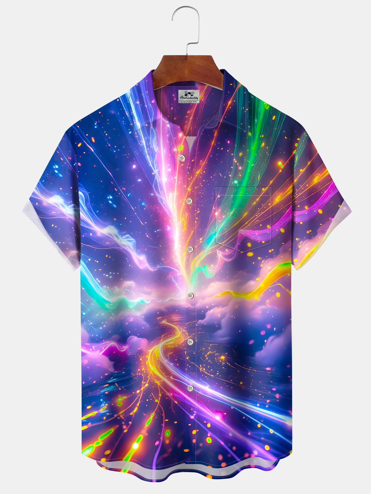 Alohadaddy Moisture Wicking Starry Sky Art Print Stretch Oversized Chest Pocket Short Sleeve Shirt