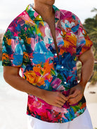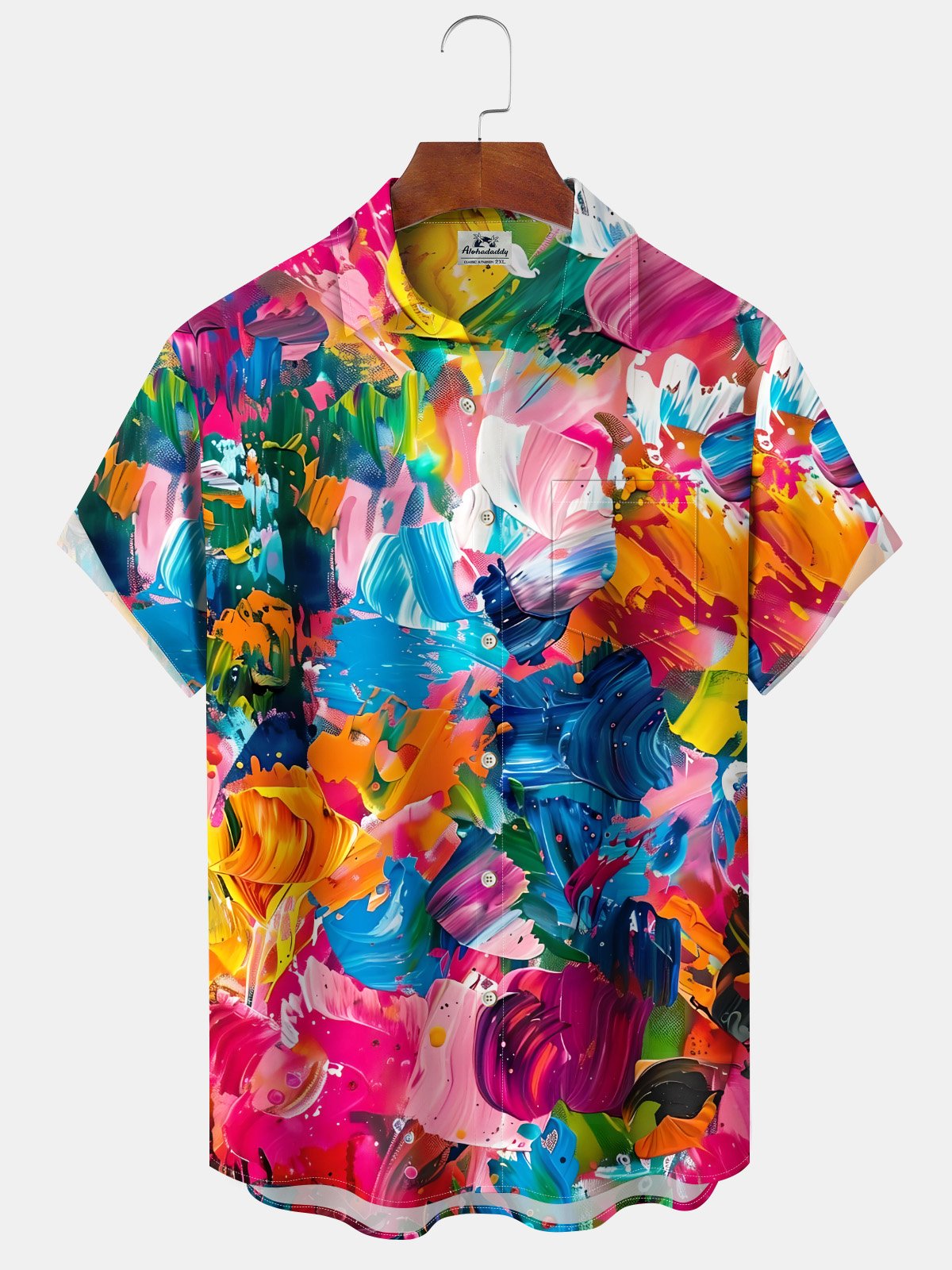 Alohadaddy Oil Painting Abstract Art Print Art Moisture Wicking Chest Pocket Hawaiian Short Sleeve Shirt