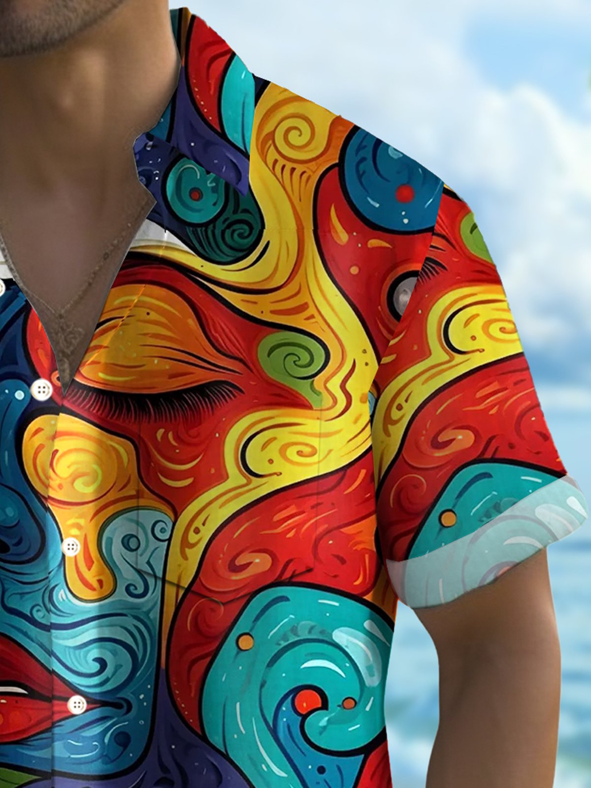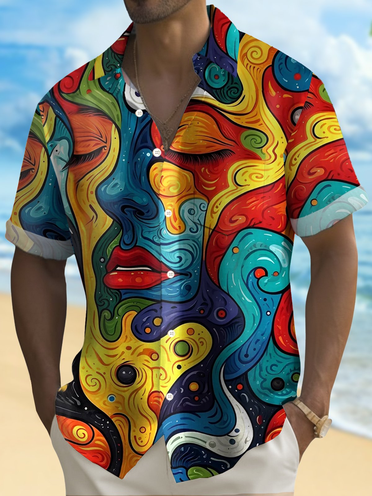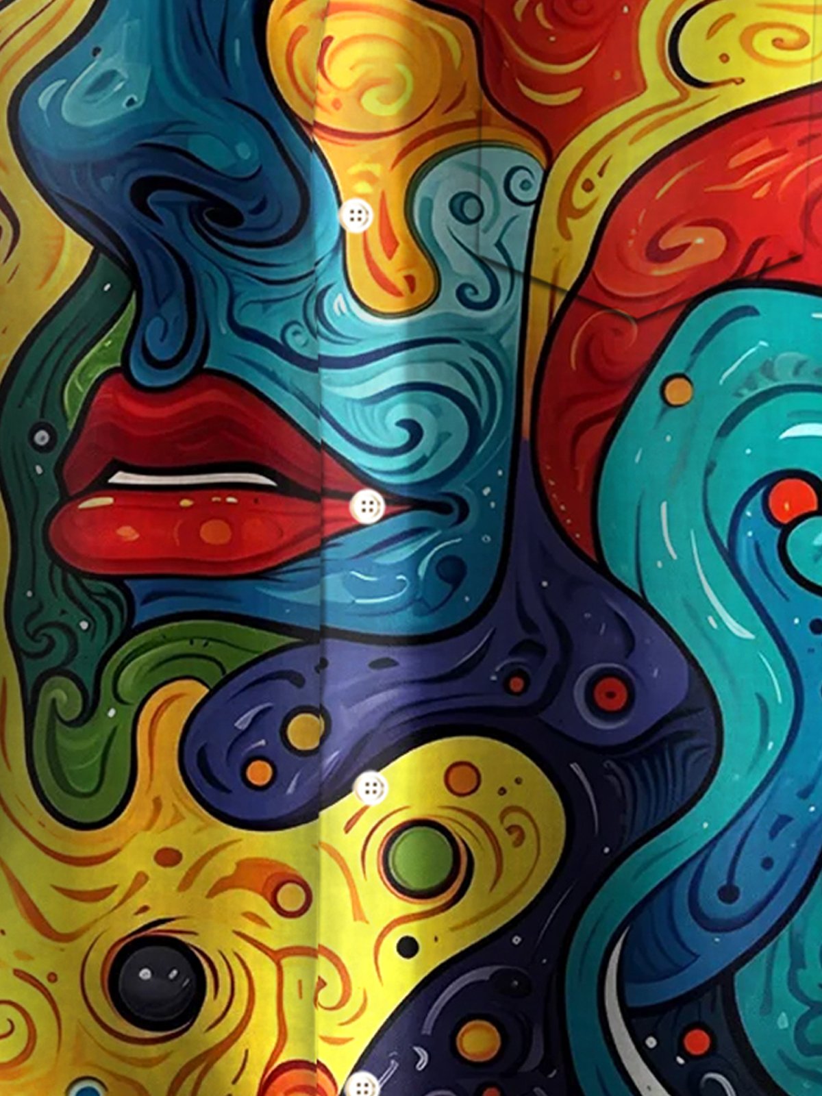 Alohadaddy Retro Face Abstract Art 3D Digital Print Men's Button Pocket Short Sleeve Shirt Big & Tall