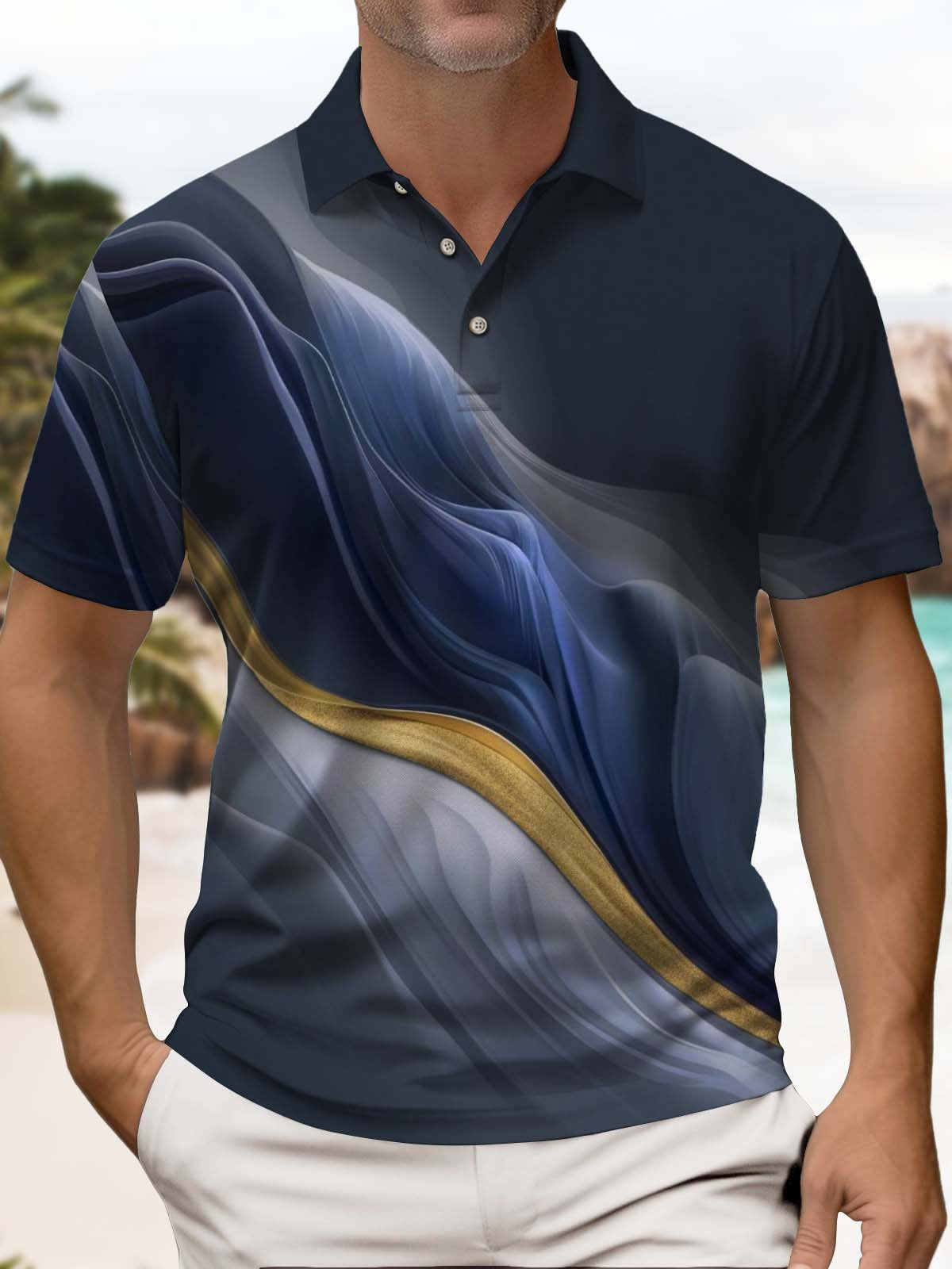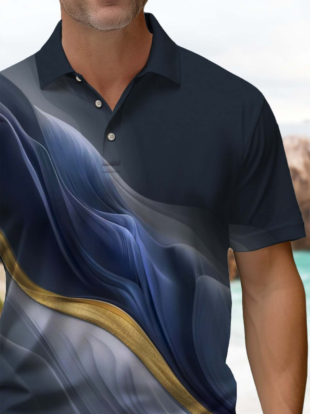 Alohadaddy® Casual Abstract Texture Print Art Pocket Stretch Men's Short Sleeve Polo Big & Tall