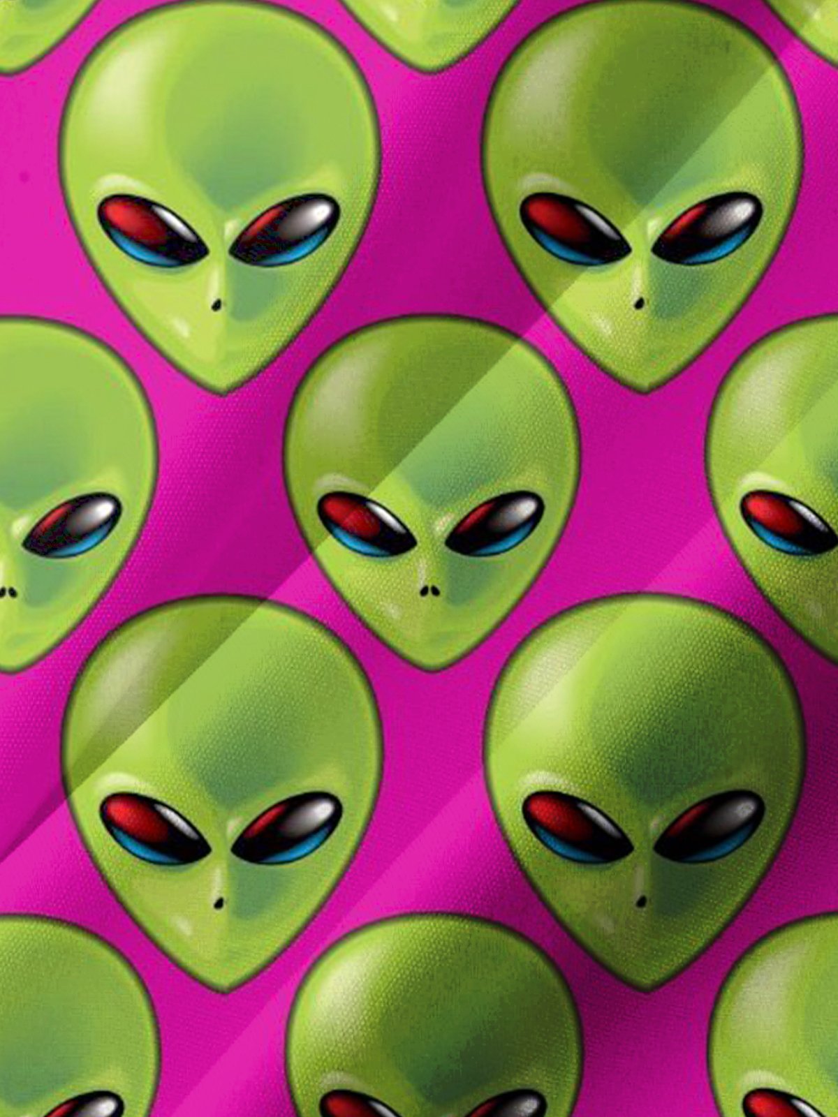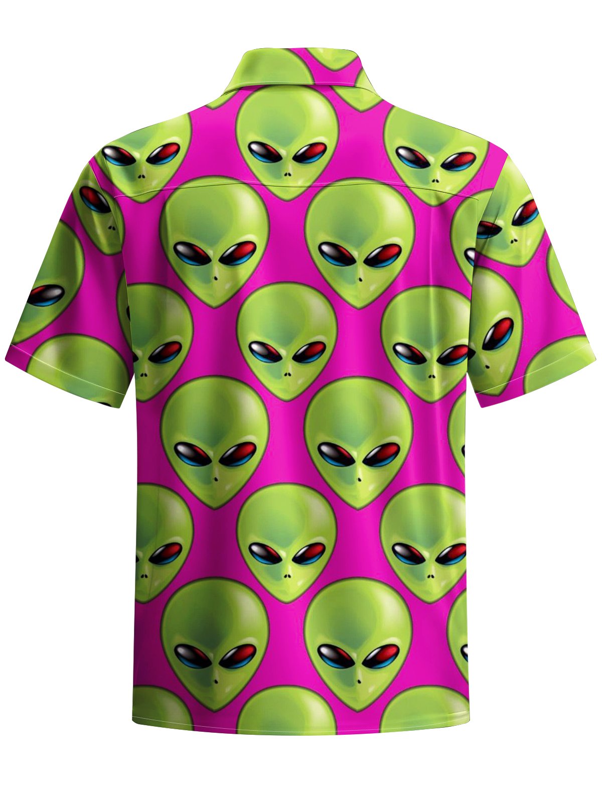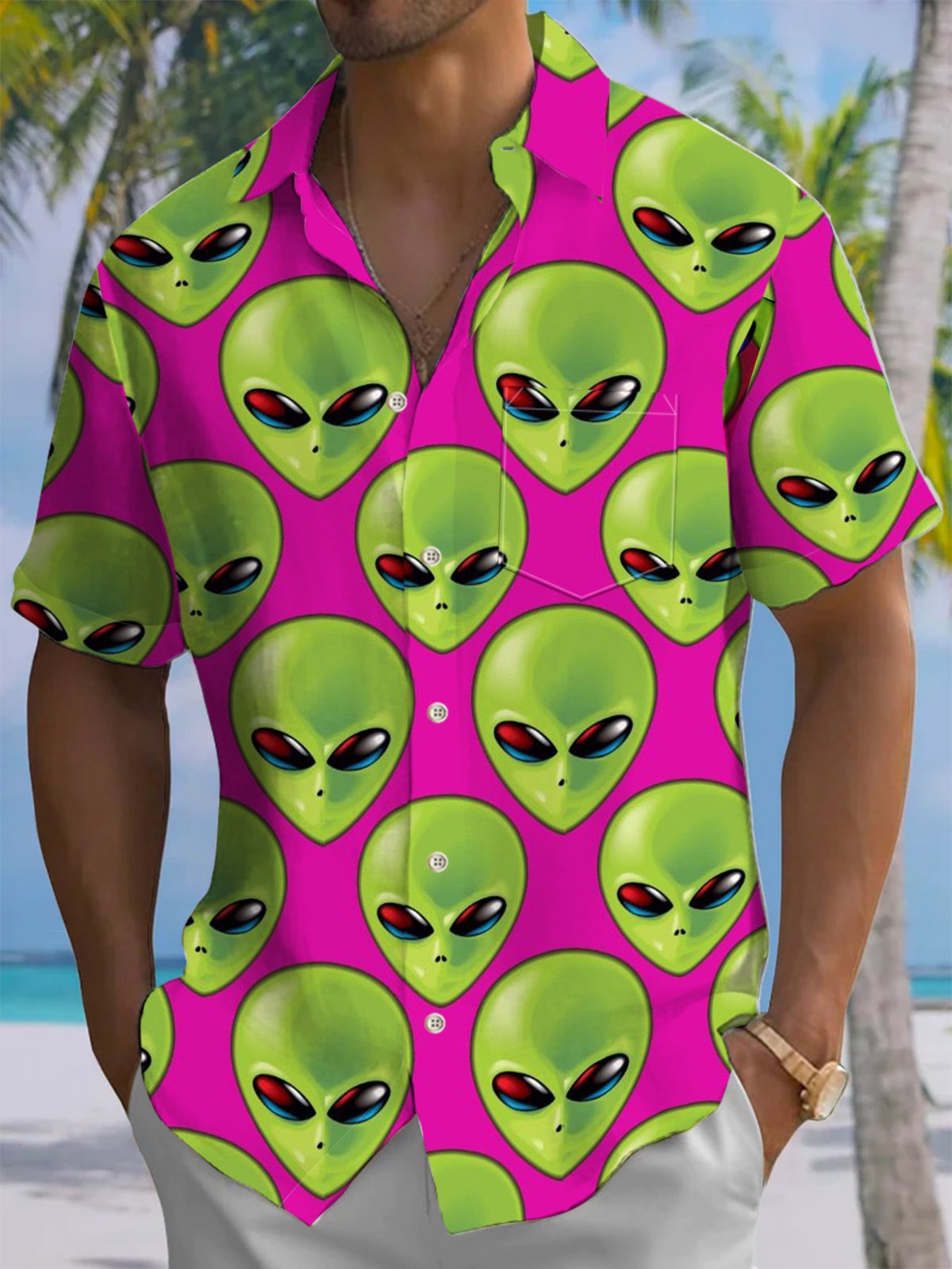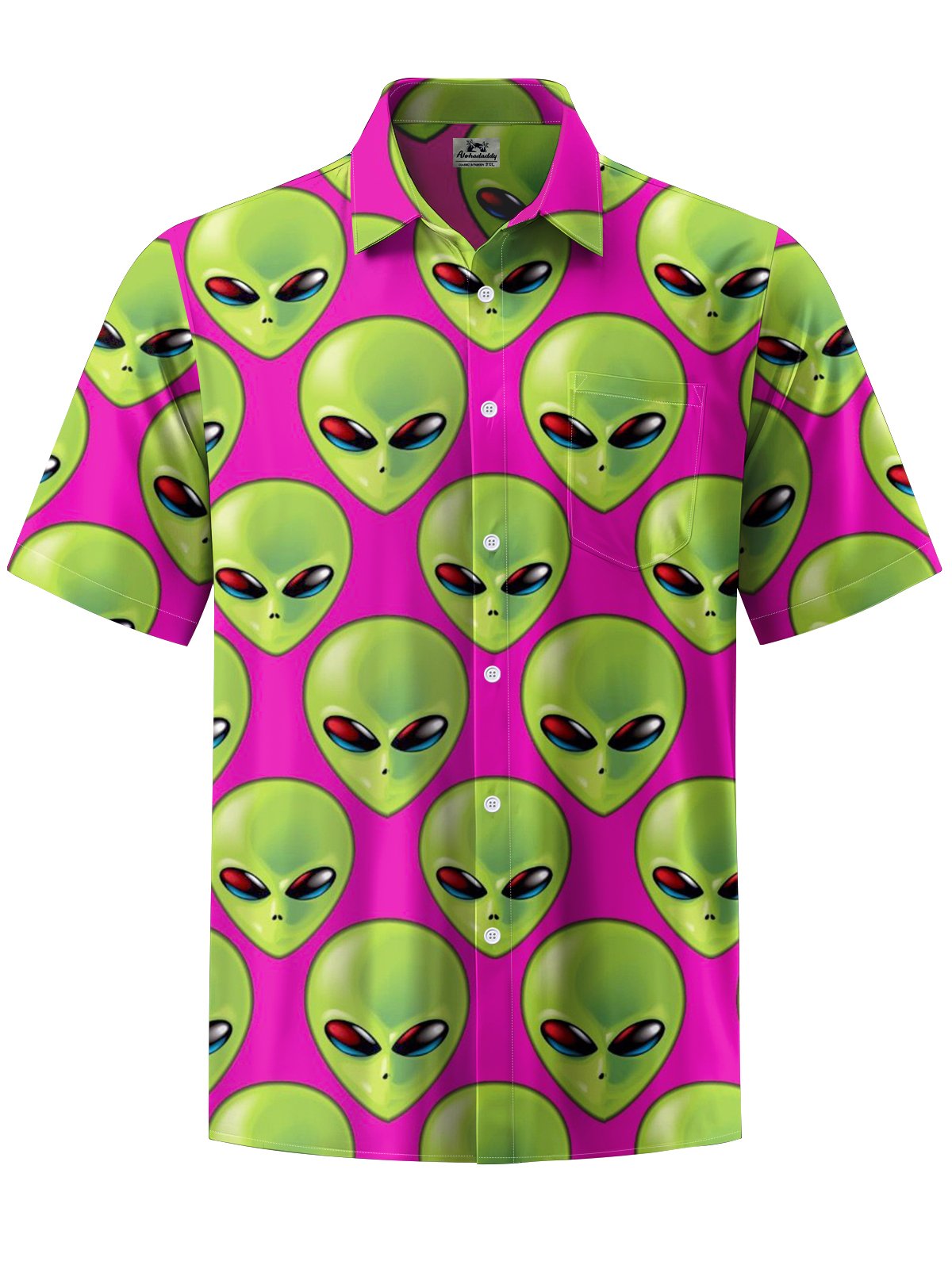 Alohadaddy® Casual Alien Contrast Art Print Chest Pocket Men's Short Sleeve Shirt Big & Tall