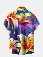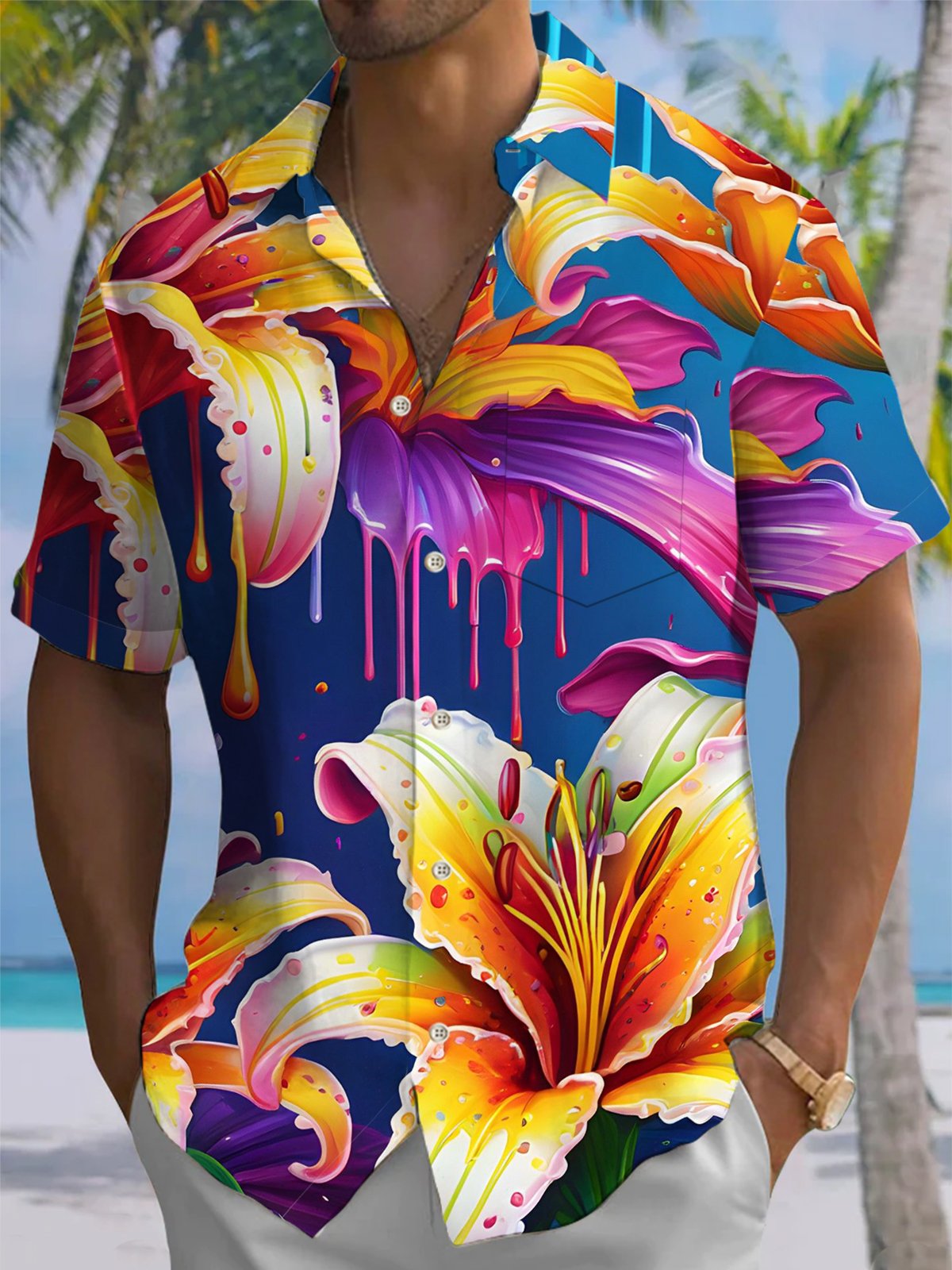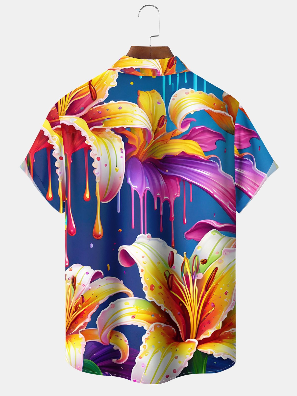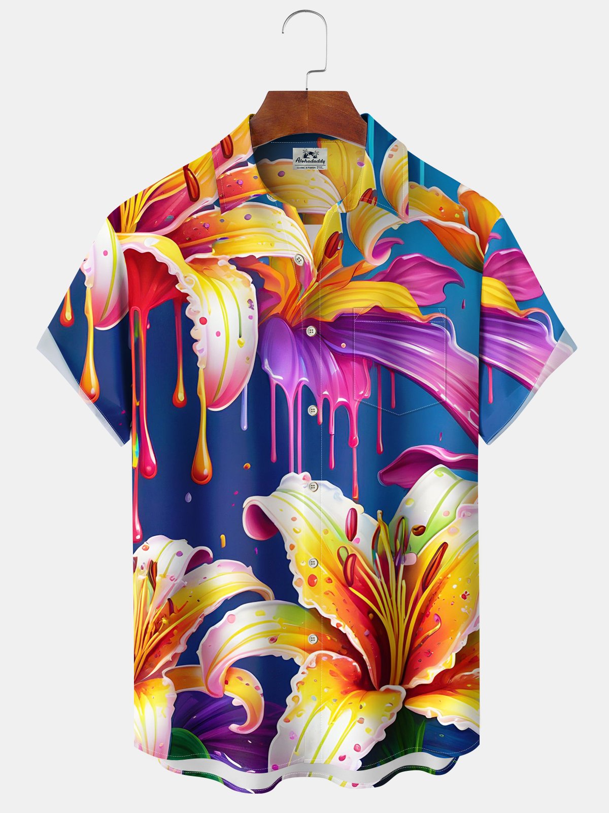 Alohadaddy® Casual Floral Acrylic Print Pockets Button Closure Stretch Men's Short Sleeve Shirt Big & Tall