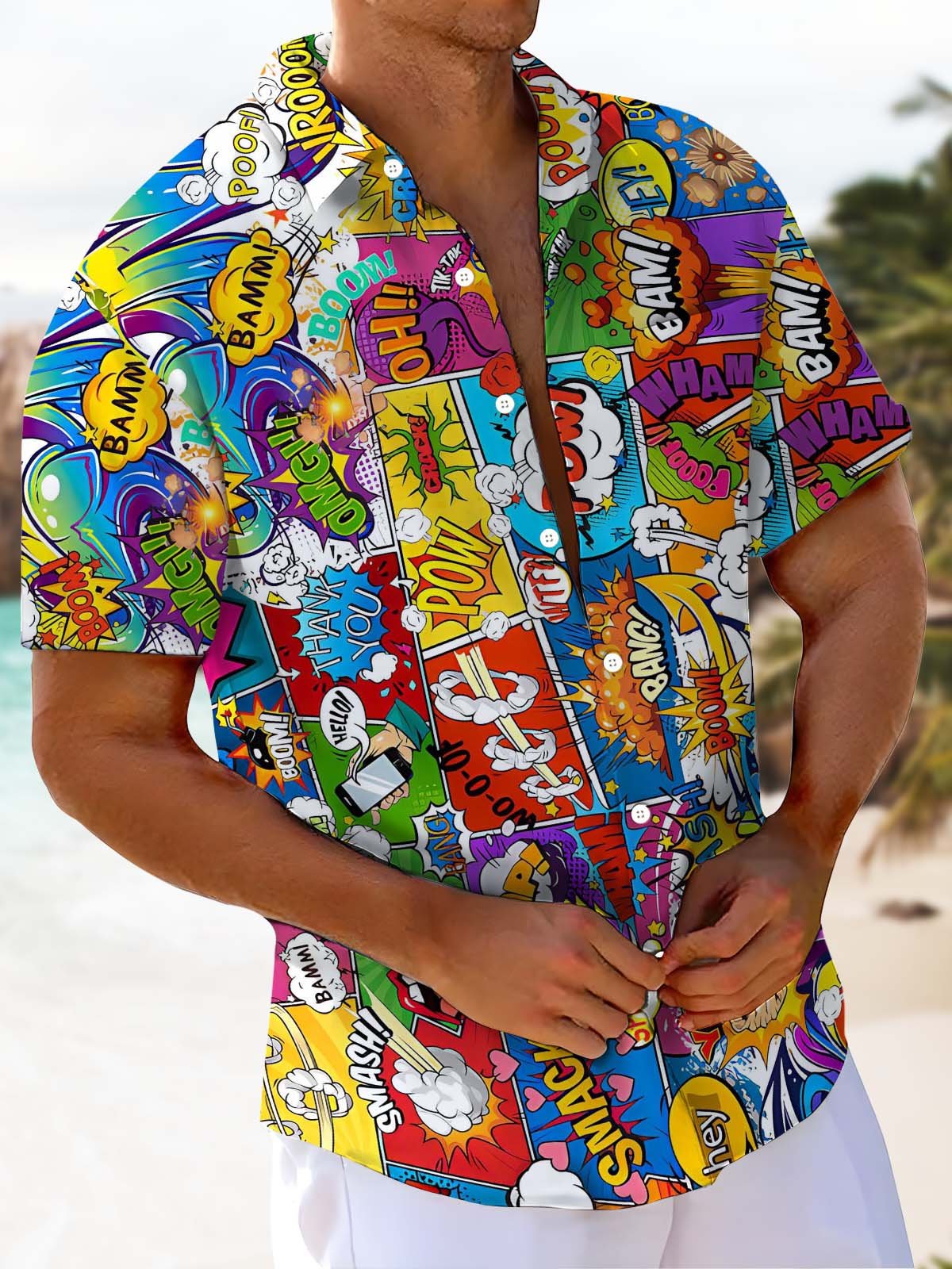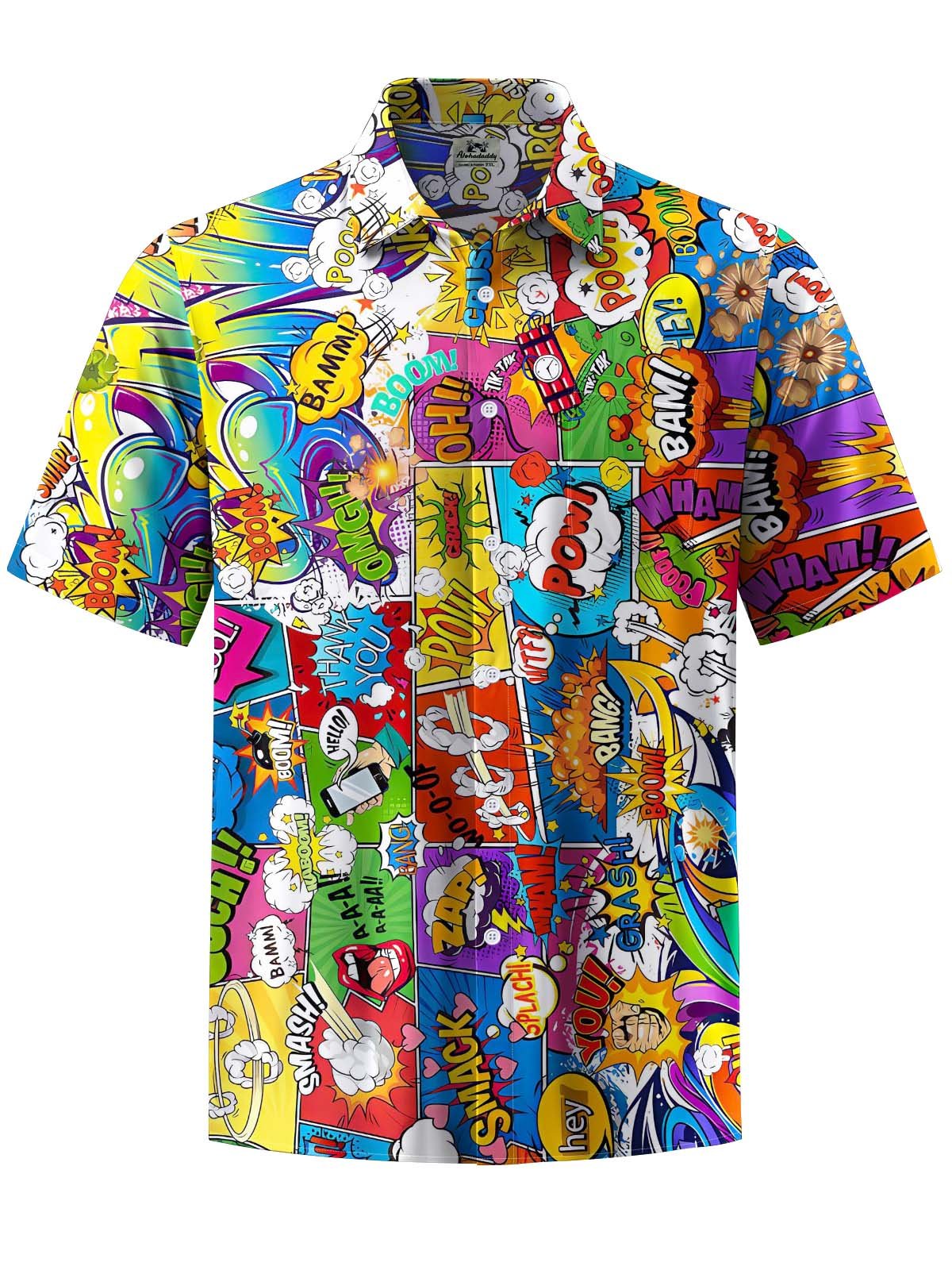 Alohadaddy® Casual Geometric Graffiti Print Art Pocket Elastic Men's Short Sleeve Shirt Big & Tall
