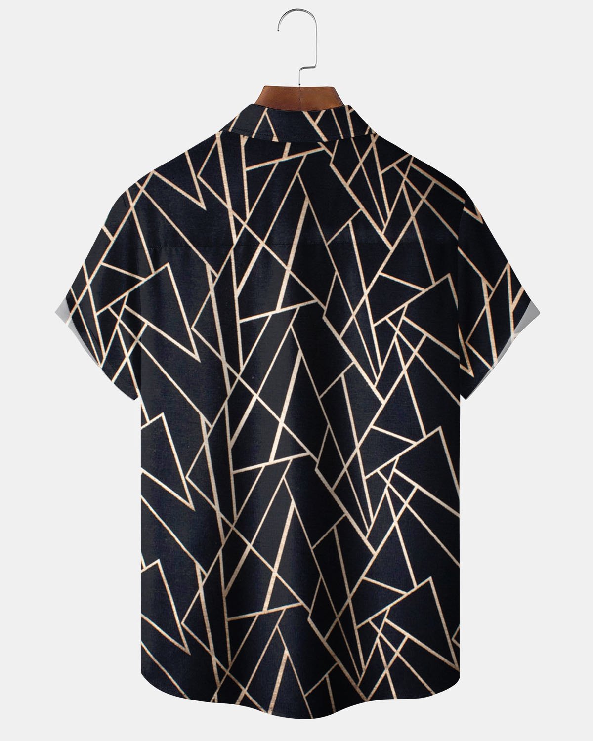 Alohadaddy® Casual Geometric Print Art Button Stretch Pocket Men's Short-Sleeve Shirt Big & Tall