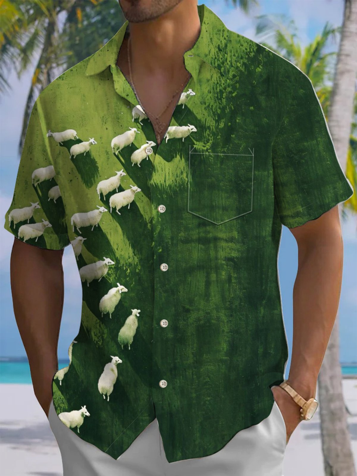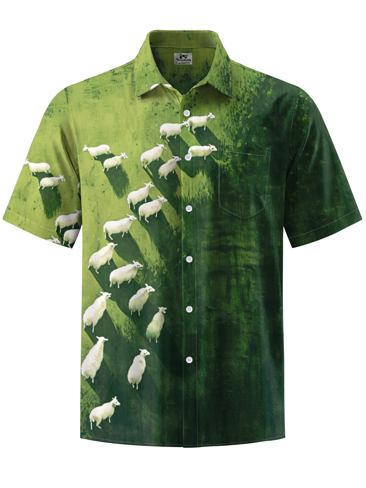 Alohadaddy® Casual Grass Sheep Art Print Chest Pocket Men's Short Sleeve Shirt Big & Tall