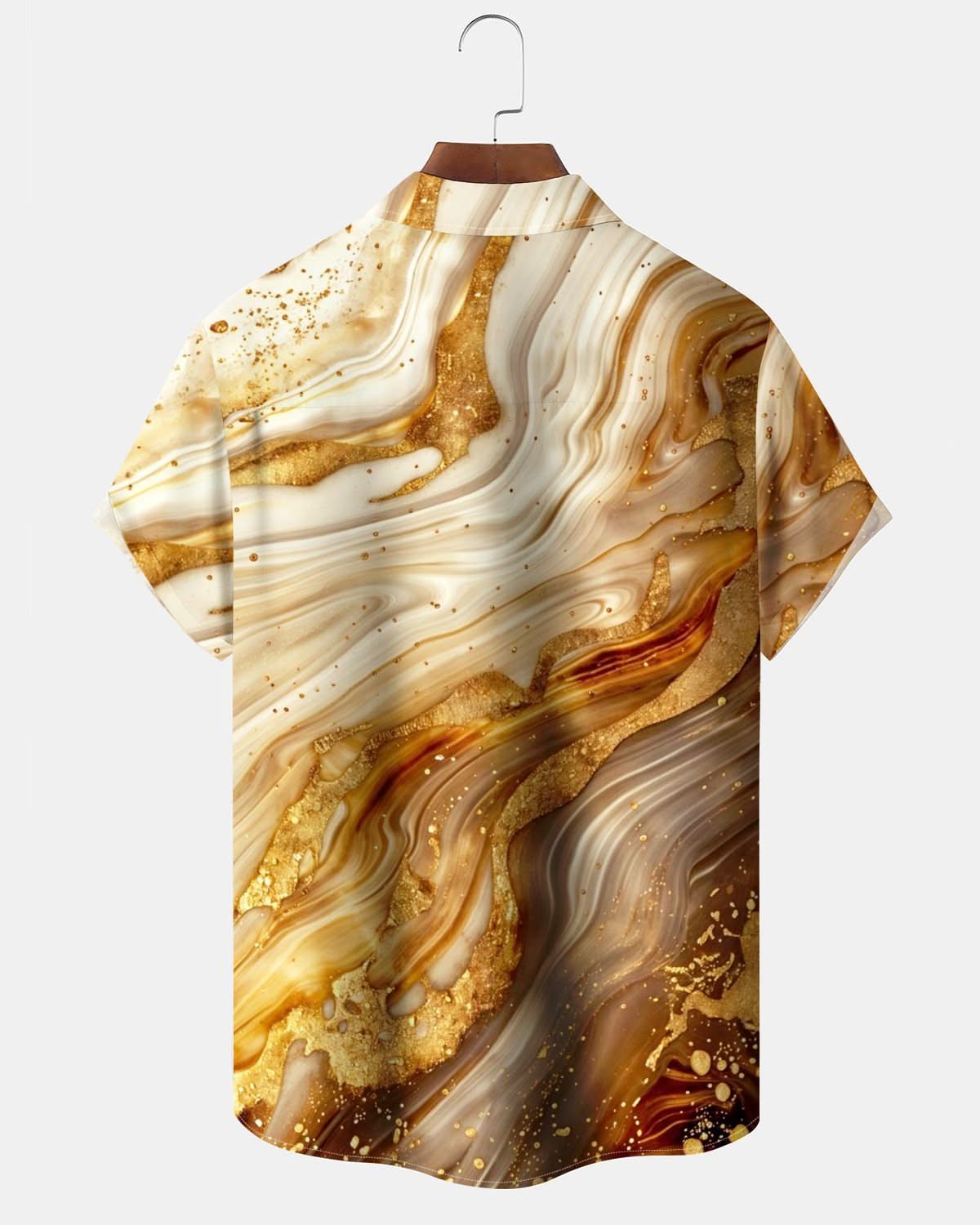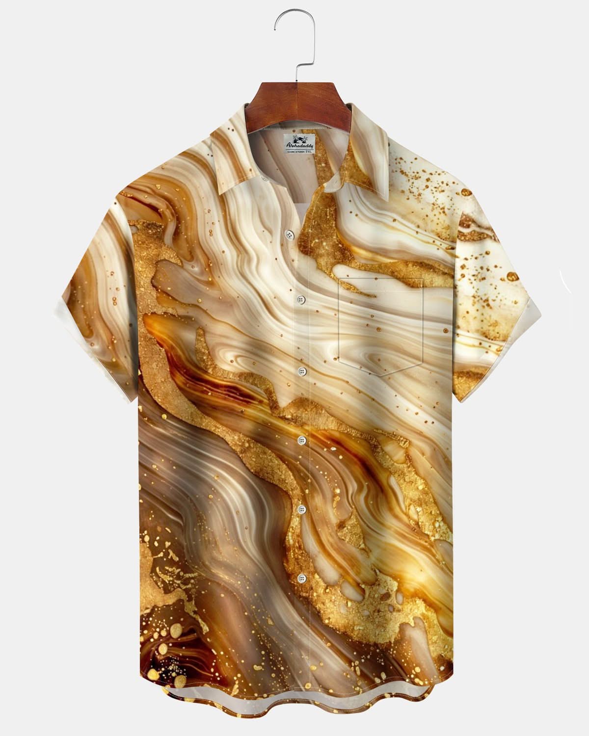 Alohadaddy® Casual Marble Print Pocket Stretch Men's Short Sleeve Shirt Big & Tall