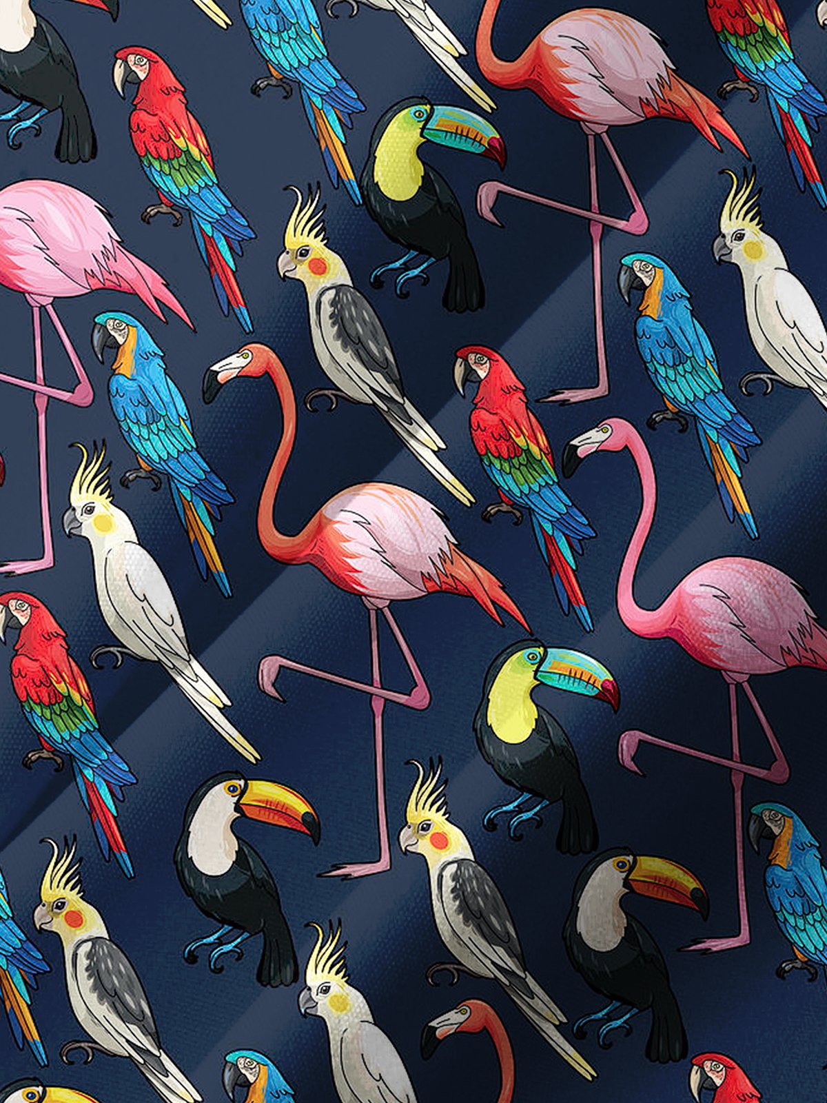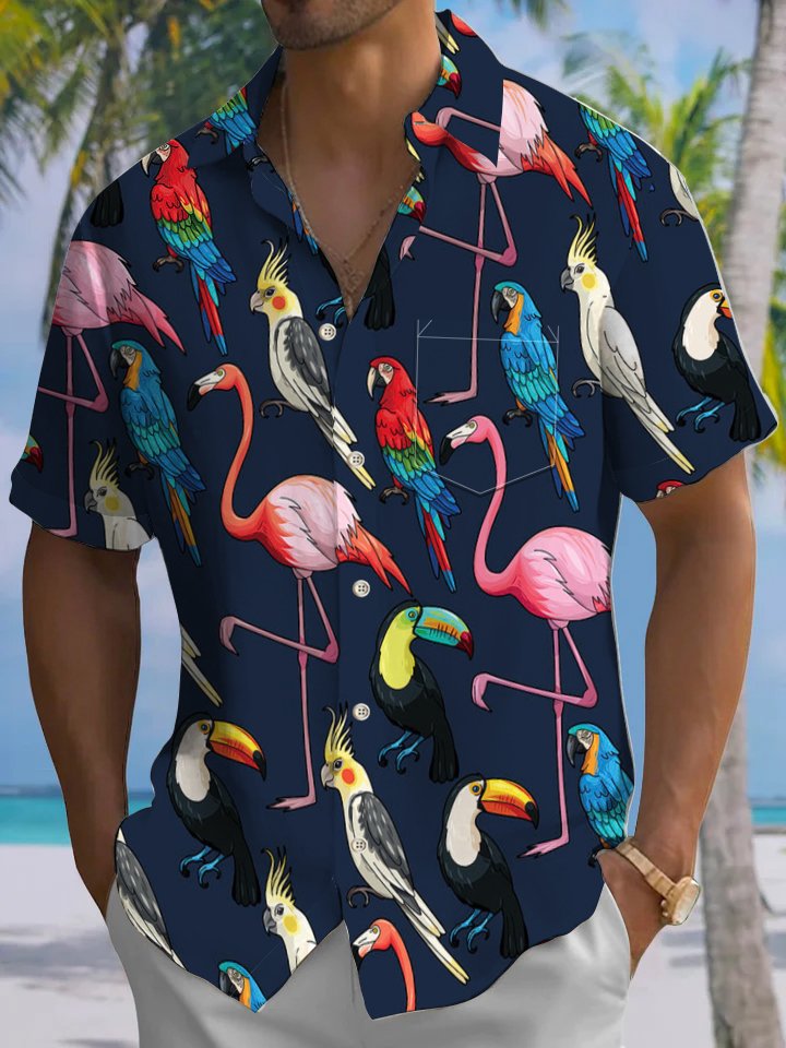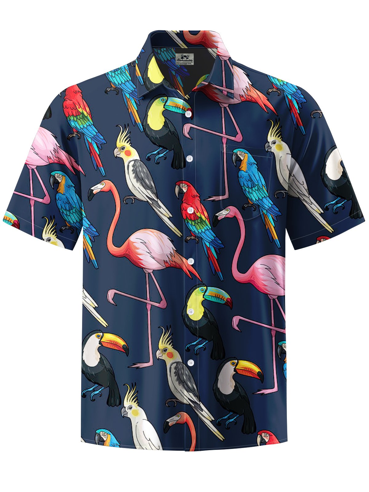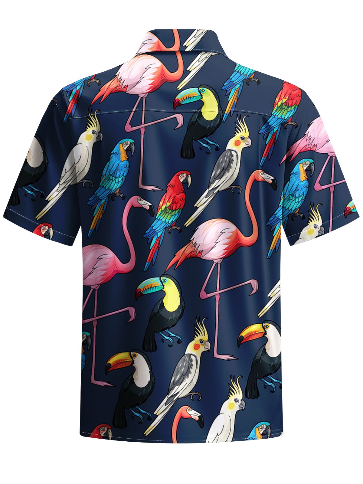 Alohadaddy® Casual Parrot Flamingo Art Print Chest Pocket Men's Short Sleeve Shirt Big & Tall