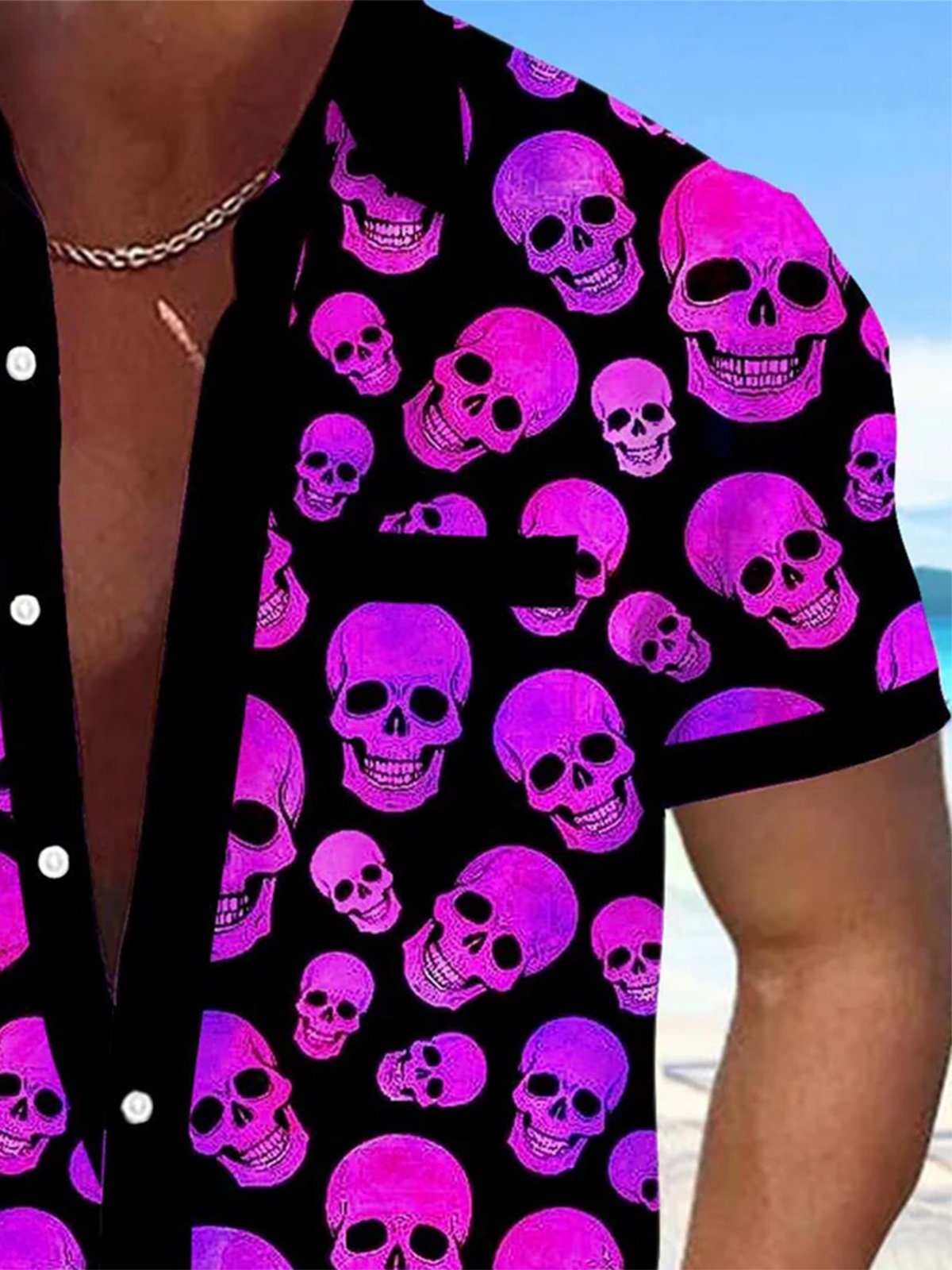 Alohadaddy® Casual Skull Art Print Mens Short Sleeve Shirt Big & Tall
