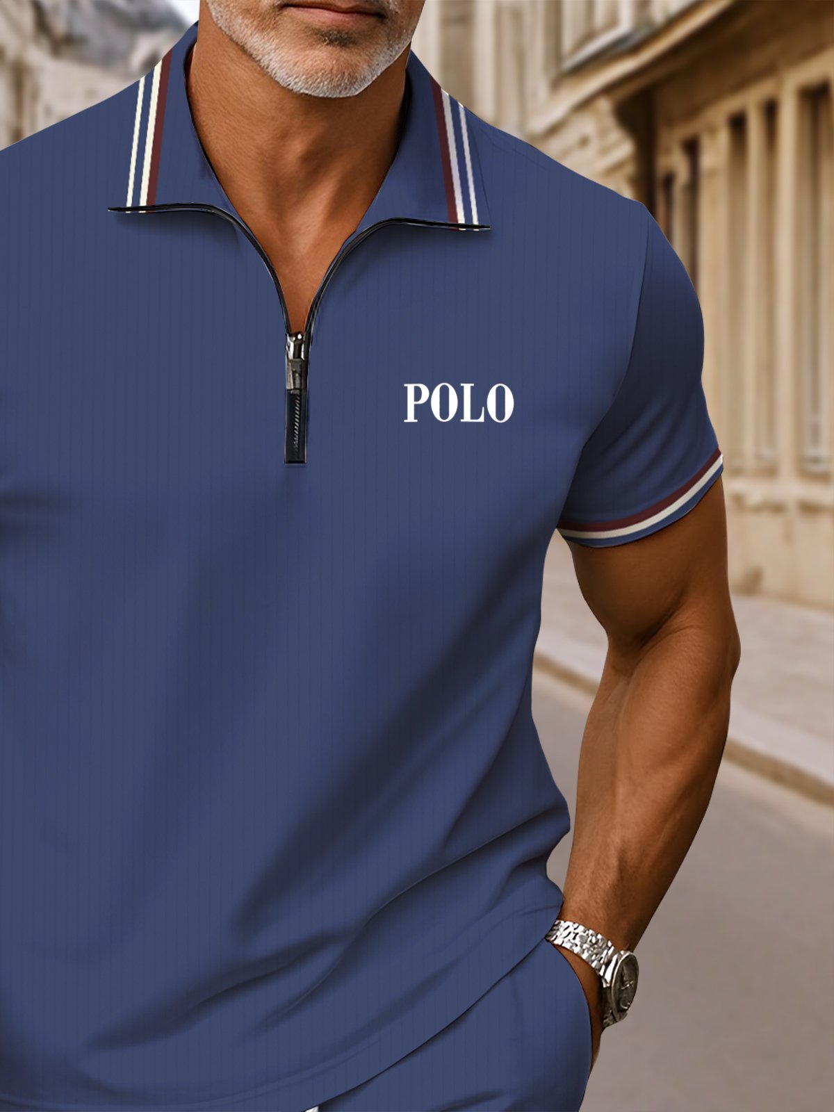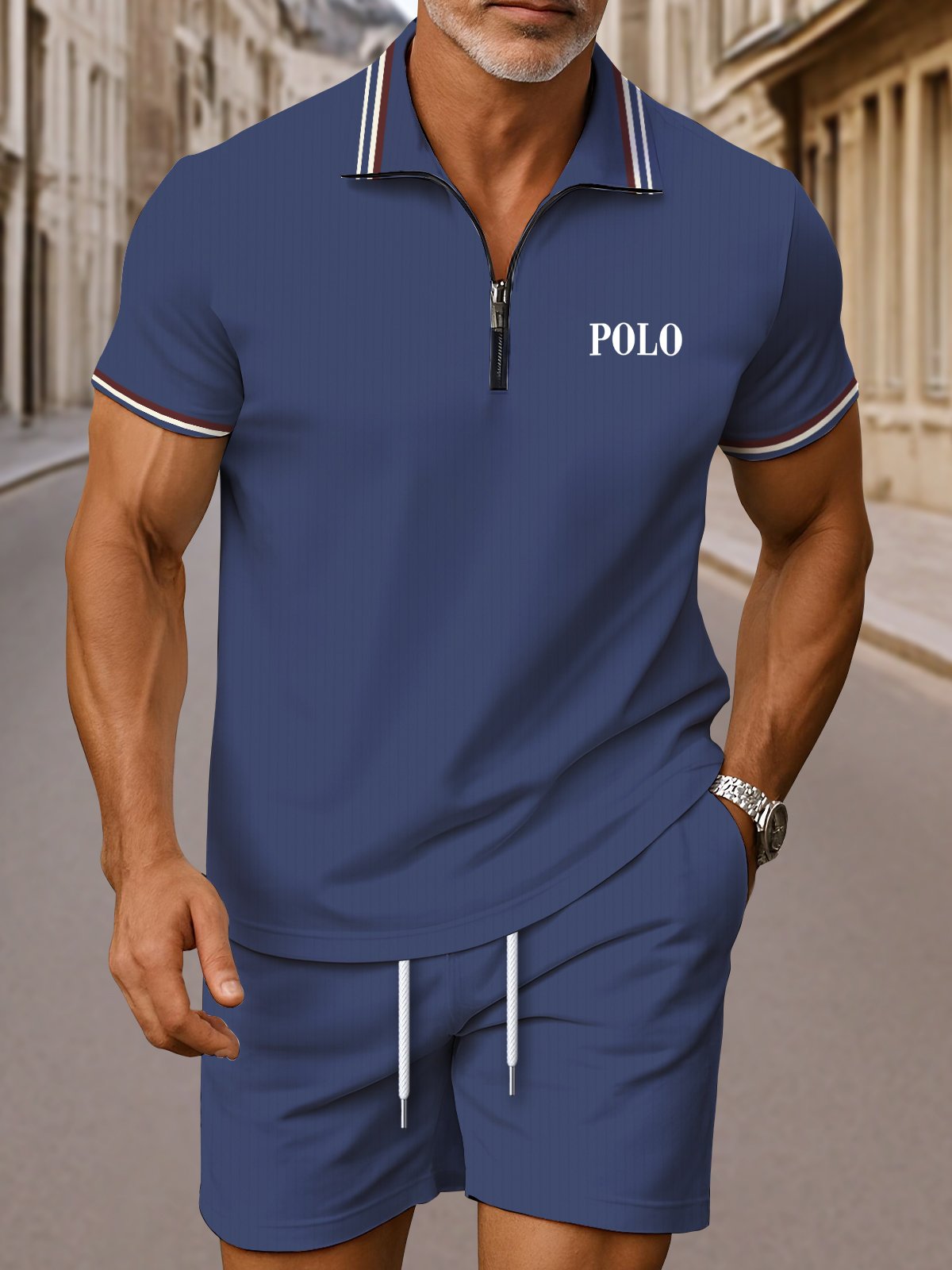 Alohadaddy® Casual Sports Lettering Print Men's Shorts Short Sleeves Polo Shirt Set Big & Tall