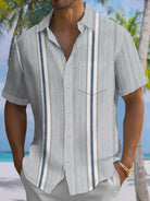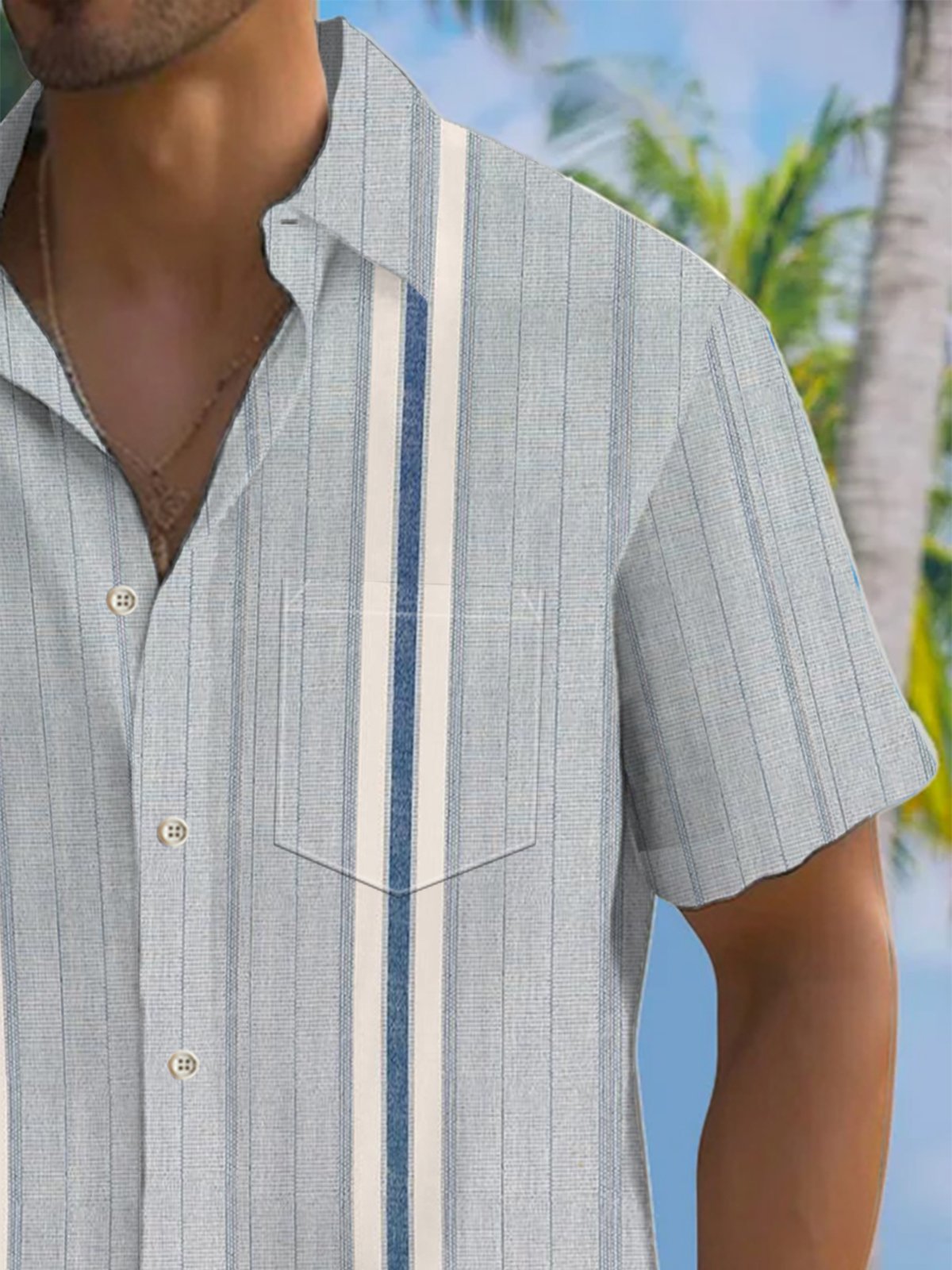 Alohadaddy® Casual Stripe Art Print Chest Pocket Stretch Men's Short Sleeve Shirt Big & Tall