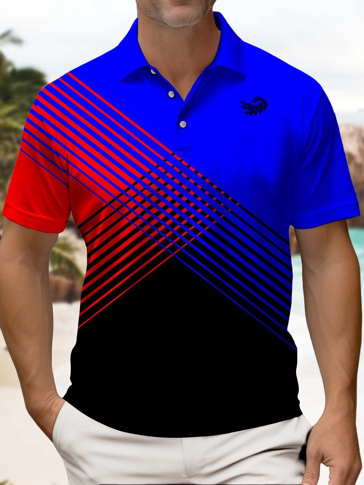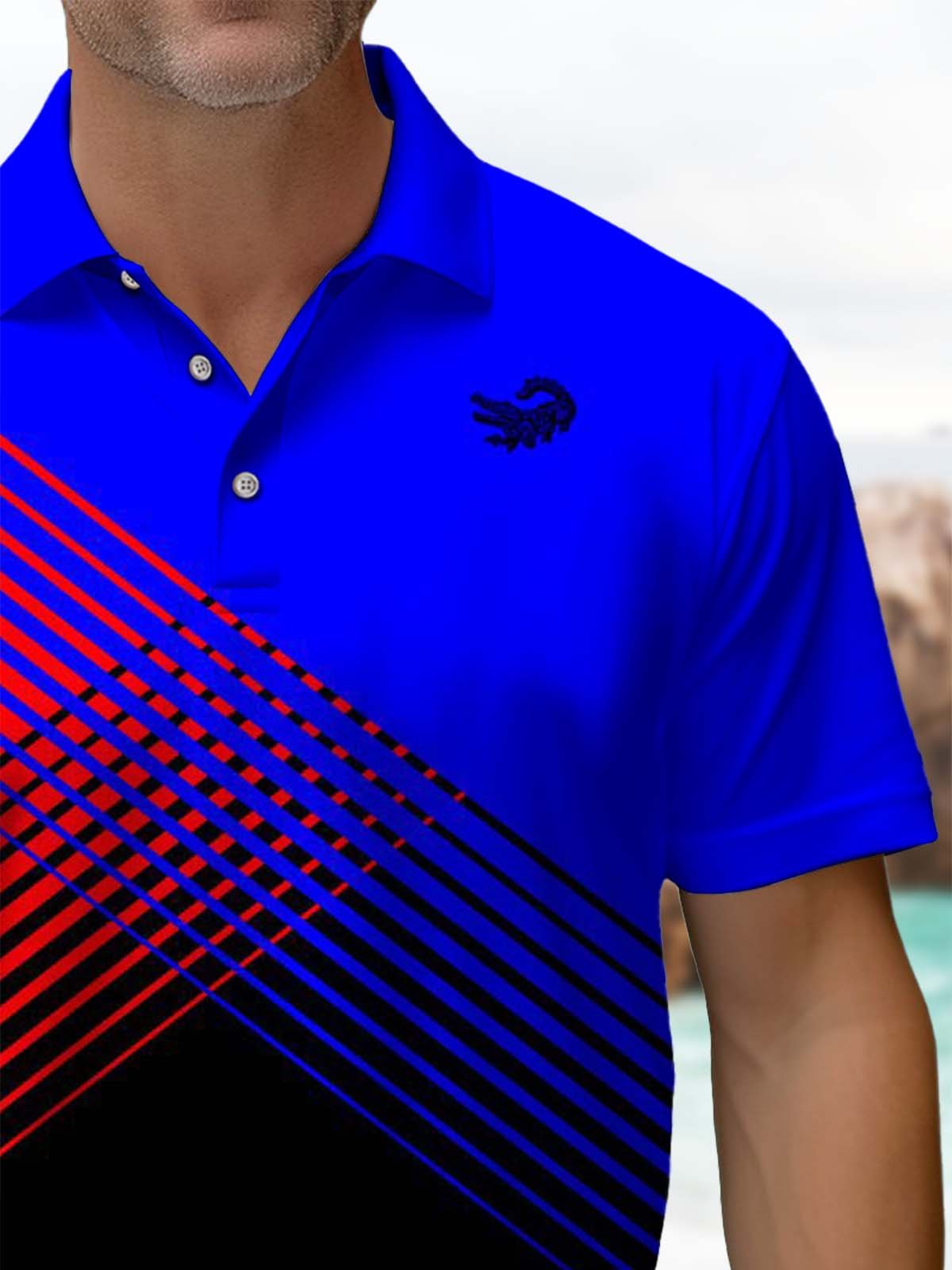 Alohadaddy® Casual Stripe Crocodile Print Art Stretch Men's Short Sleeve Polo Big & Tall