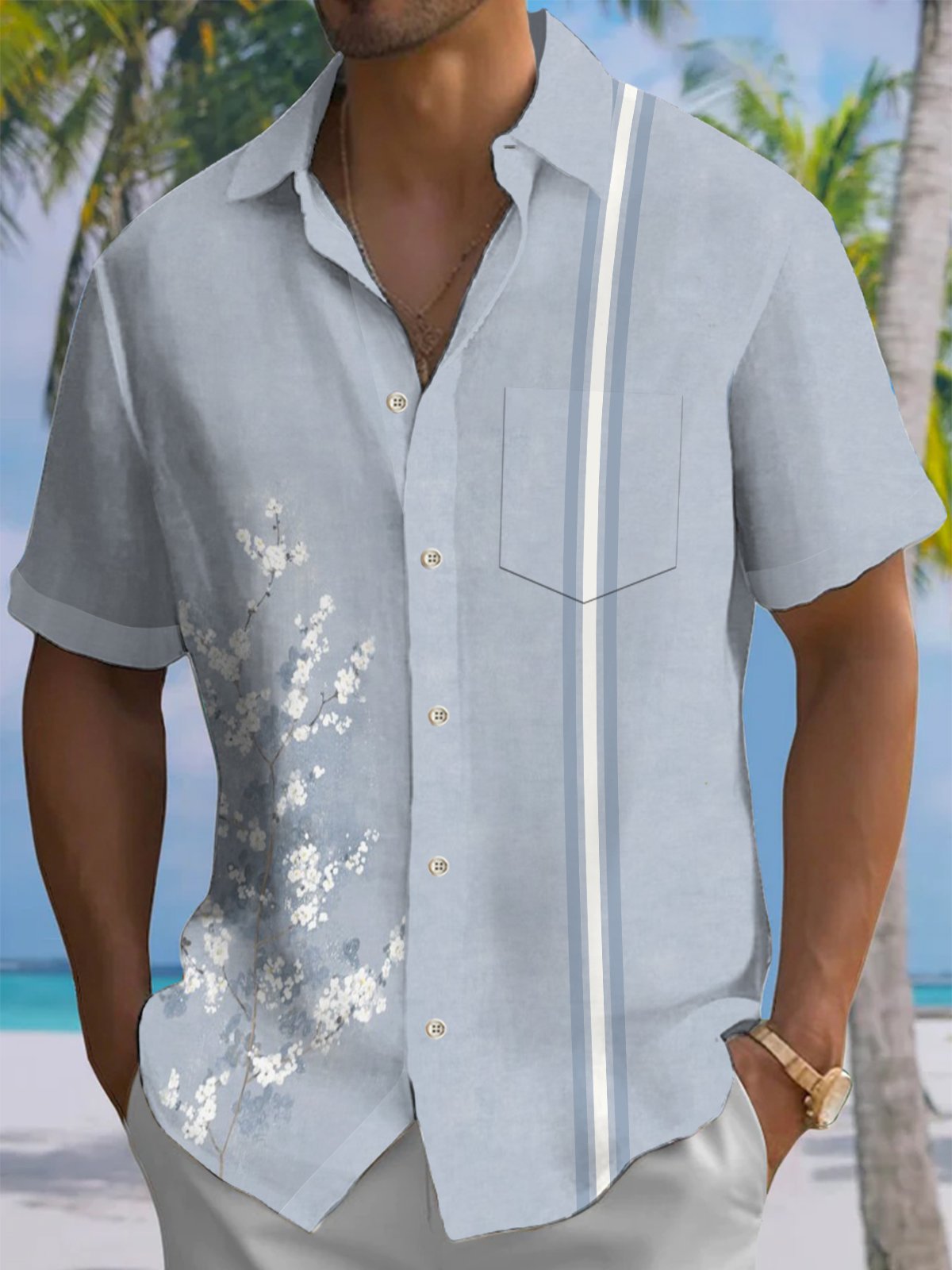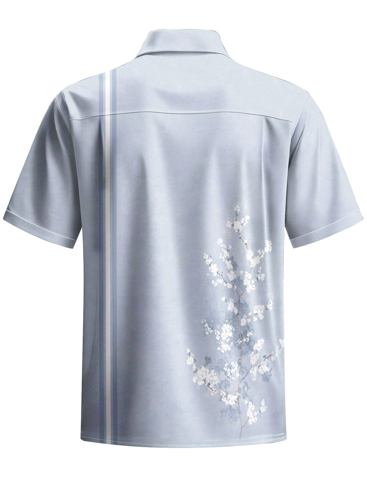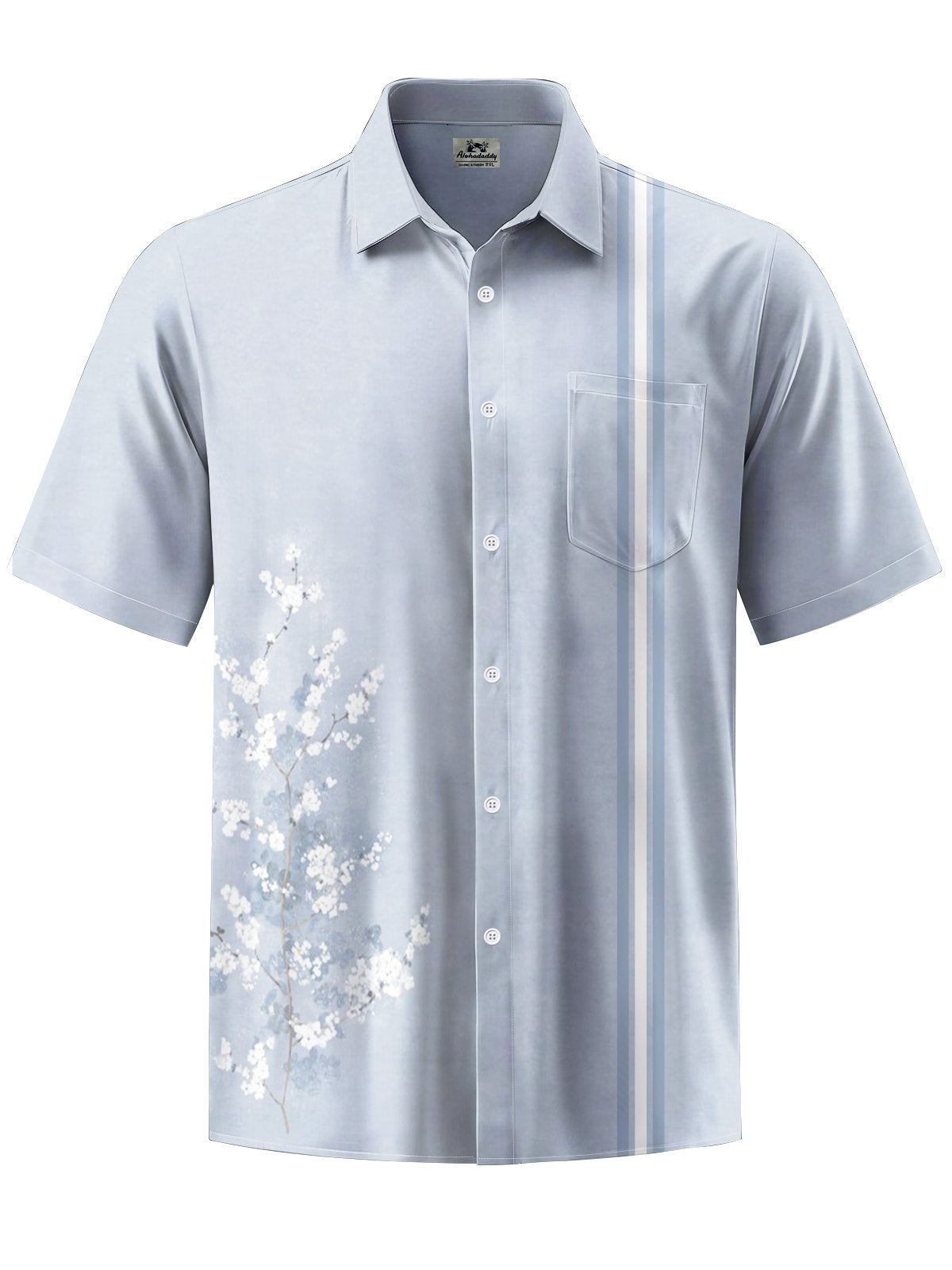 Alohadaddy® Casual Stripe Flower Print Art Elastic Pocket Button Men's Short Sleeve Shirt Big & Tall
