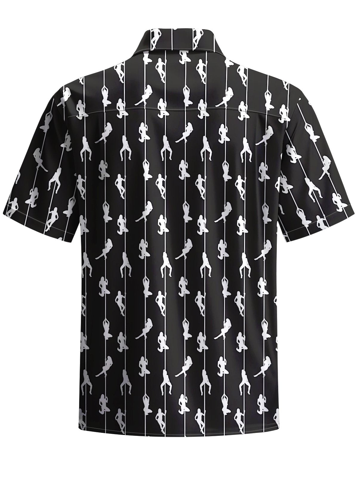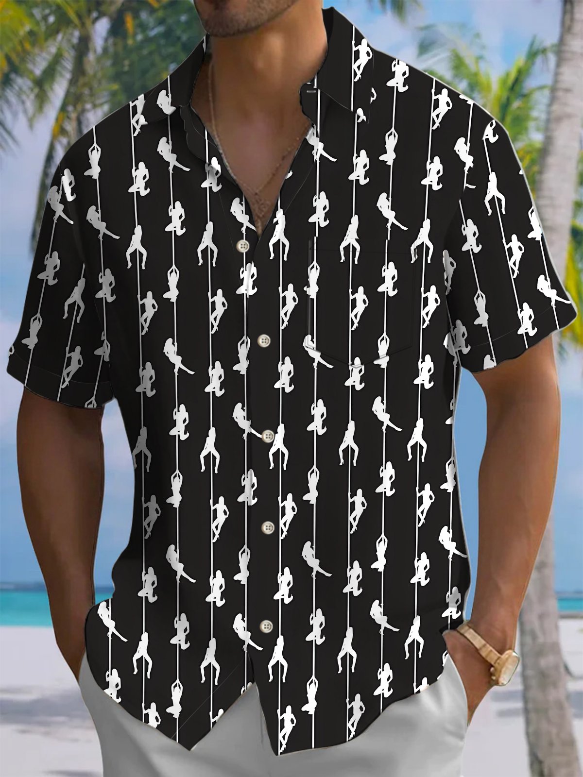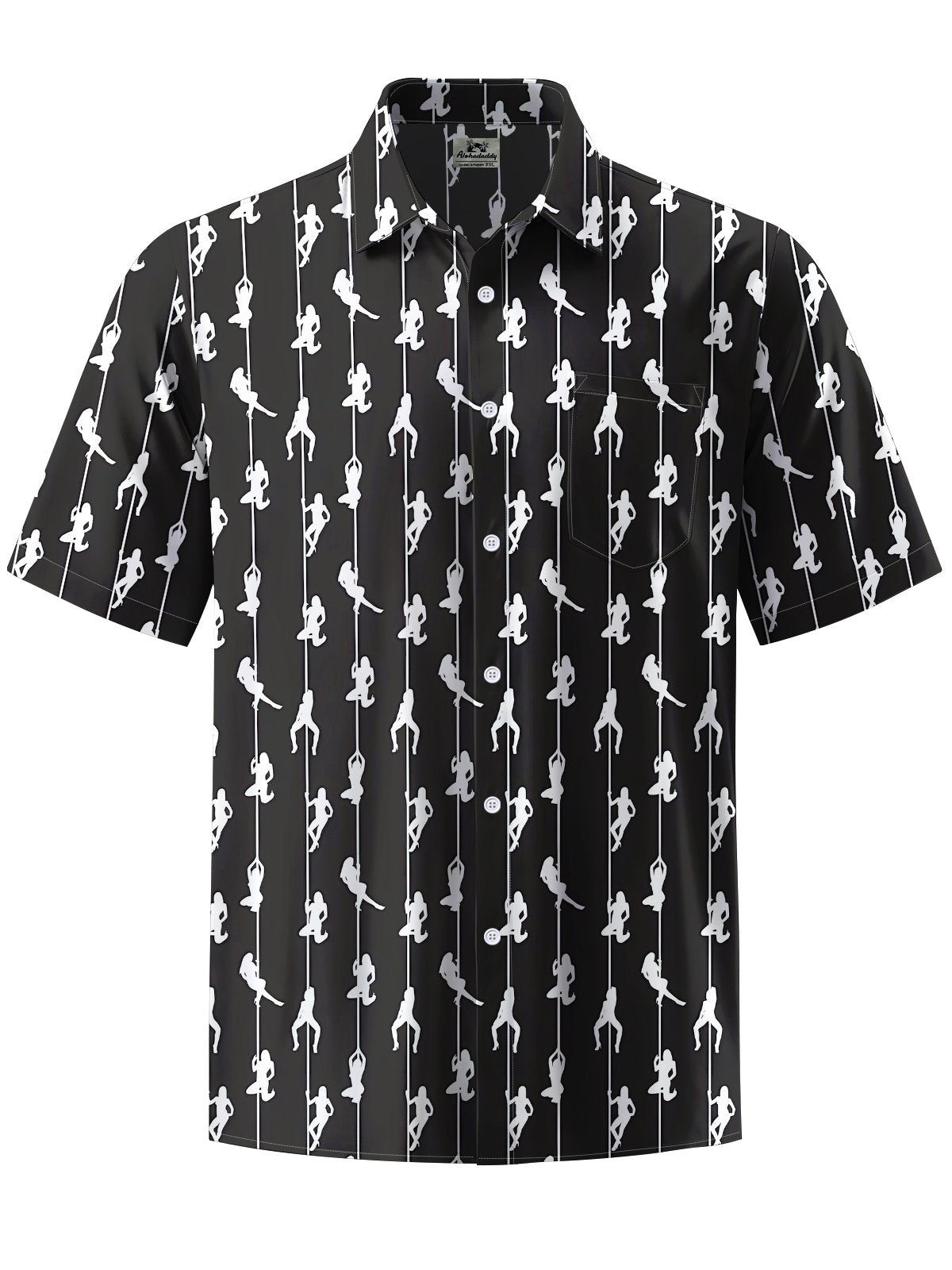 Alohadaddy® Casual Striped Dance Art Print Chest Pocket Men's Short Sleeve Shirt Big & Tall