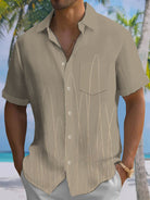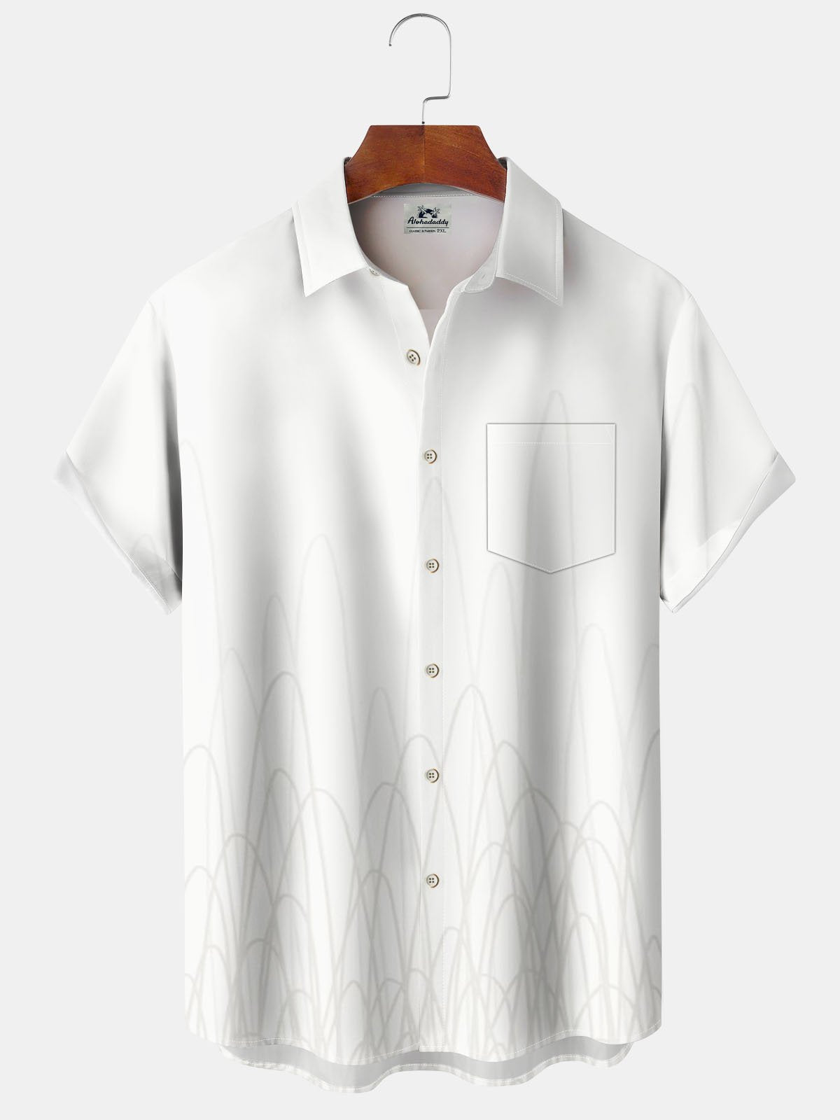 Alohadaddy® Casual Striped Geometric Print Pocket Stretch Men's Short Sleeve Shirt Big & Tall