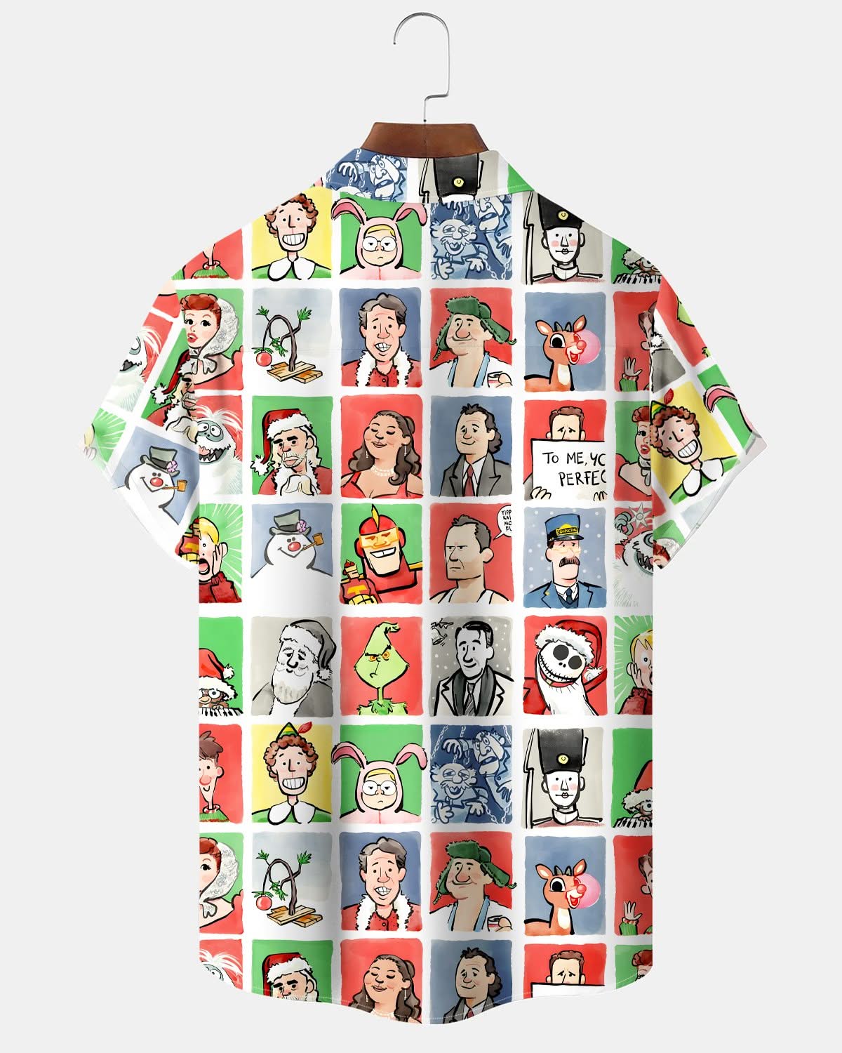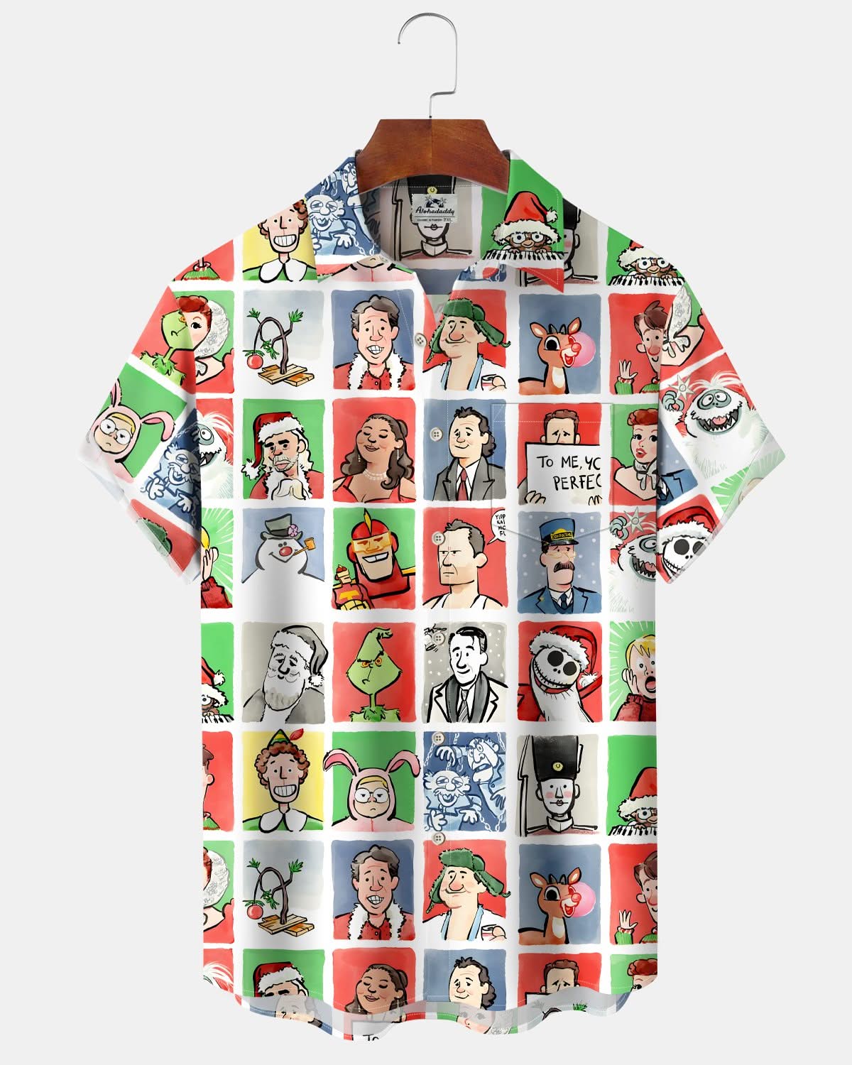 Alohadaddy® Christmas Fun Cartoon Movie Puzzle Pocket Short-Sleeve Shirt