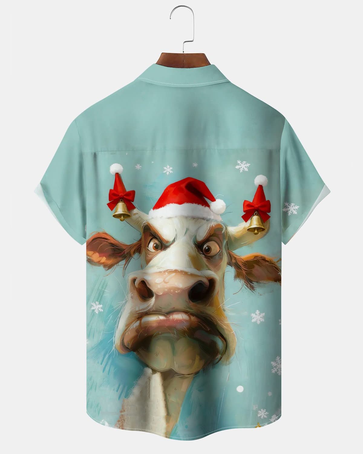 Alohadaddy® Christmas Fun Cow Print Pocket Button Men's Short Sleeve Shirt Big & Tall