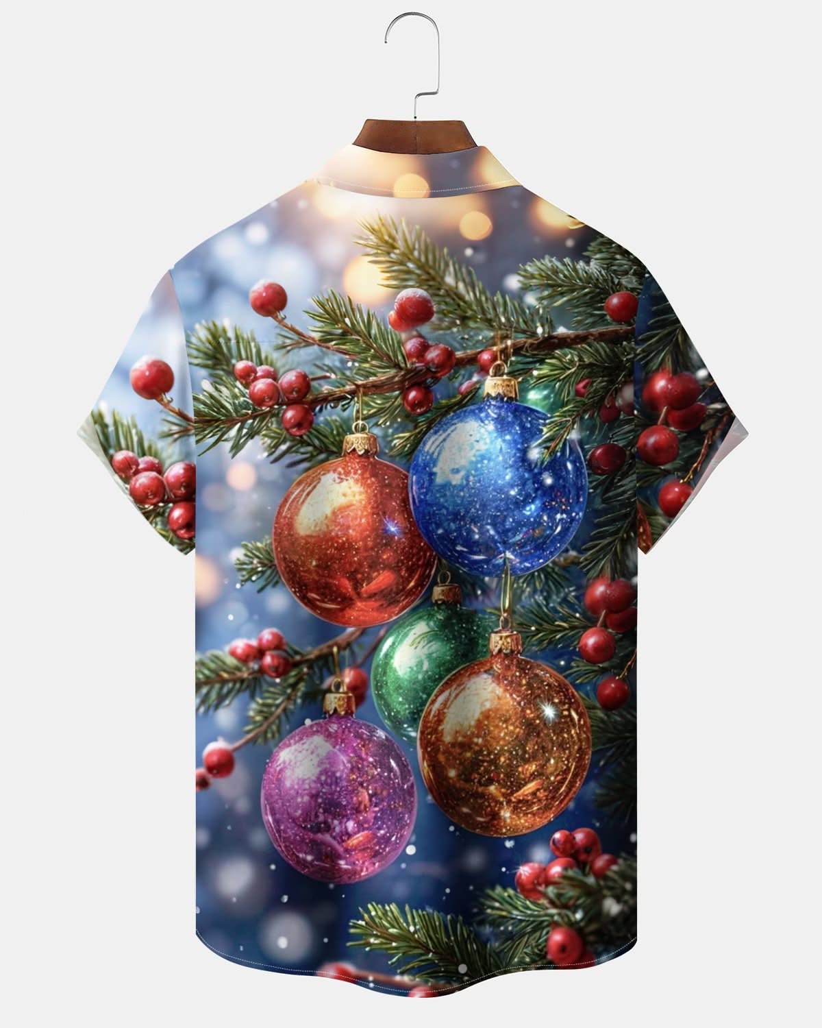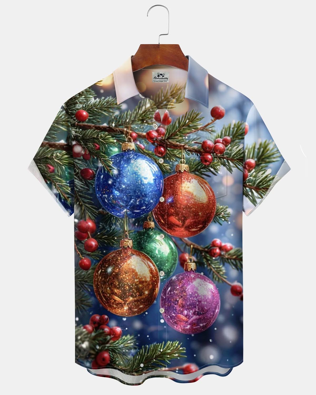Alohadaddy® Christmas Tree Lights Printed Pocket Button Men's Short Sleeve Shirt Big & Tall