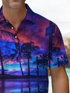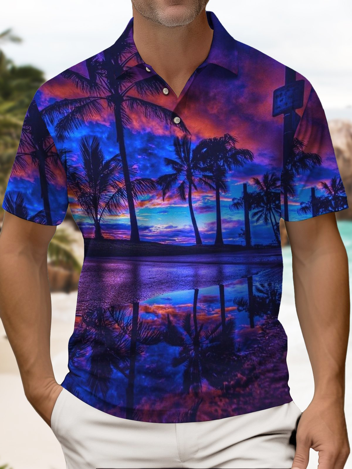 Alohadaddy® Hawaiian Coconut Tree Beach Vacation Art Print Men's Short Sleeve Polo Shirt Big & Tall