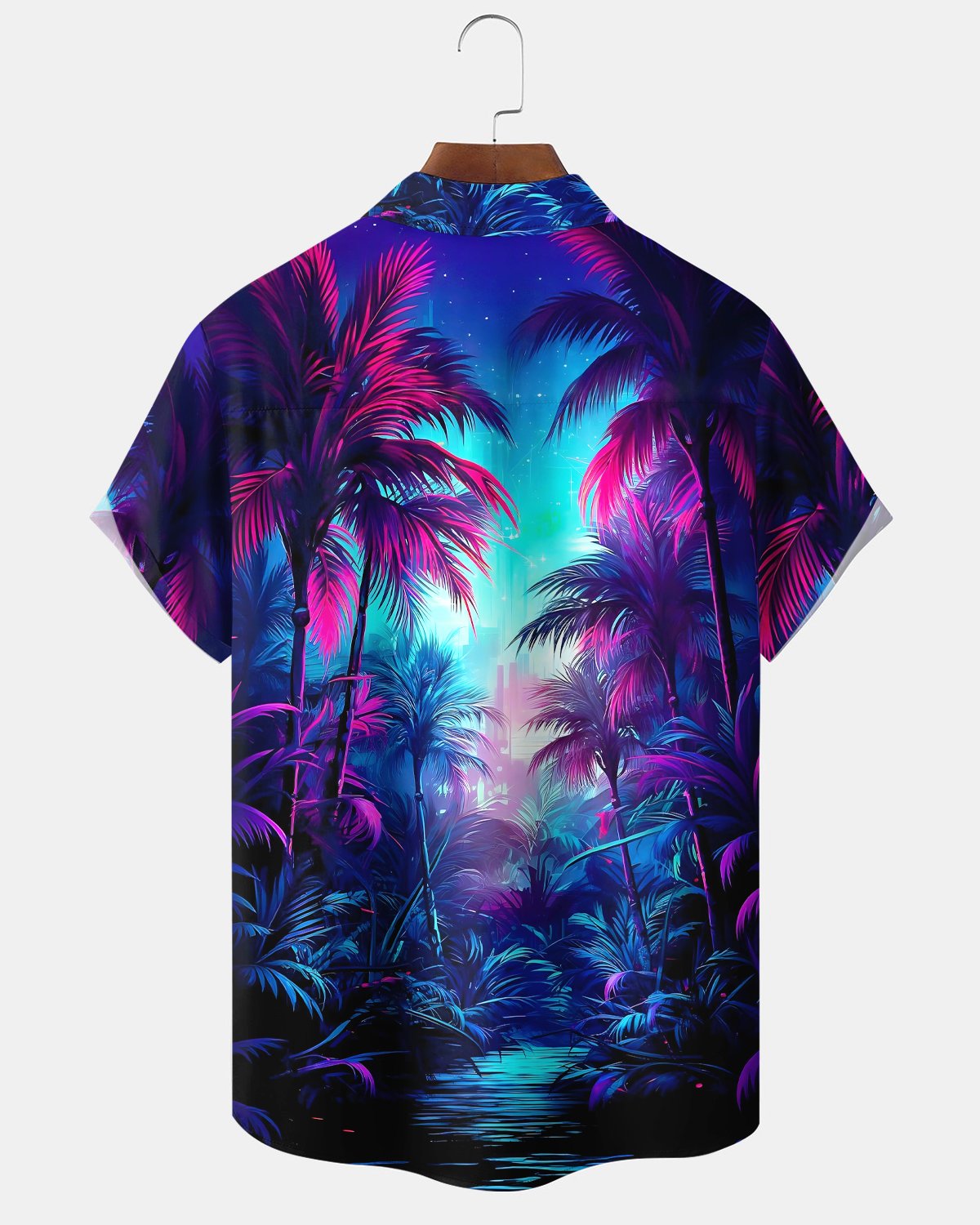 Alohadaddy® Hawaiian Coconut Tree Gradient Rainforest Valentine's Day Men's Short-Sleeve Shirt