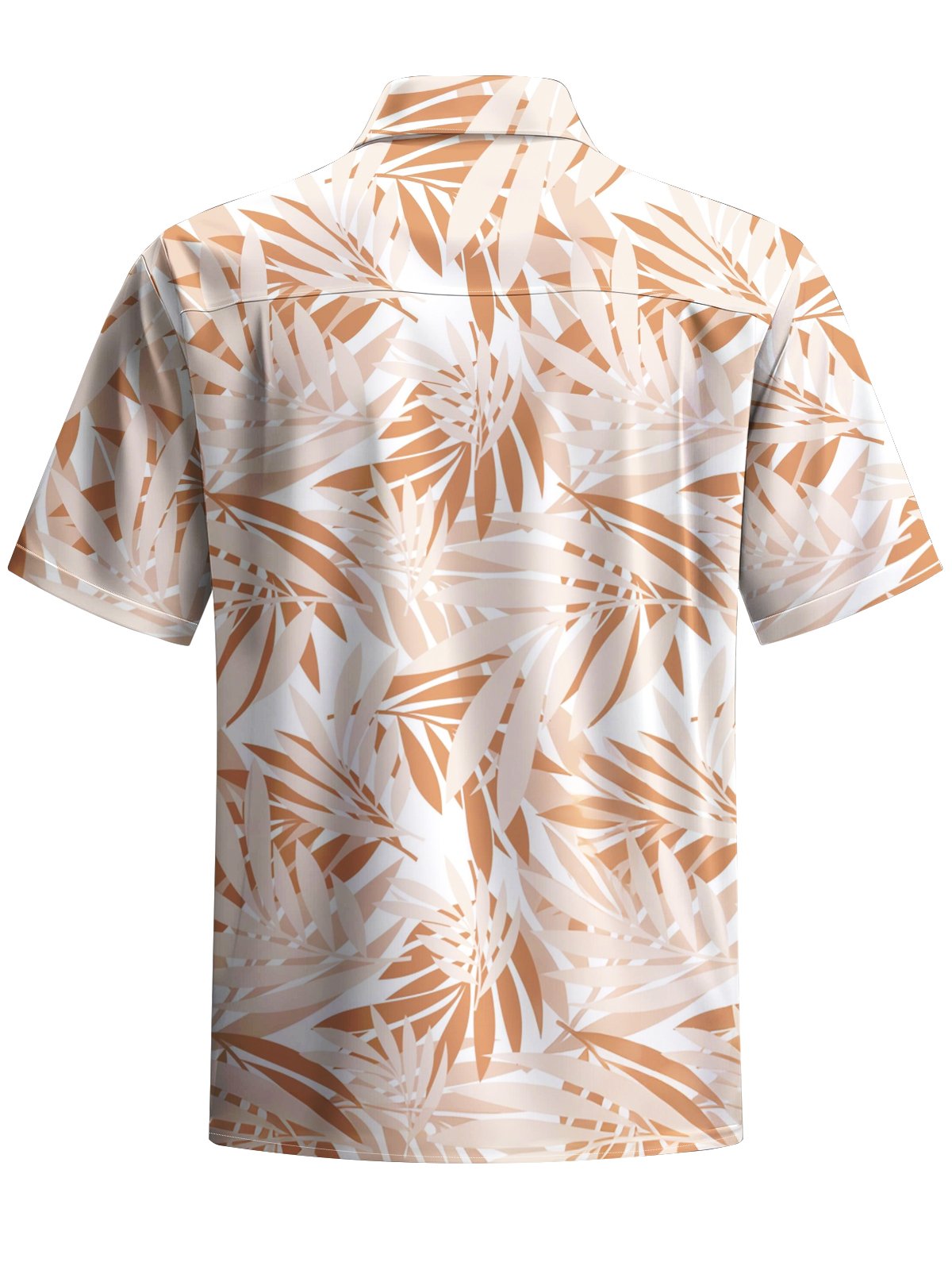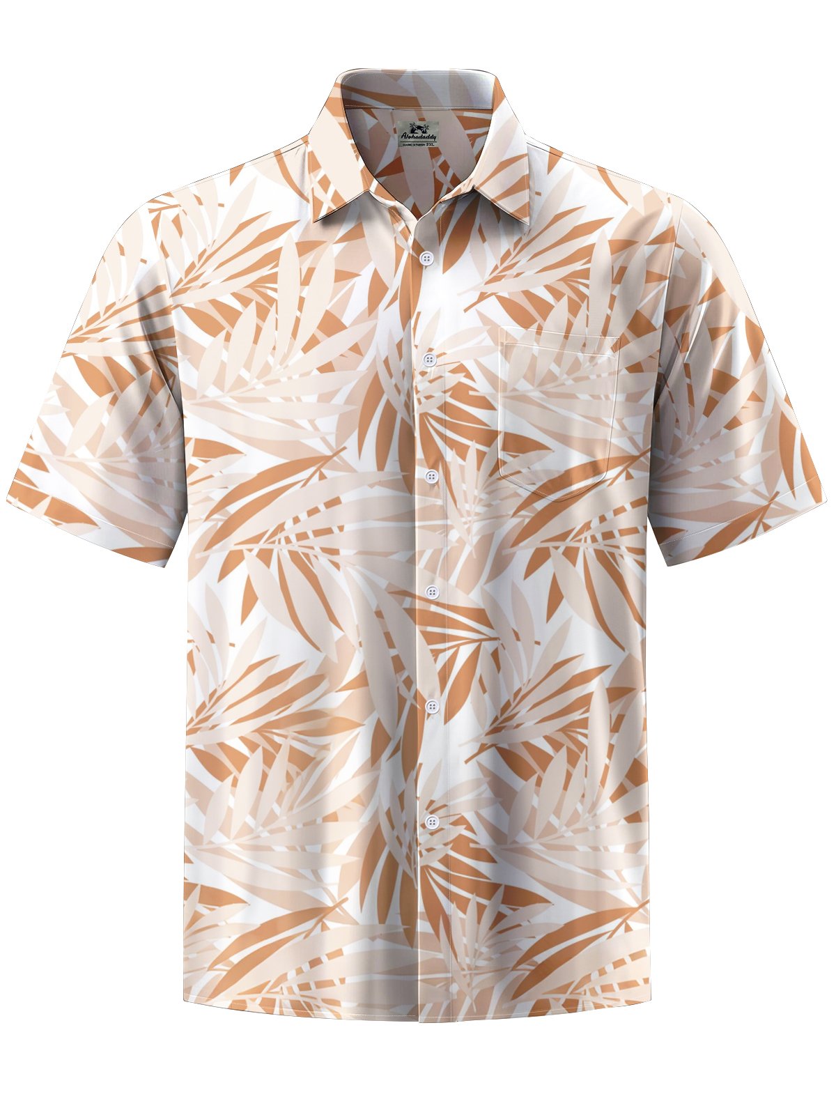 Alohadaddy® Hawaiian Leaf Print Art Pocket Stretch Men's Short Sleeve Shirt Big & Tall