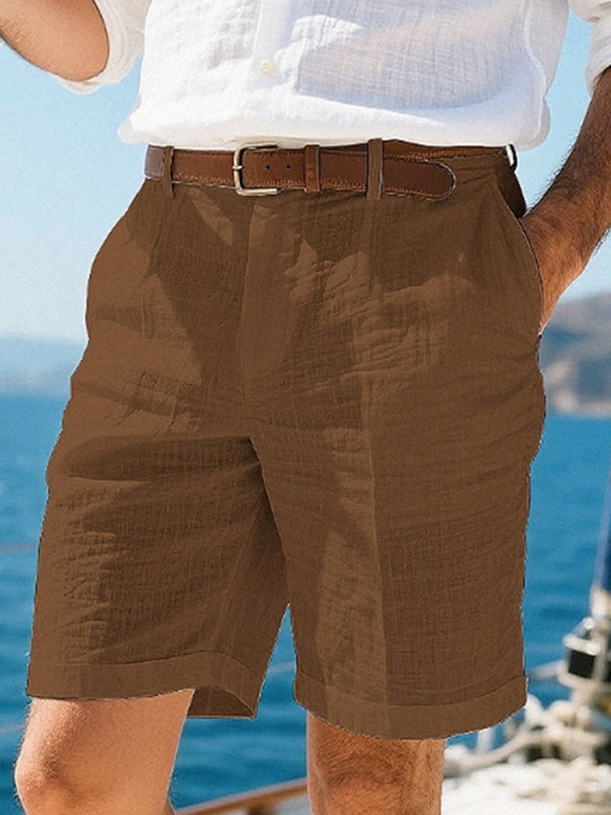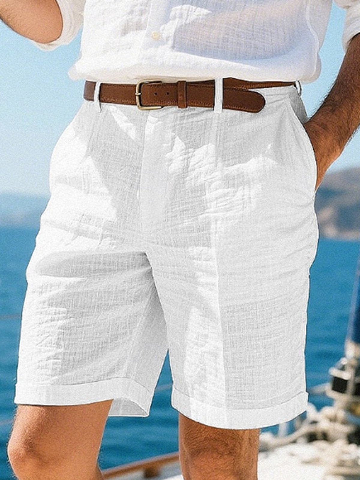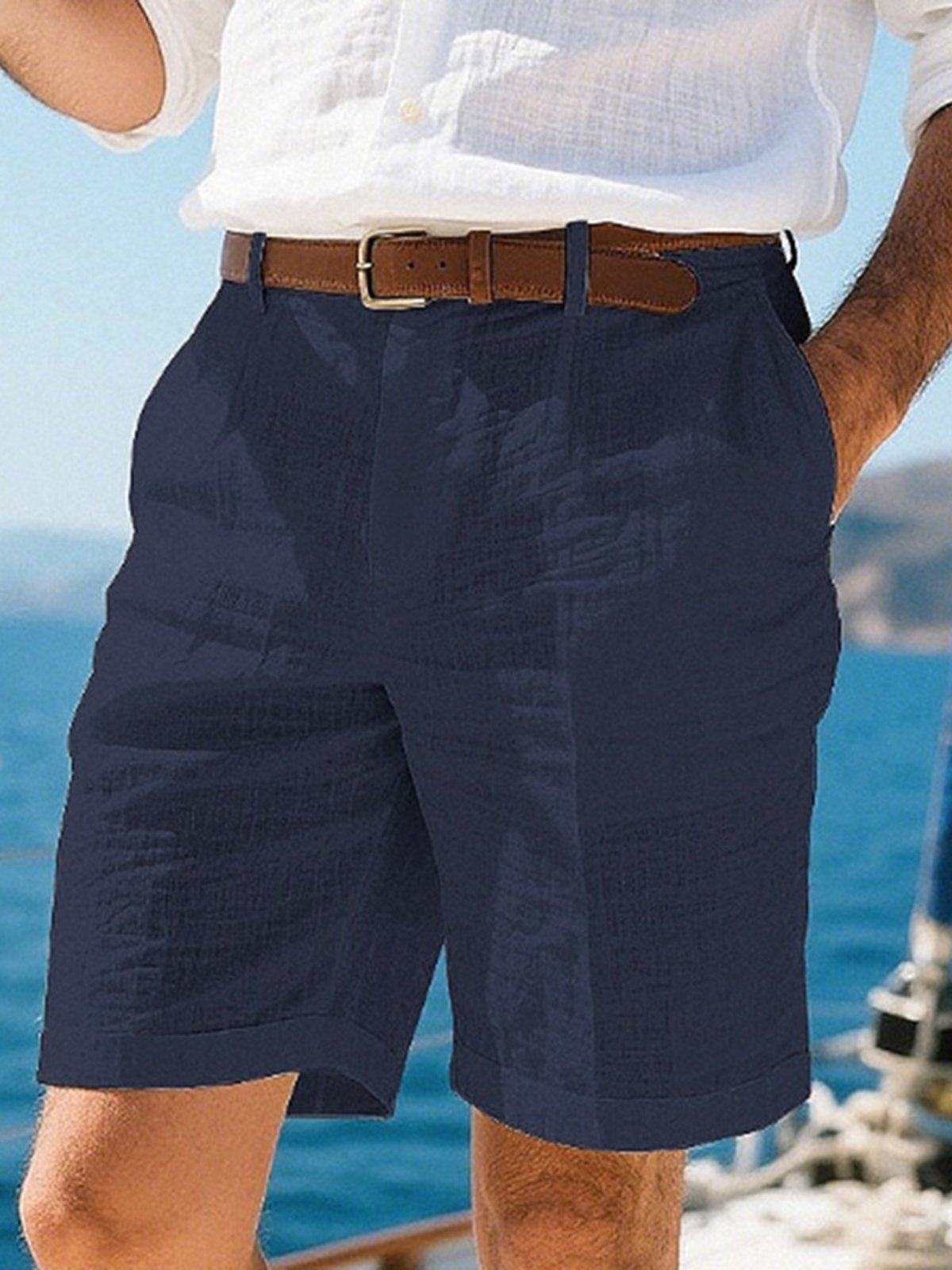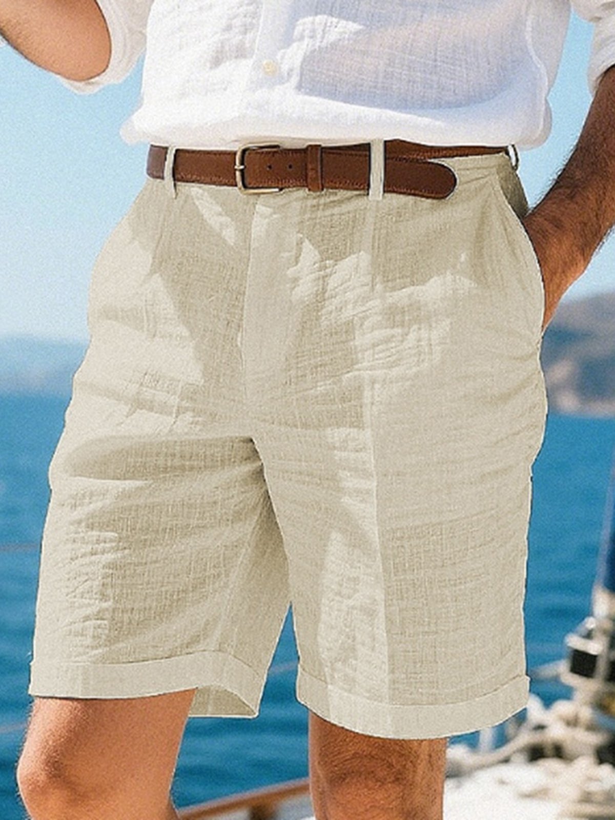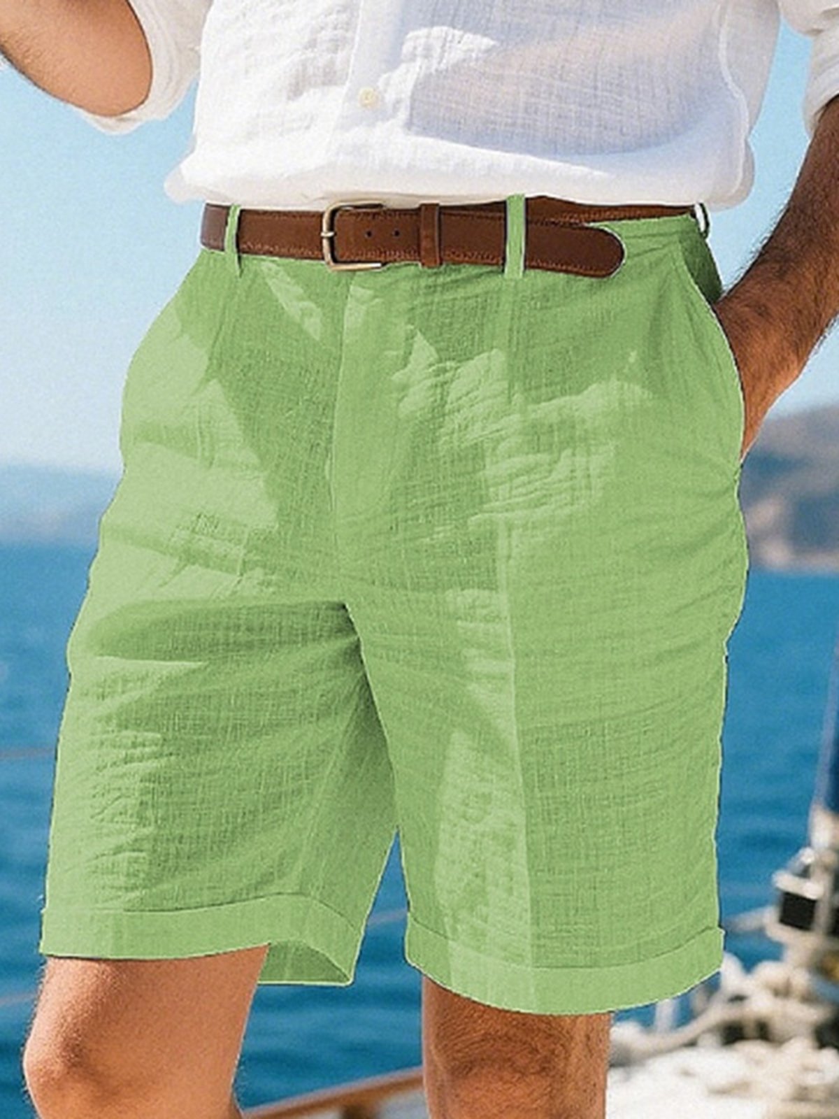 Alohadaddy® Hawaiian Men's Linen Summer Beach Shorts with Slant Pockets and Buttons