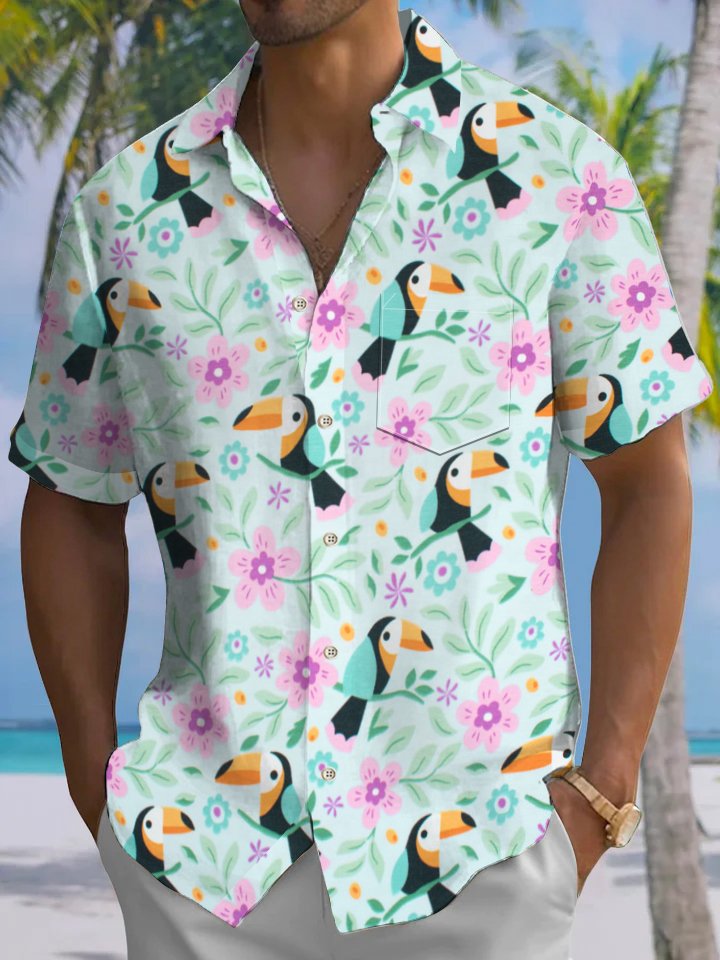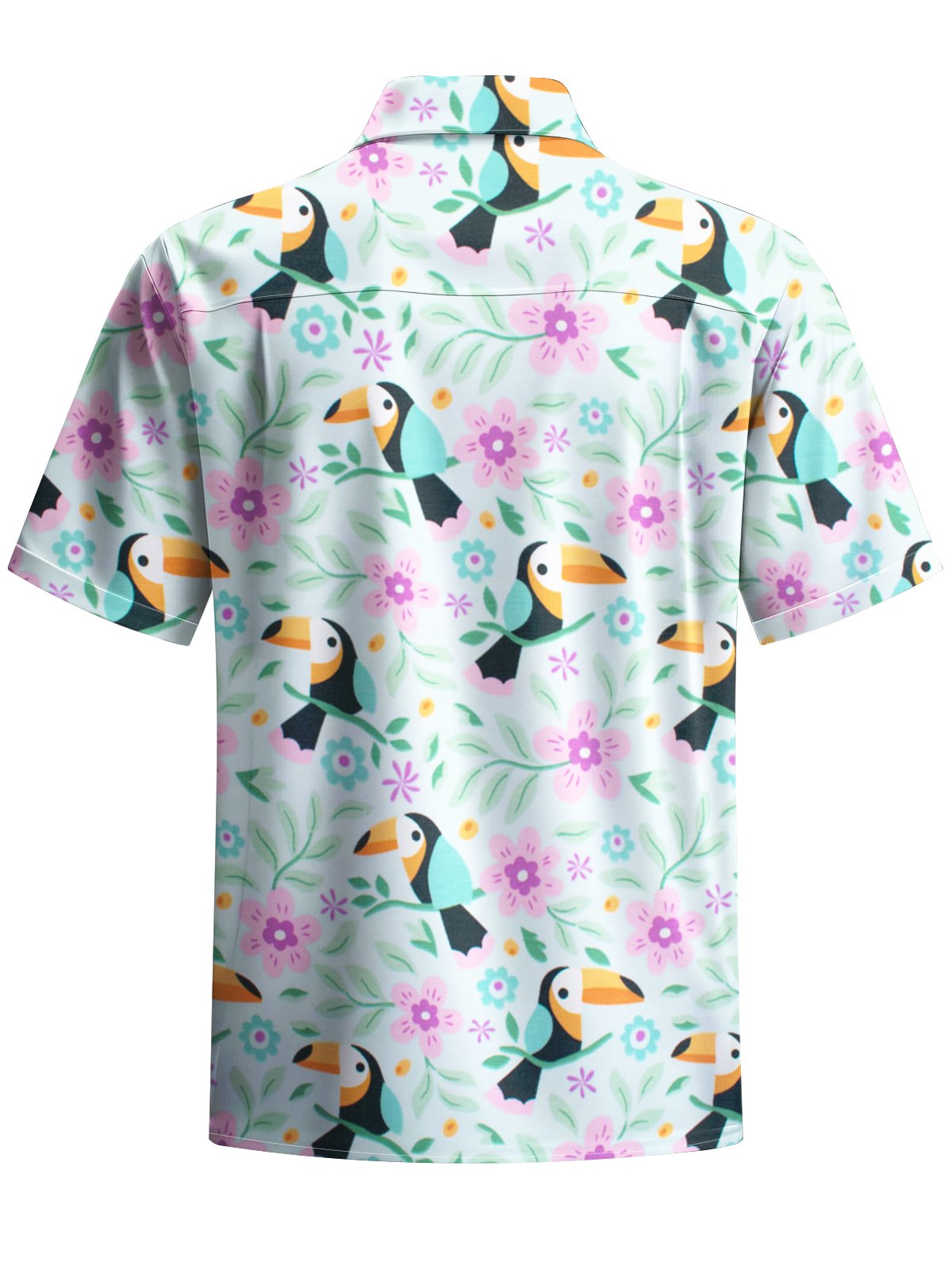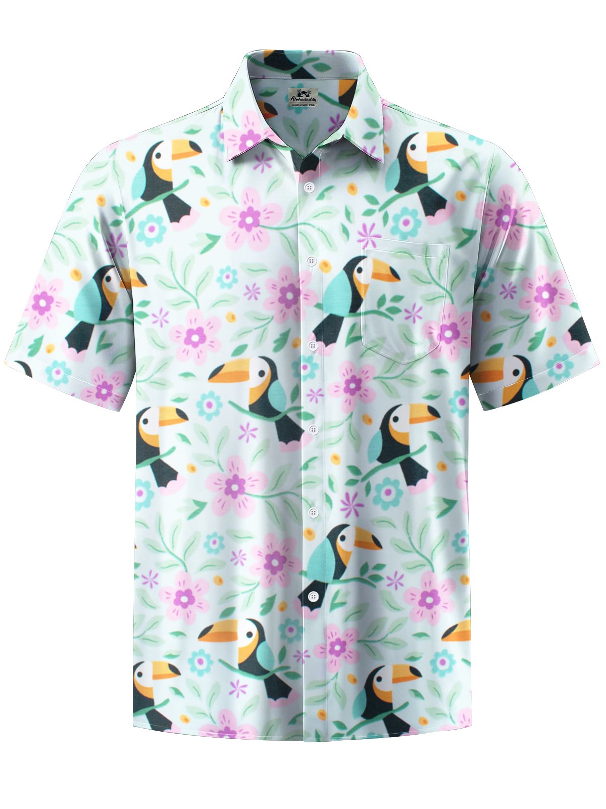 Alohadaddy® Hawaiian Parrot Art Print Chest Pocket Men's Short Sleeve Shirt Big & Tall