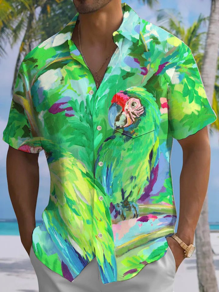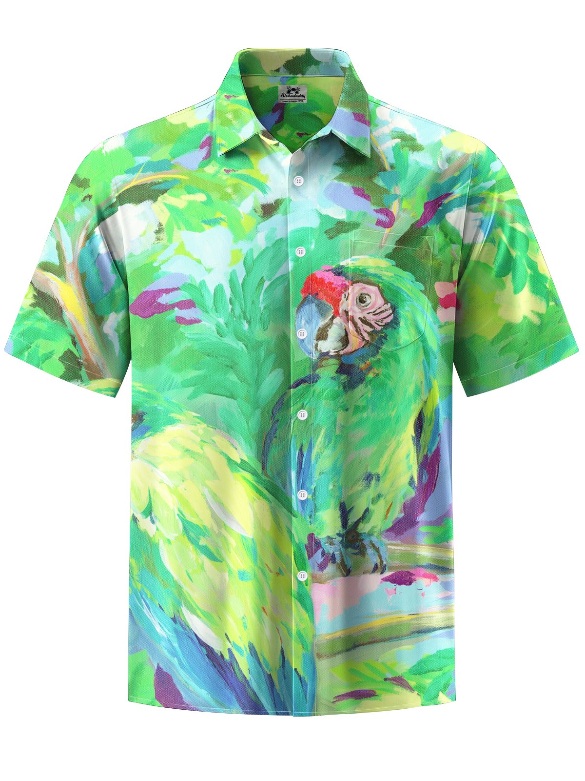 Alohadaddy® Hawaiian Parrot Art Print Chest Pocket Men's Short Sleeve Shirt Big & Tall