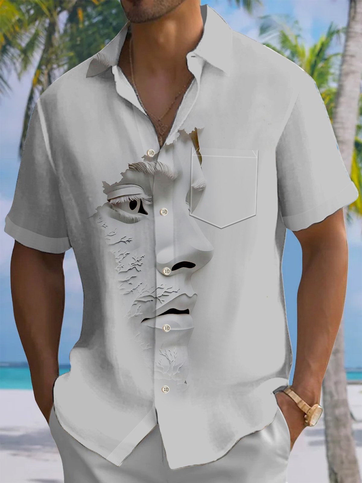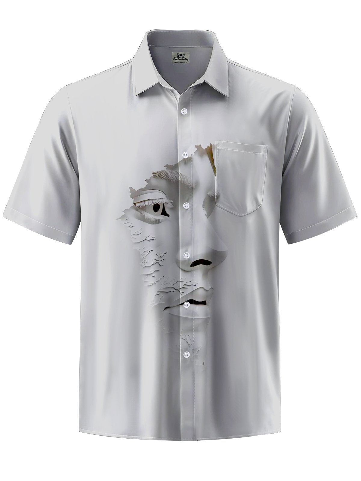 Alohadaddy® Men's Casual Face Art Print Moisture-Wicking Chest Pocket Short Sleeve Shirt Big & Tall