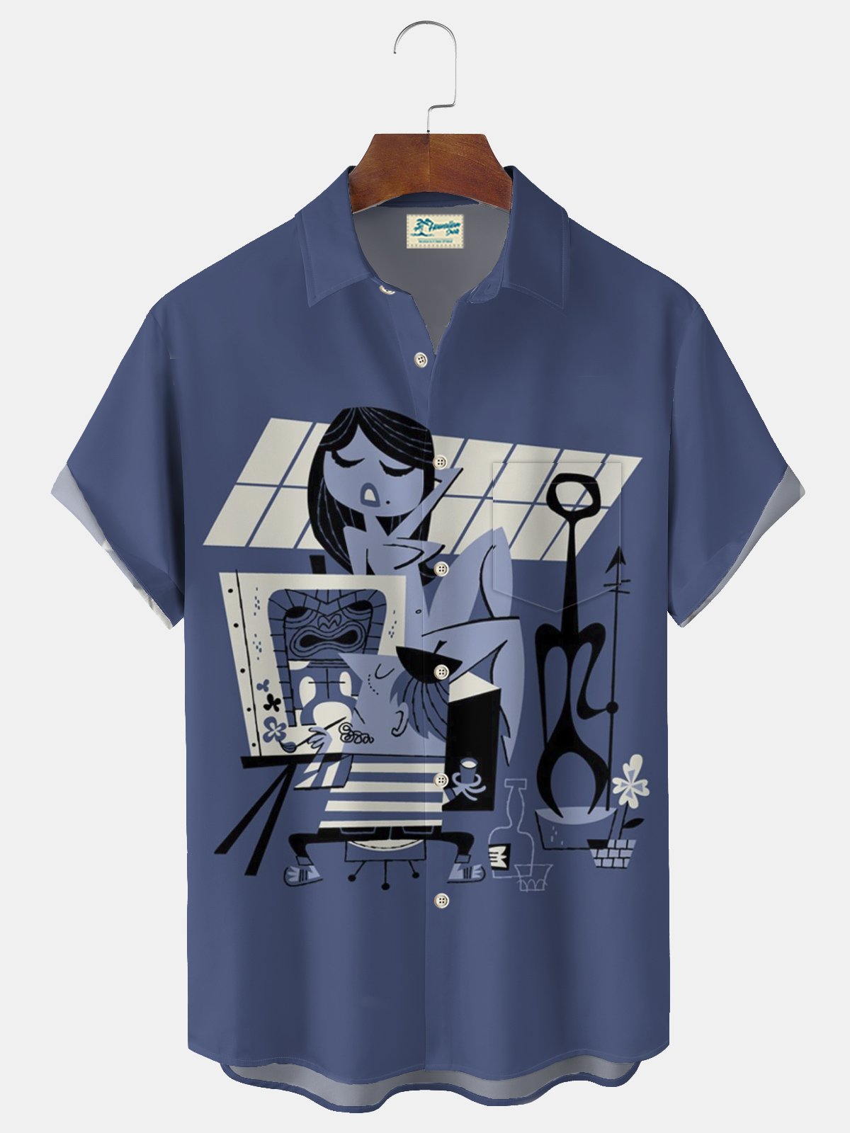 Alohadaddy® Men's Retro Medieval Geometric Painter Print Lapel Short Sleeve Shirt Big & Tall