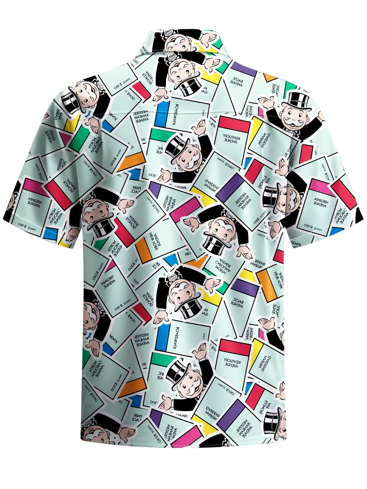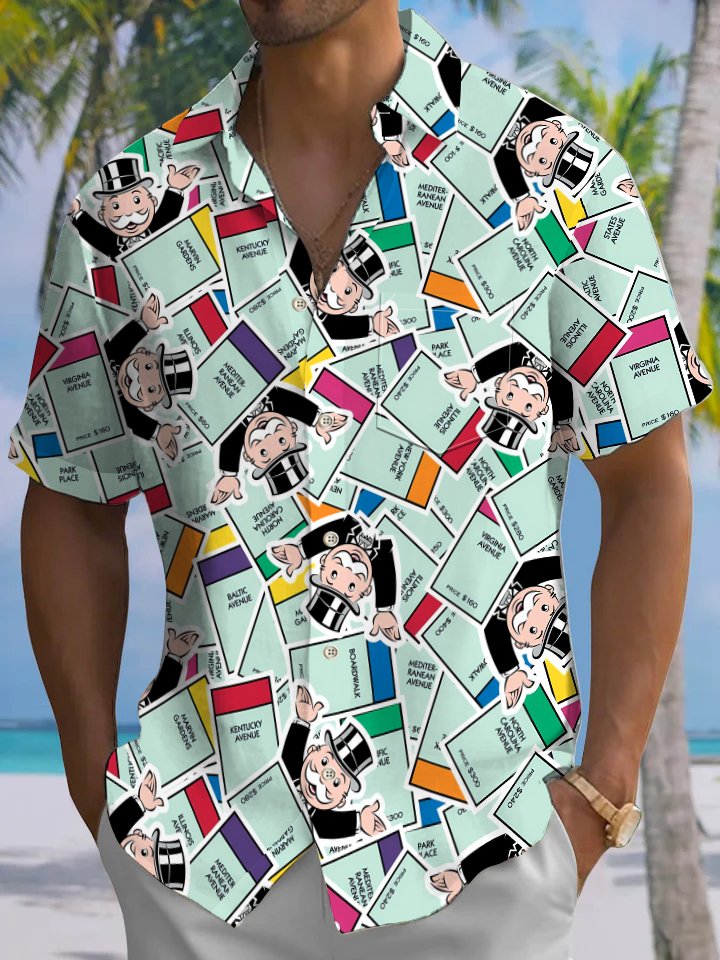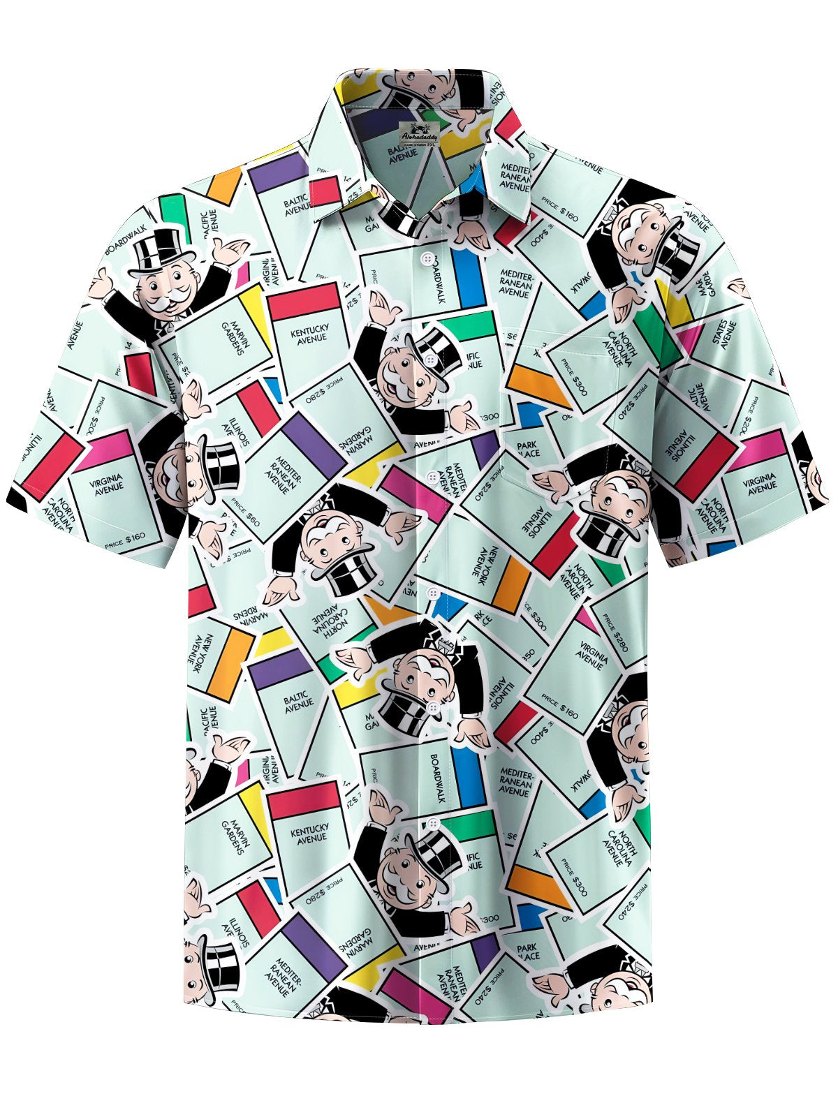 Alohadaddy® Retro Casual Geometric Cartoon Print Art Chest Pocket Men's Short Sleeve Shirt Big & Tall