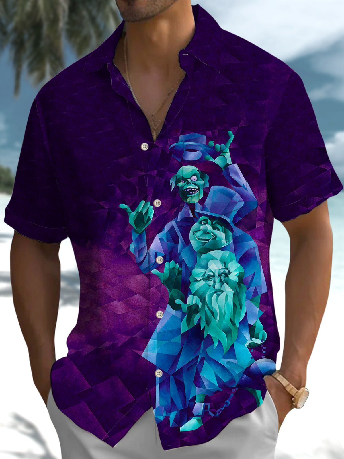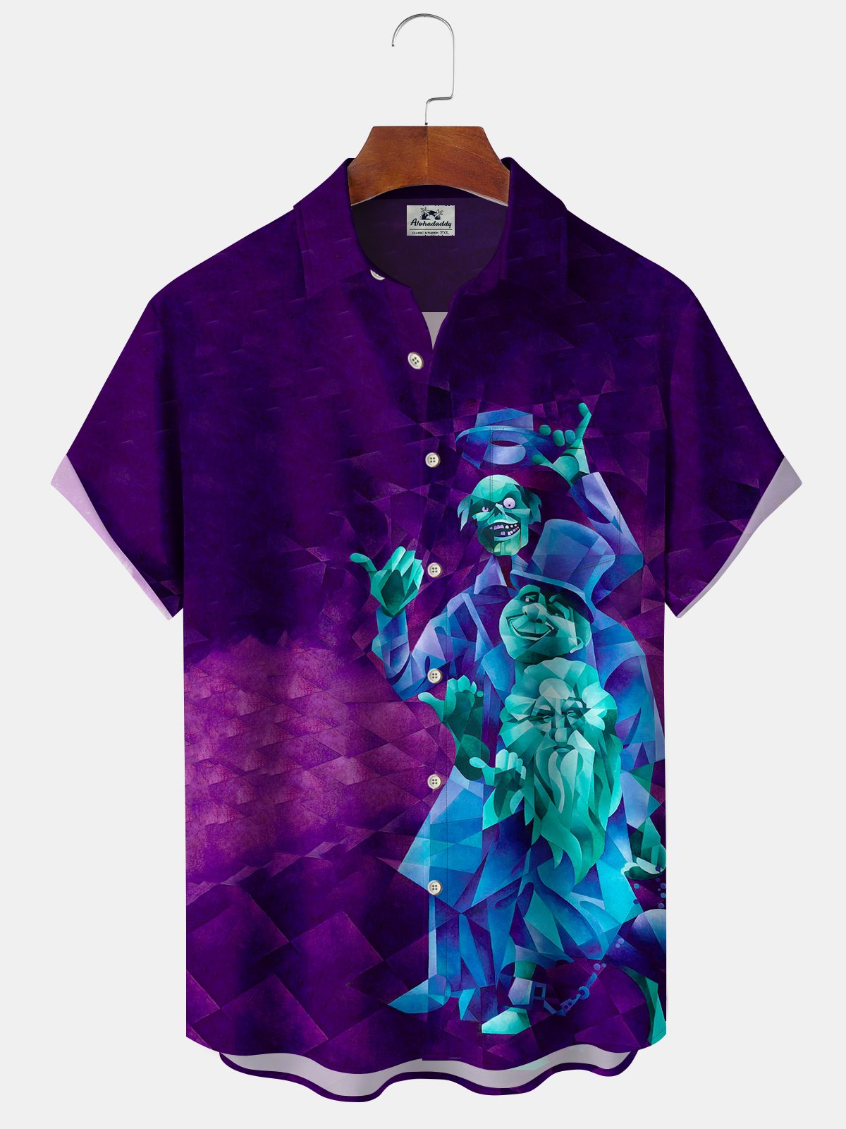 Alohadaddy® Retro Geometric Cartoon Pocket Button Stretch Men's Short Sleeve Shirt Big & Tall
