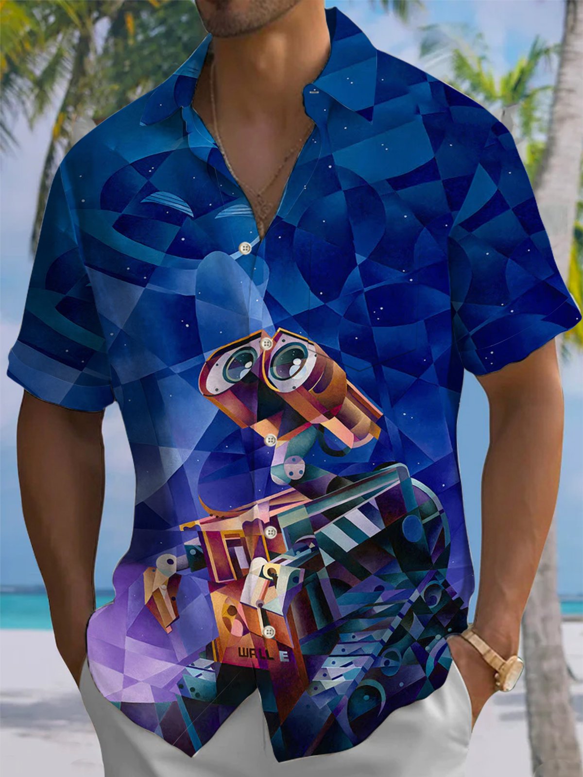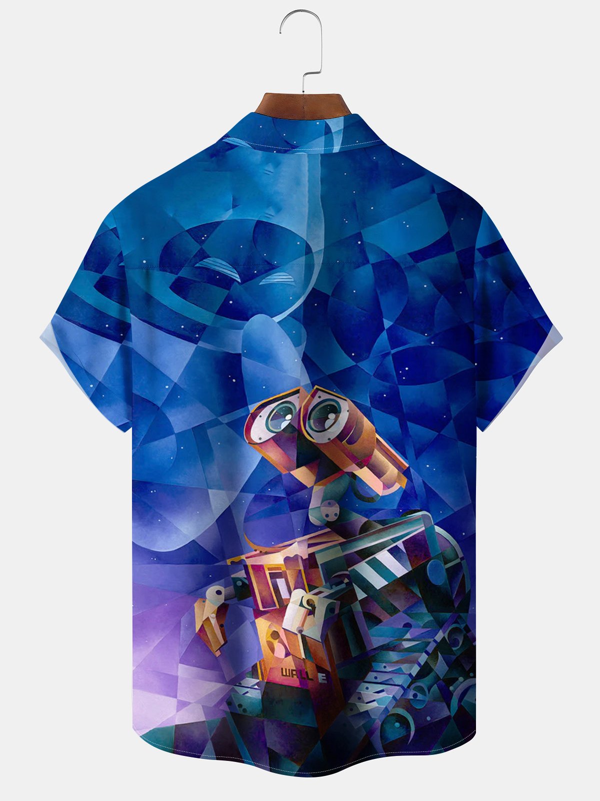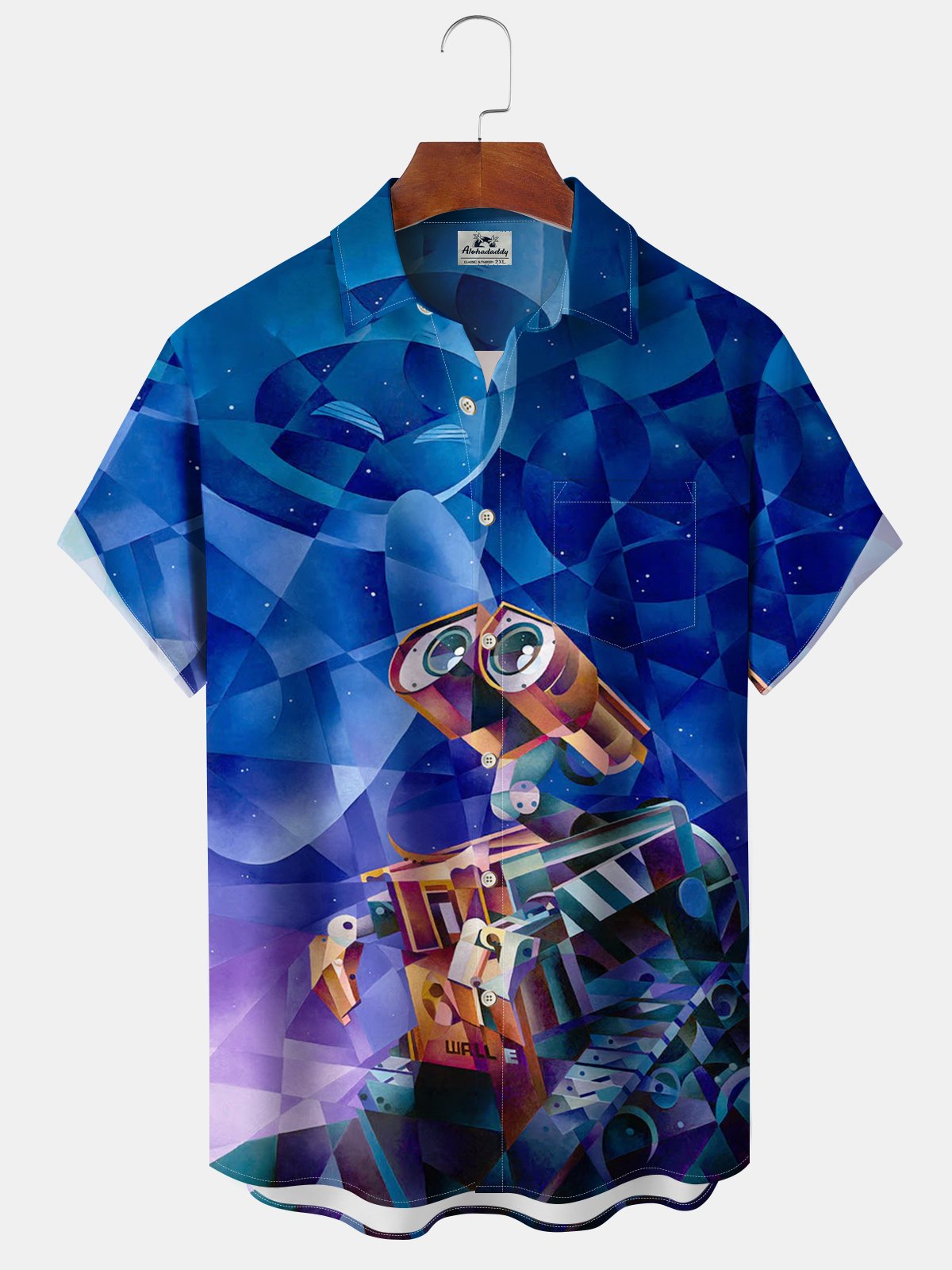 Alohadaddy® Retro Geometric Cartoon Robot Pocket Button Stretch Men's Short Sleeve Shirt Big & Tall
