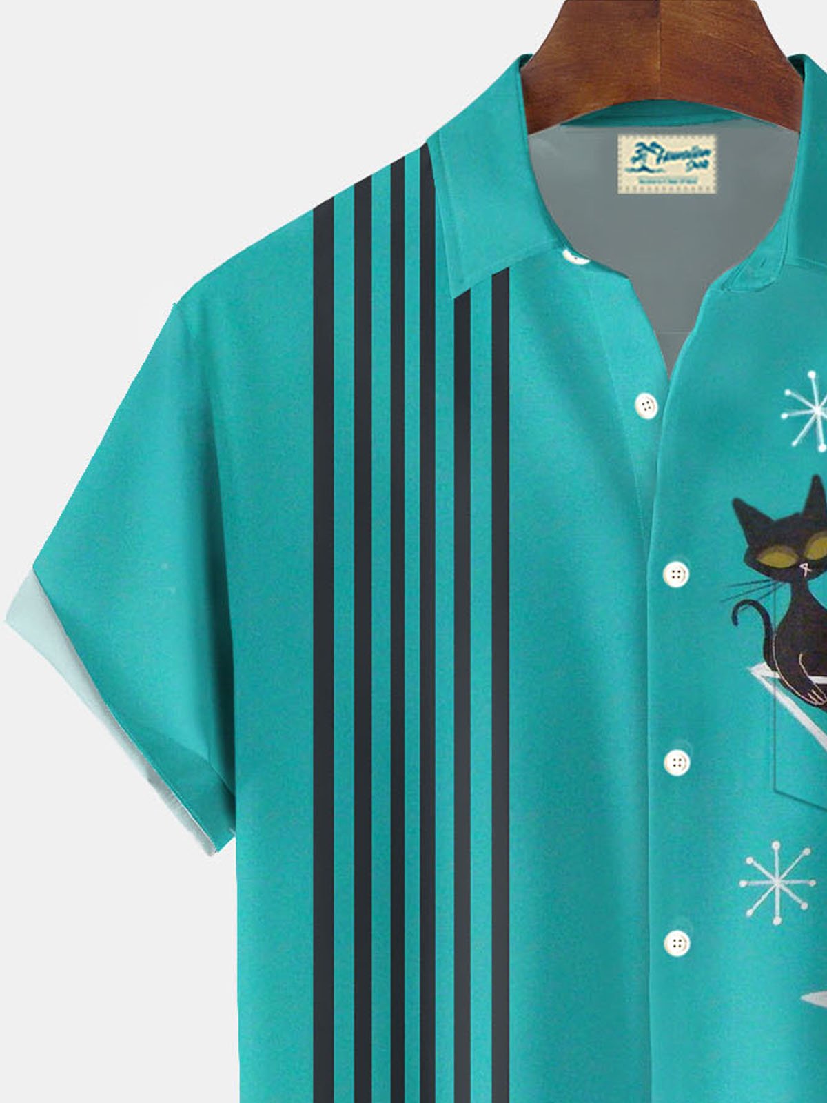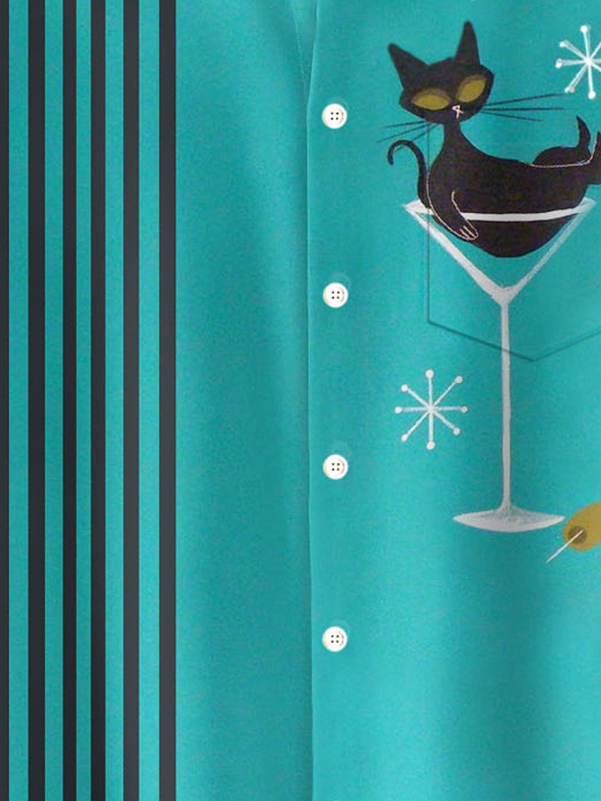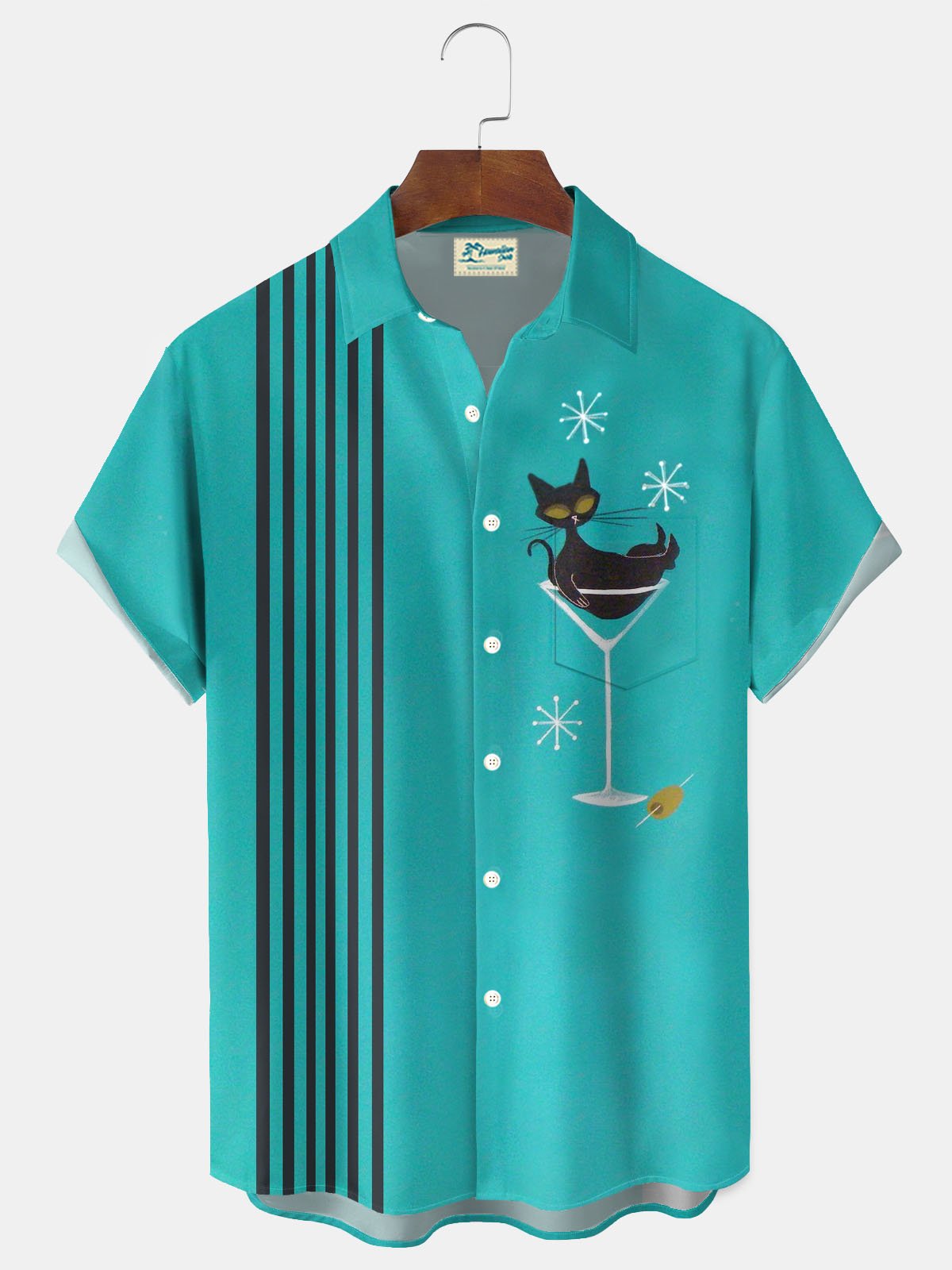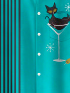 Alohadaddy® Retro Mid-Century Geometric Atomic Cat Print Men's Button Pocket Short Sleeve Shirt Big & Tall