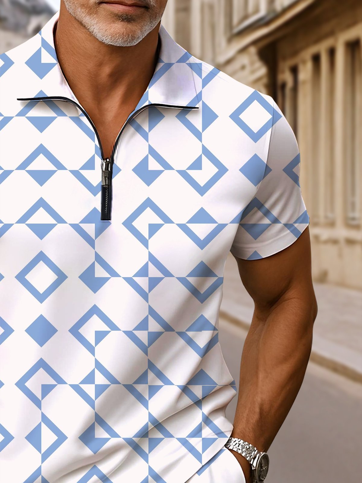 Casual Geometric Moisture Wicking Men's Shorts Short Sleeve Polo Shirt Set