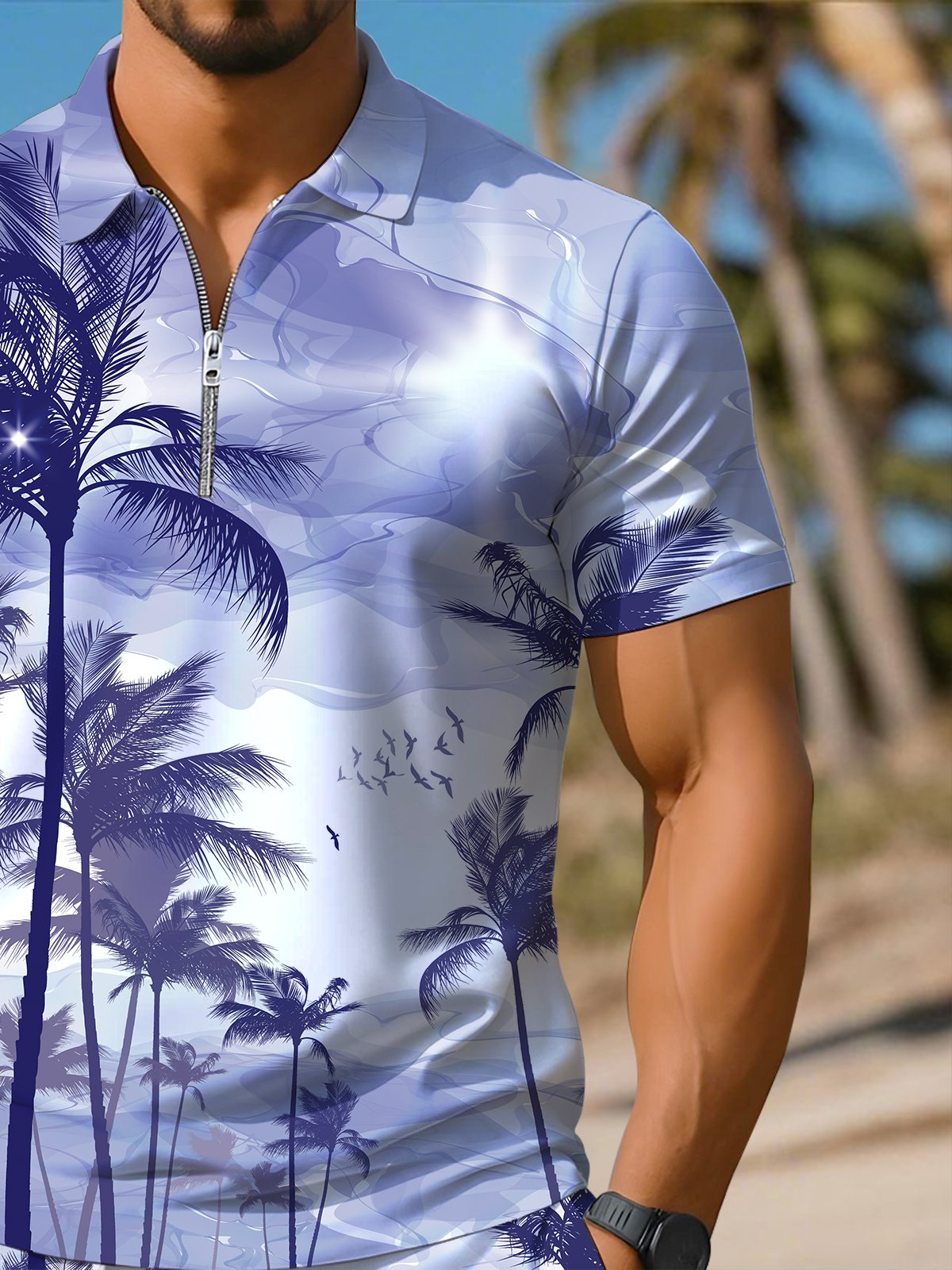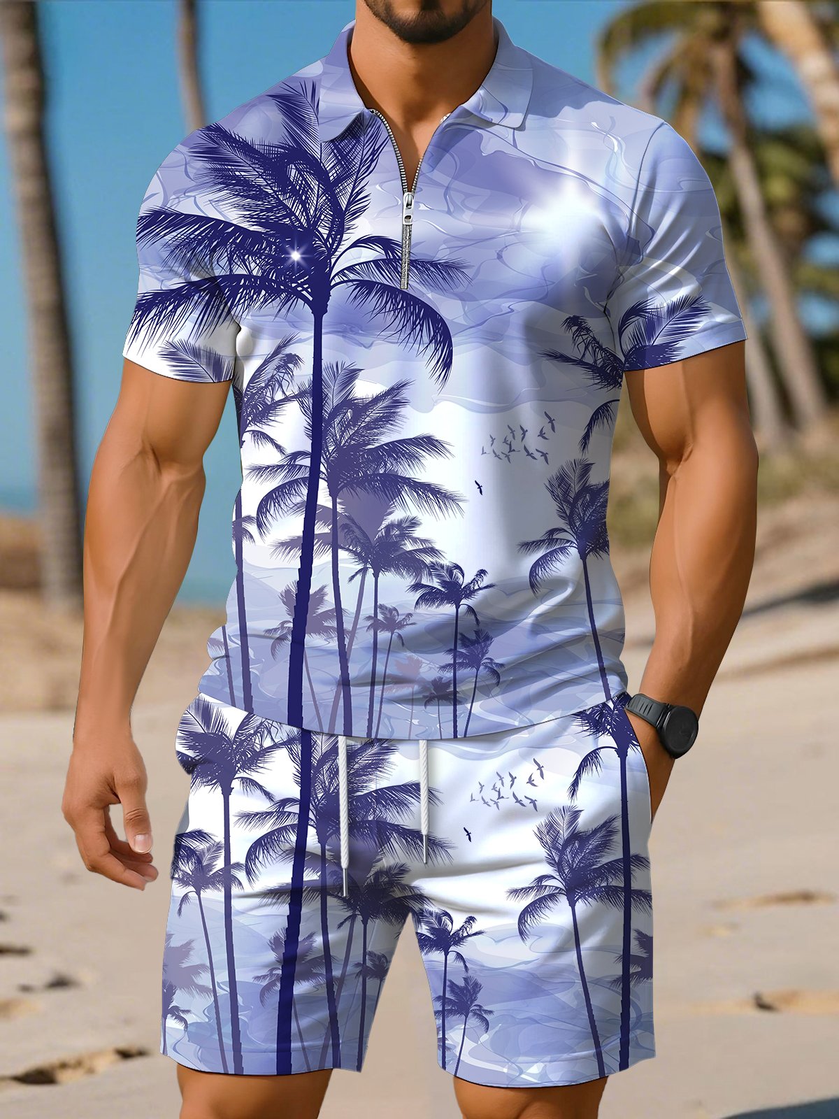Hawaii Vacation Palm Trees Moisture Wicking Men's Shorts Short Sleeve Polo Shirt Set