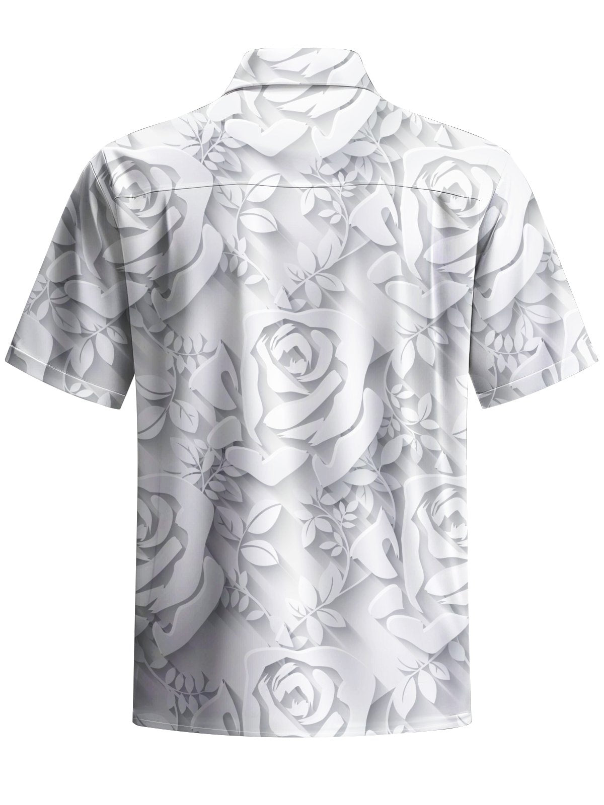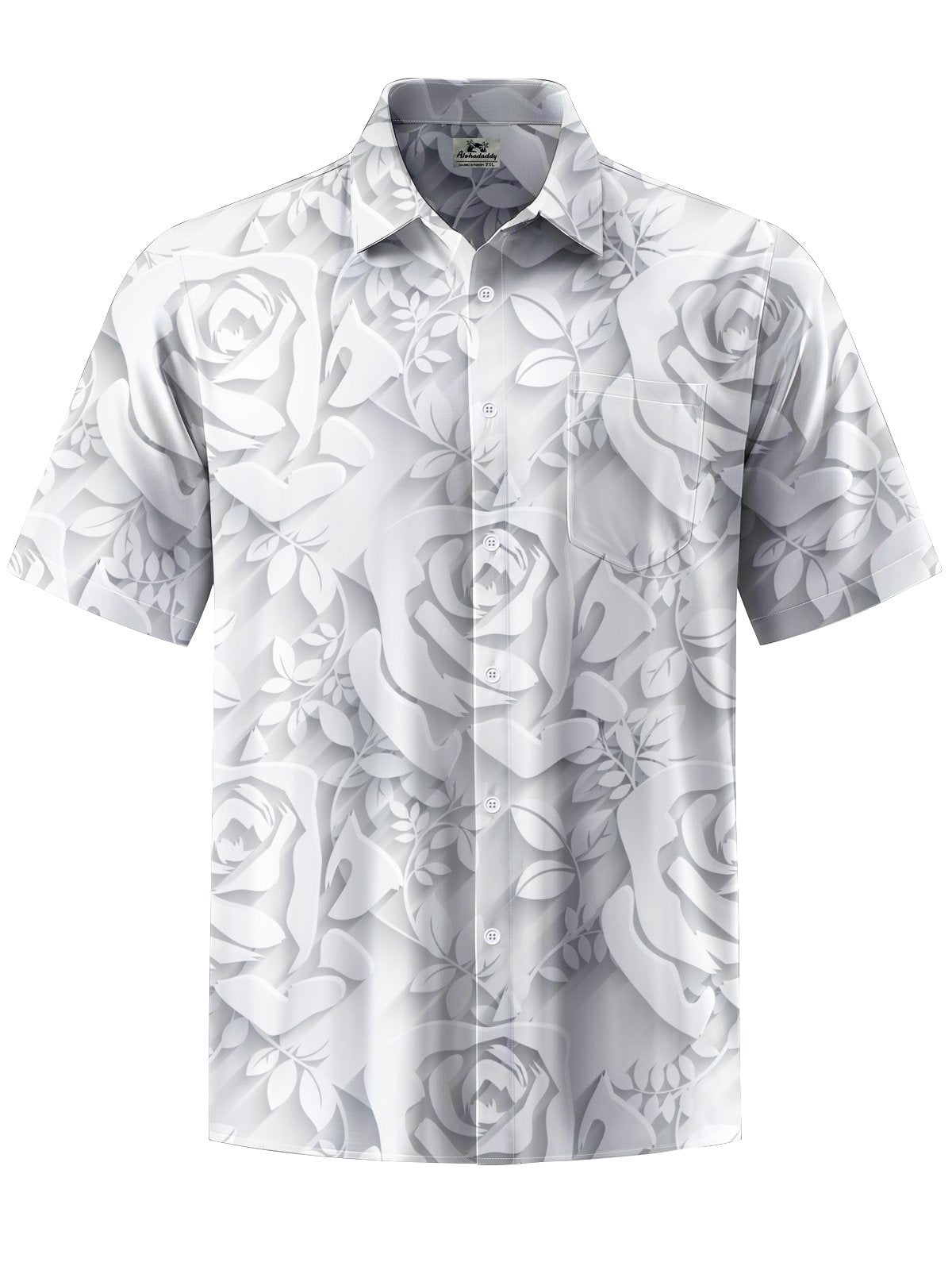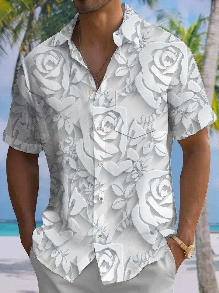 Alohadaddy® Casual 3D Floral Print Art Chest Pocket Men Short Sleeve Shirt Big & Tall