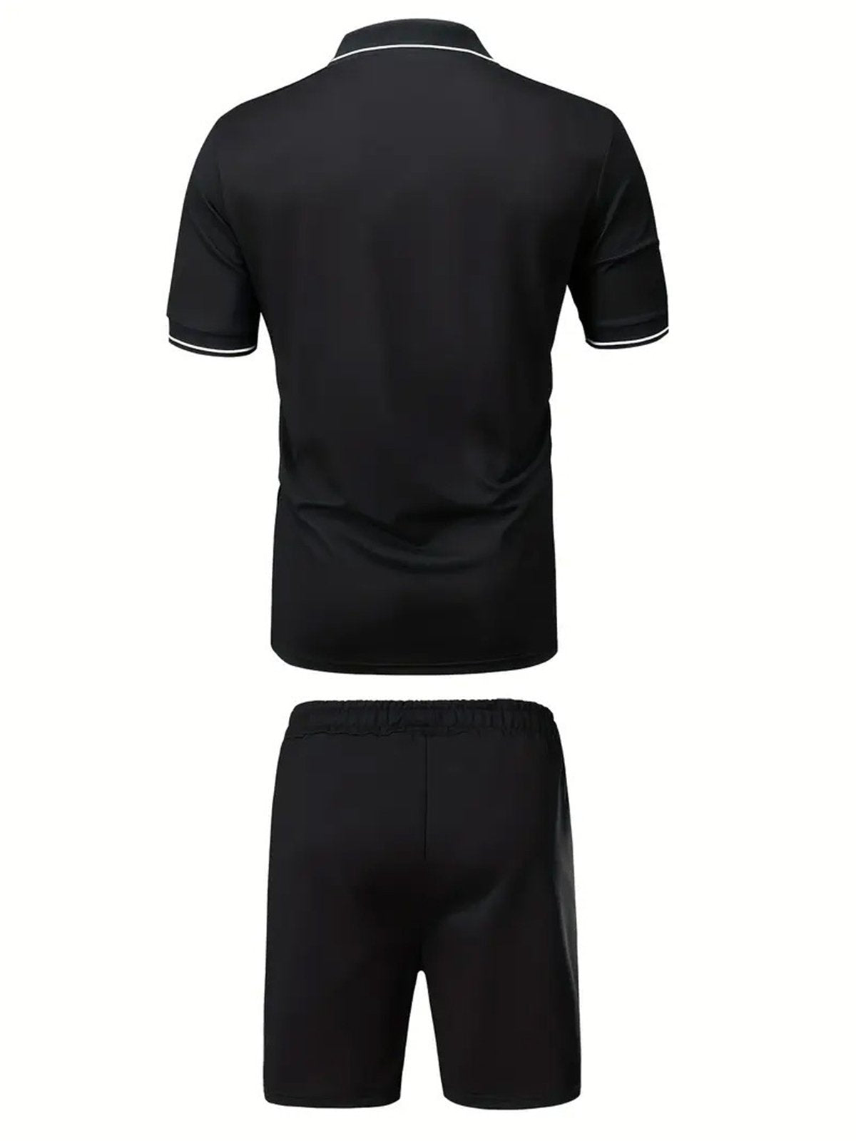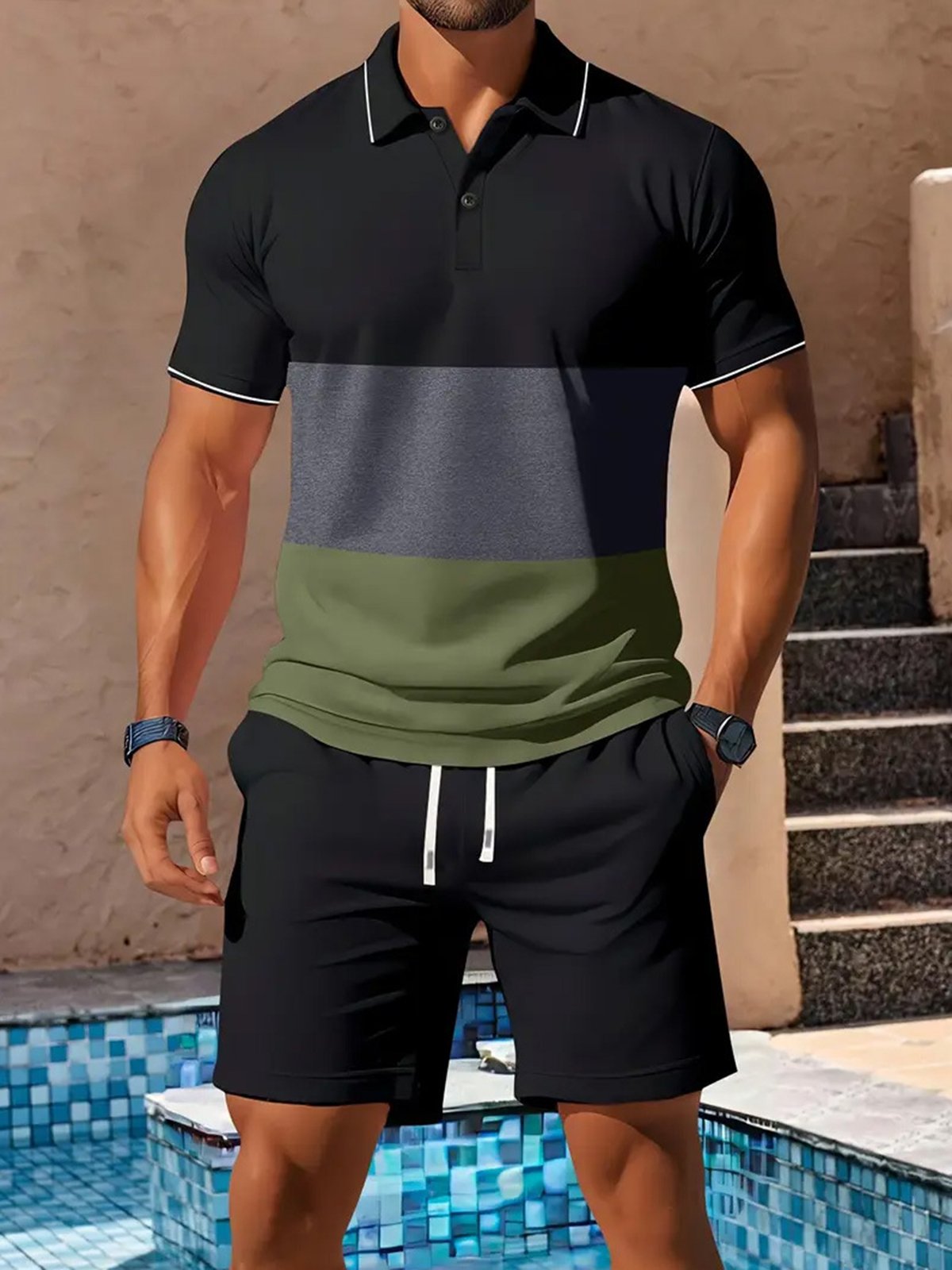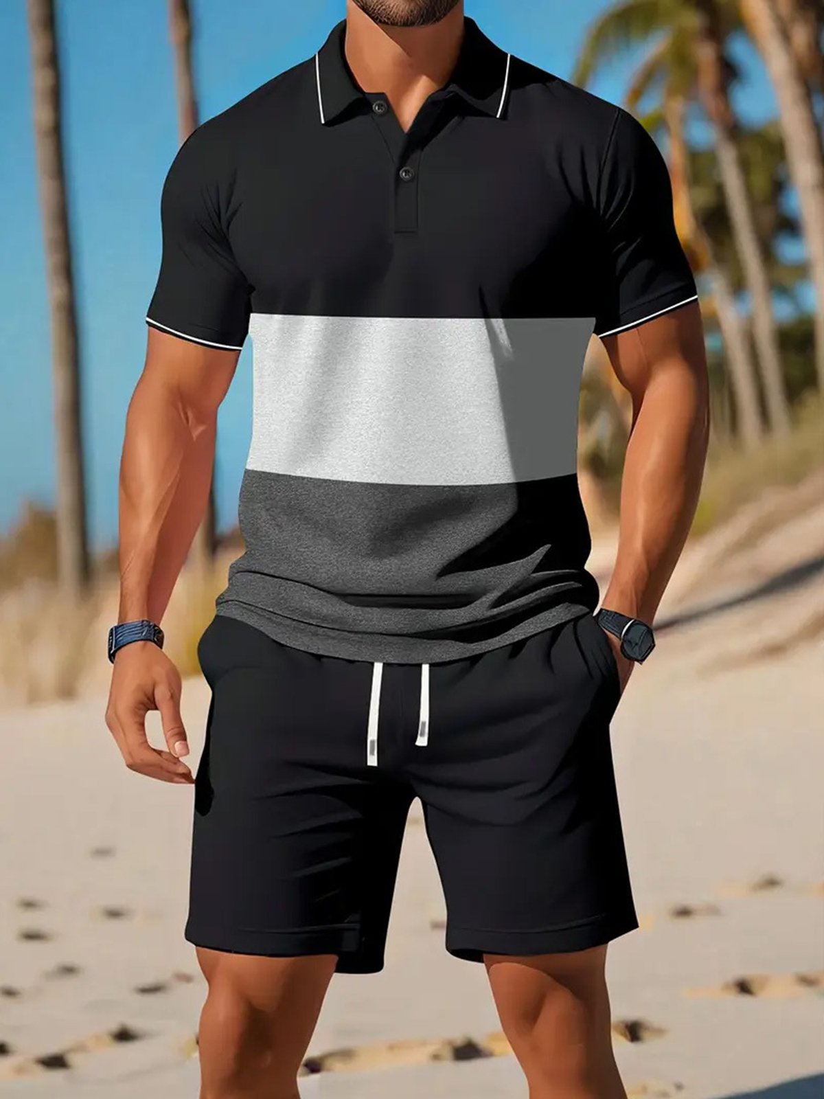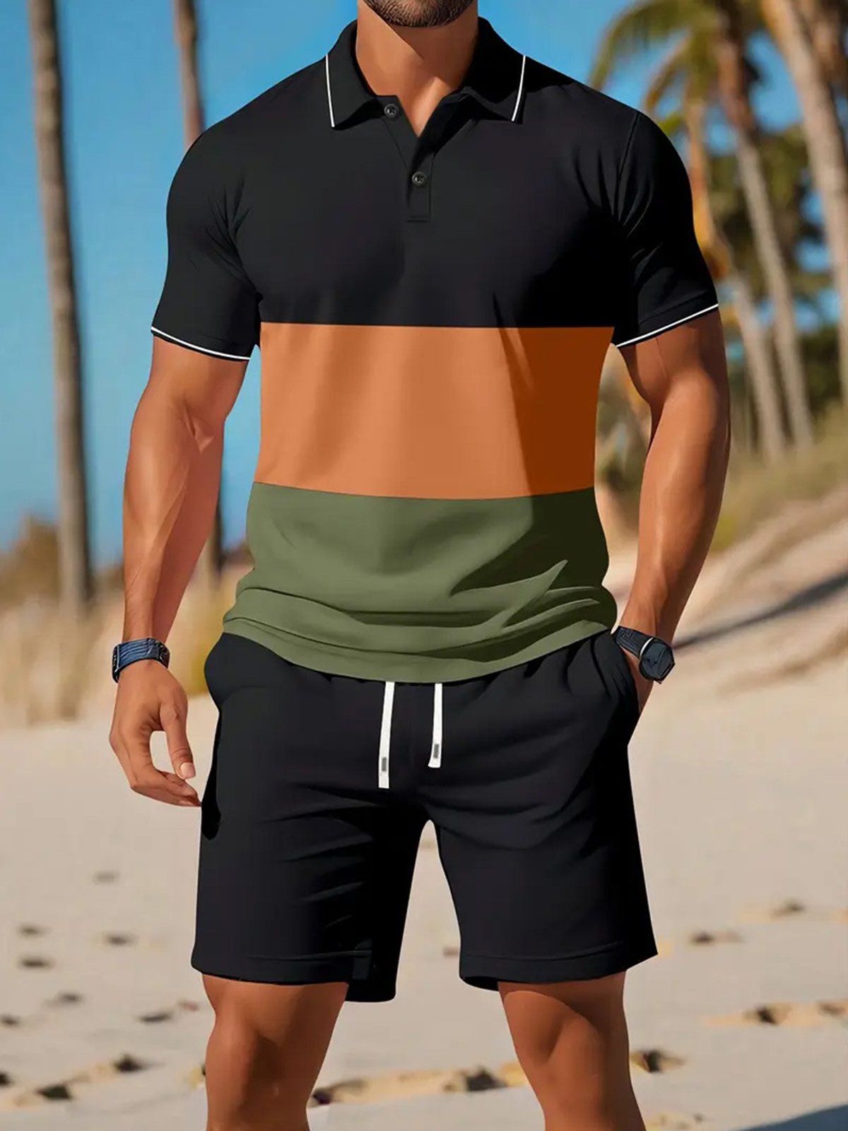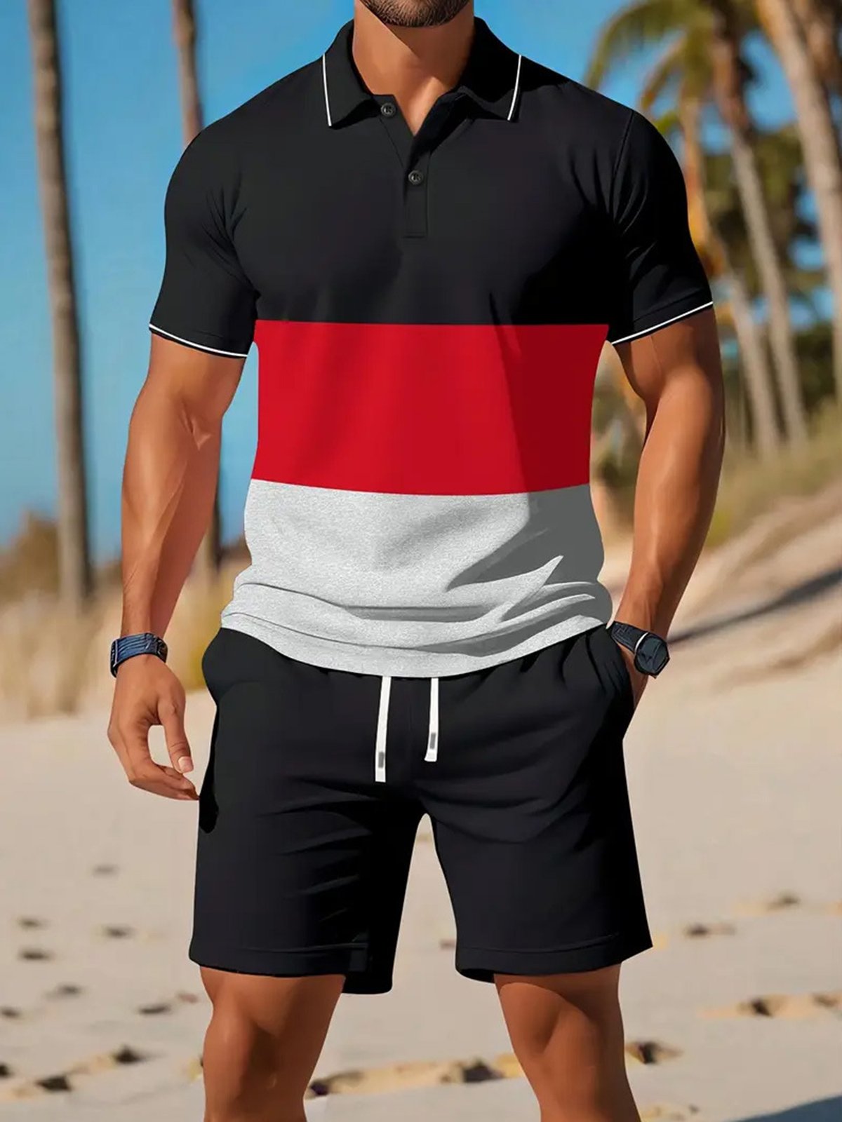 Alohadaddy® Casual Contrast Print Men's Shorts Short Sleeves Polo Shirt Set Big & Tall