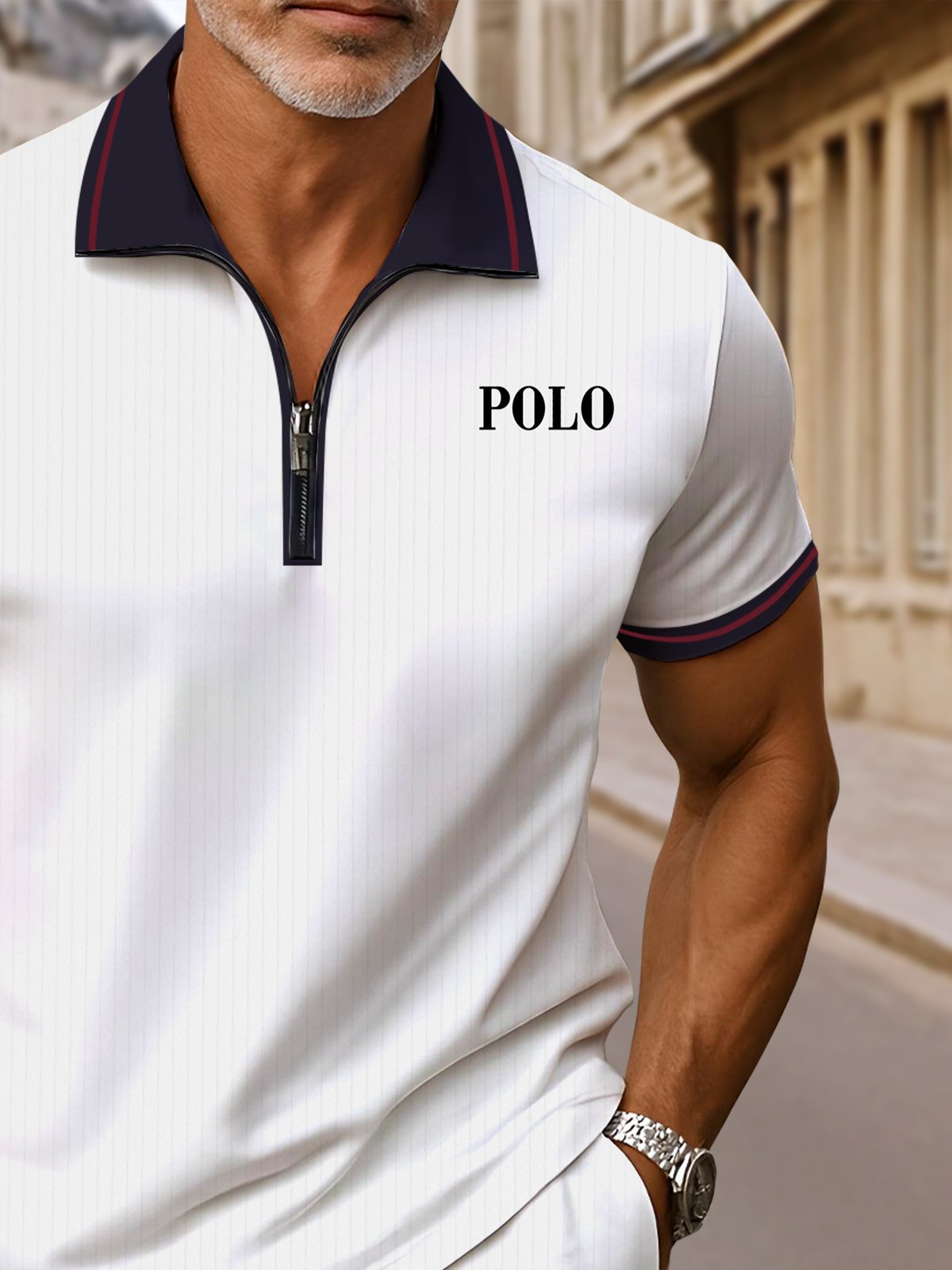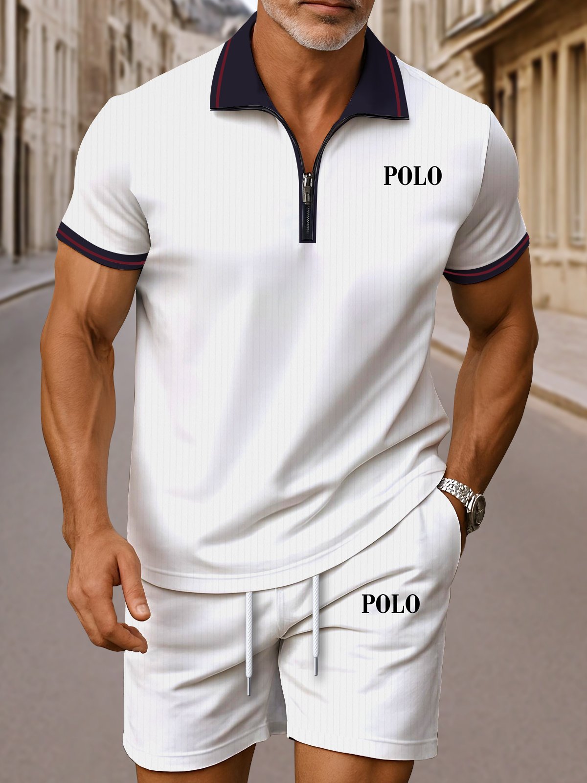 Alohadaddy® Casual Contrast Stripe Print Men's Shorts Short Sleeves Polo Shirt Set Big & Tall