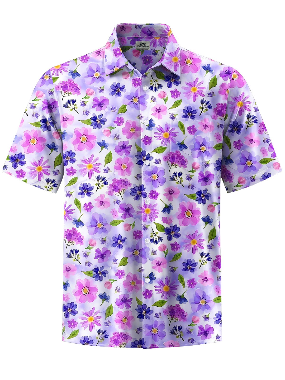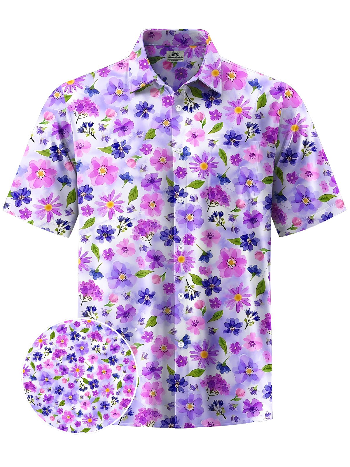 Alohadaddy® Casual Floral Print Chest Pocket Men's Short Sleeve Shirt Big & Tall