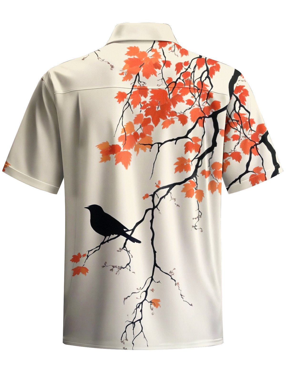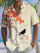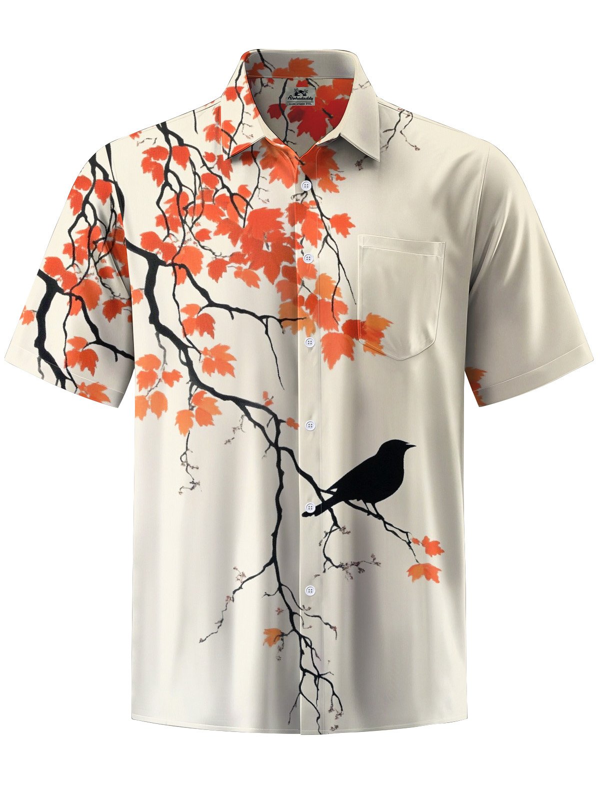 Alohadaddy® Casual Leaf Bird Chest Pocket Mens Short Sleeve Shirt Big & Tall