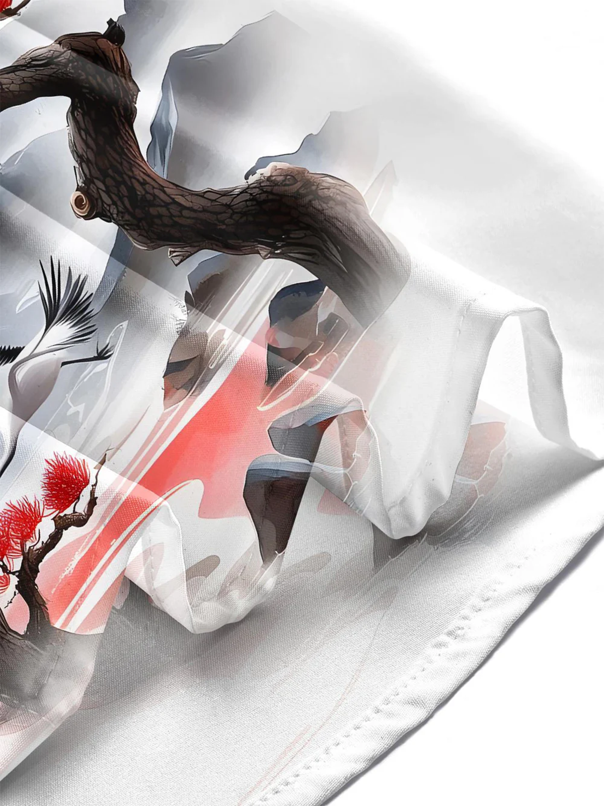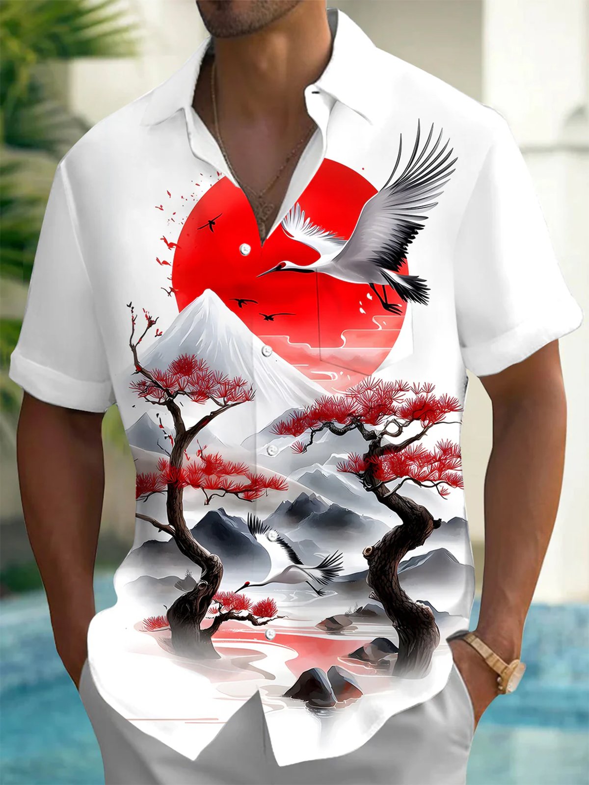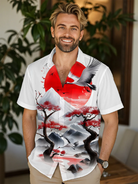 Alohadaddy® Casual Sunset Landscape Art Print Chest Pocket Men's Short Sleeve Shirt Big & Tall